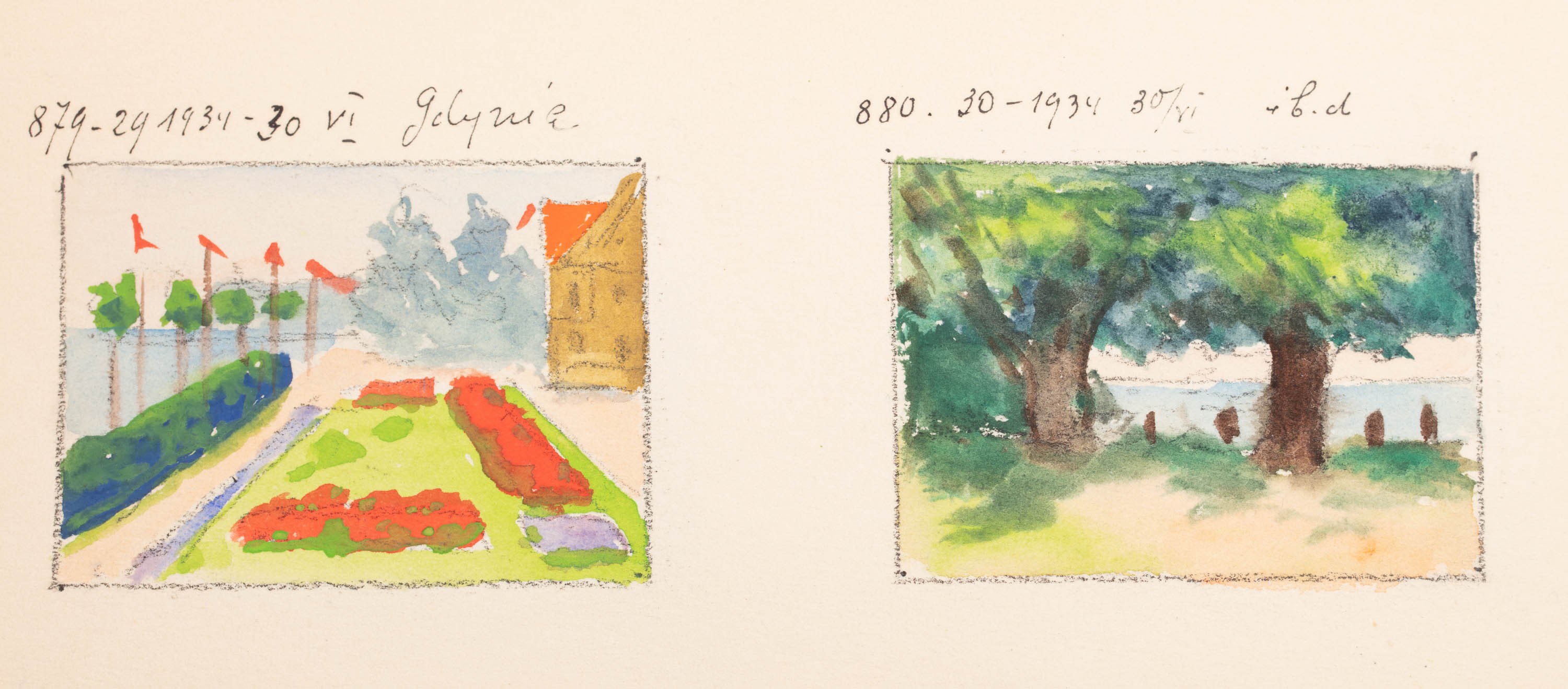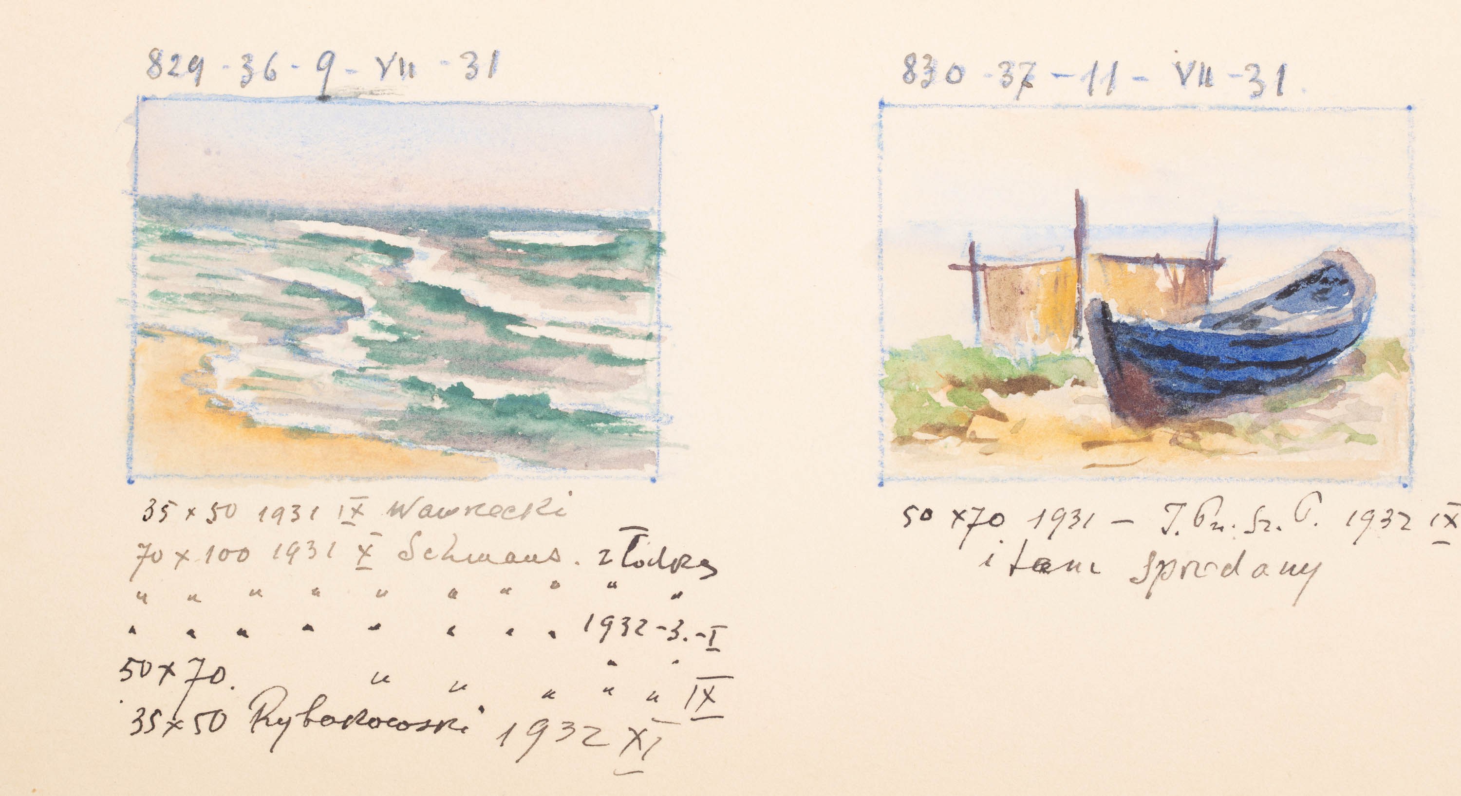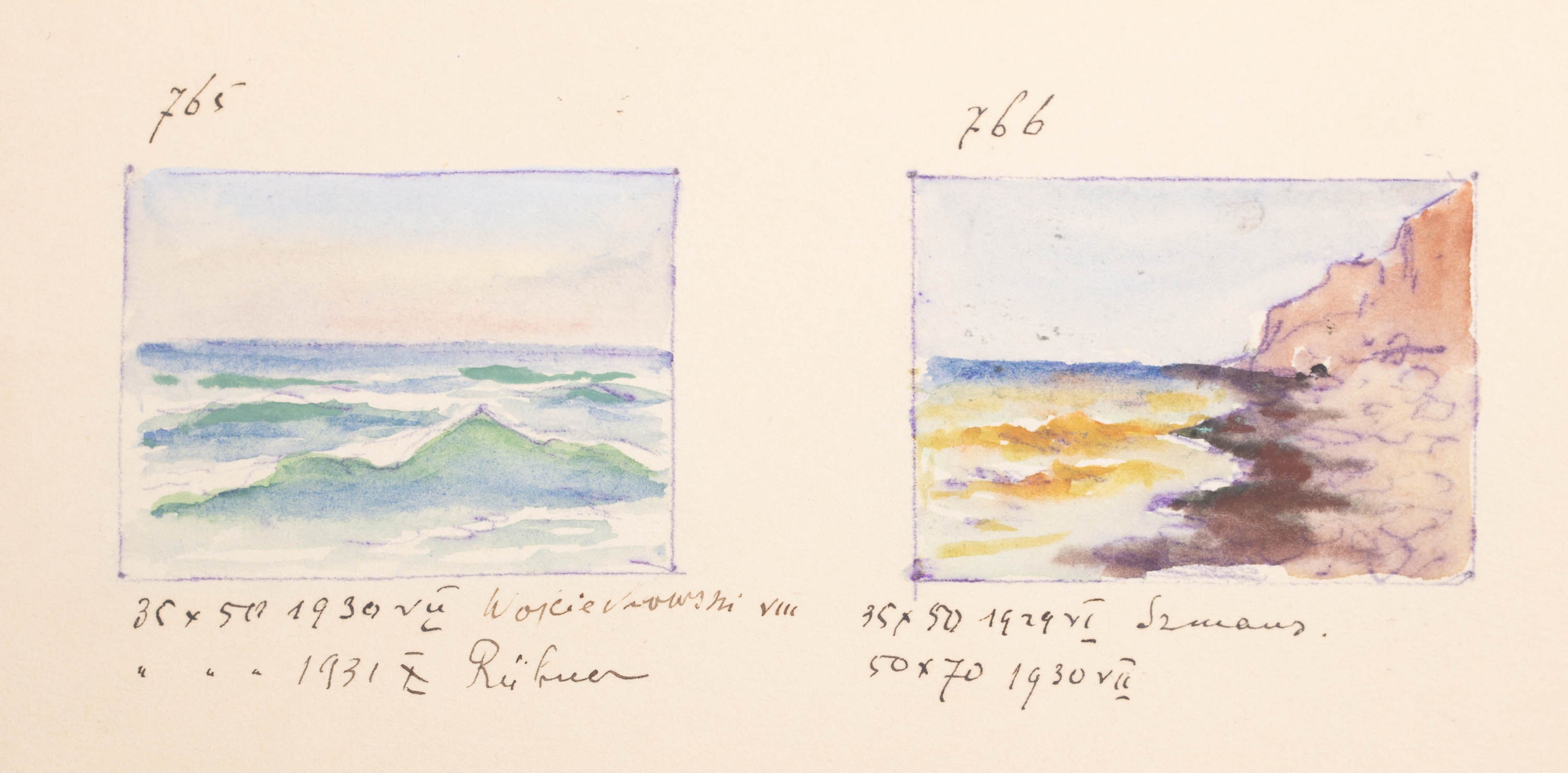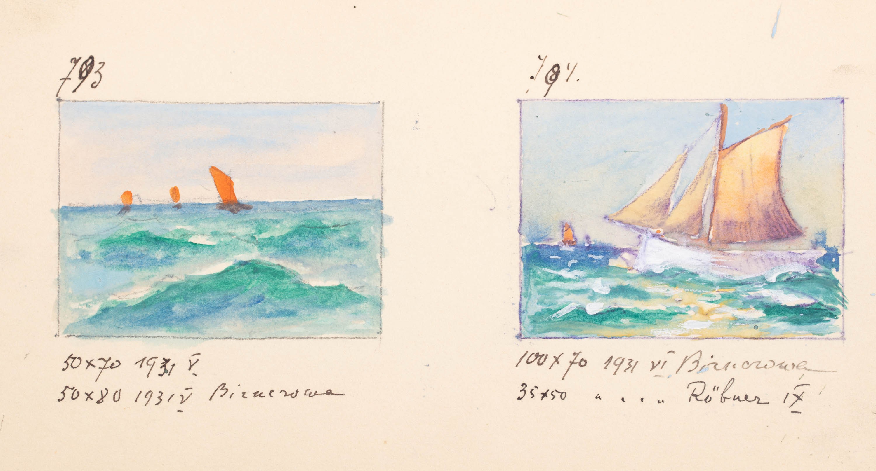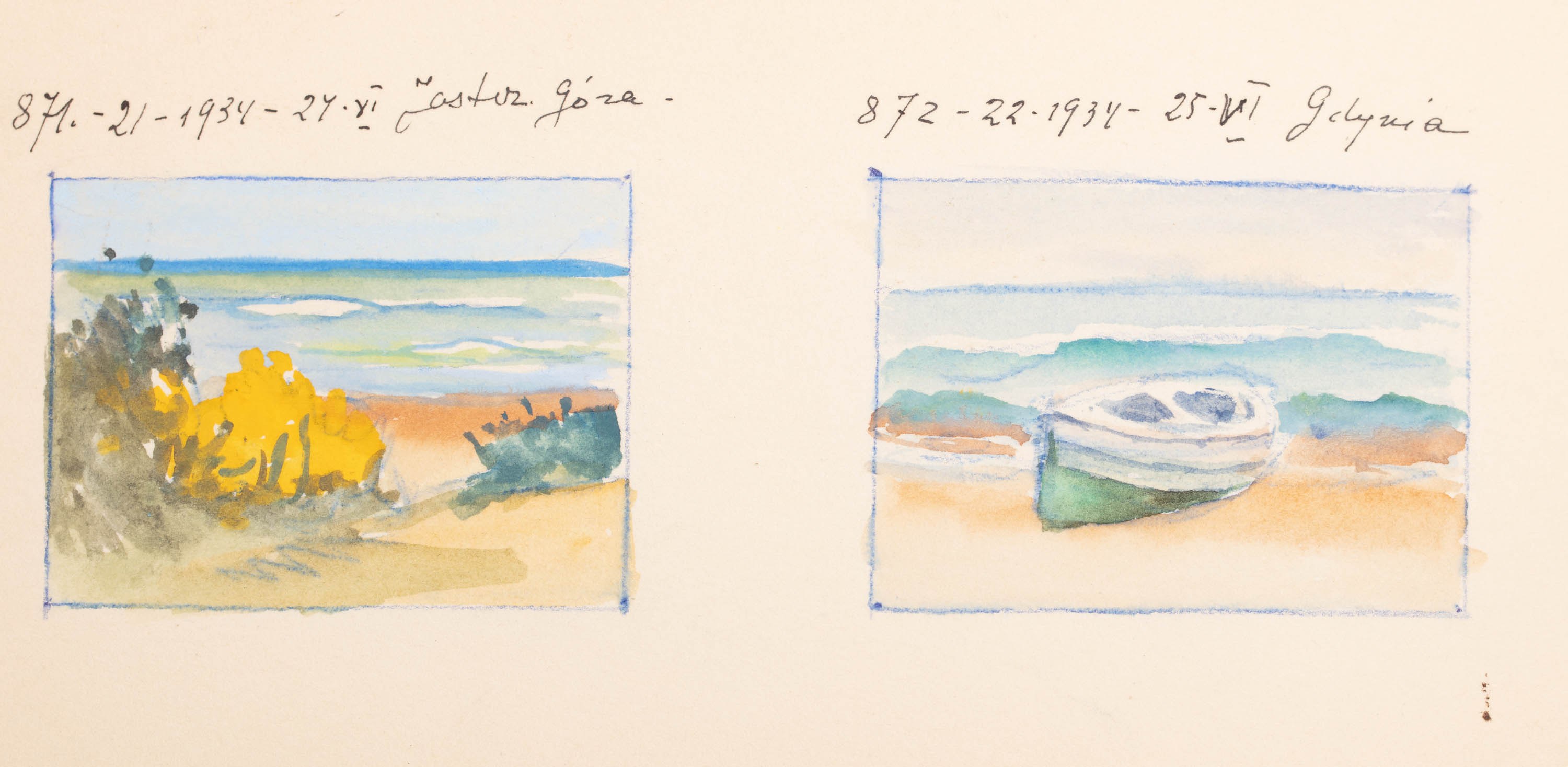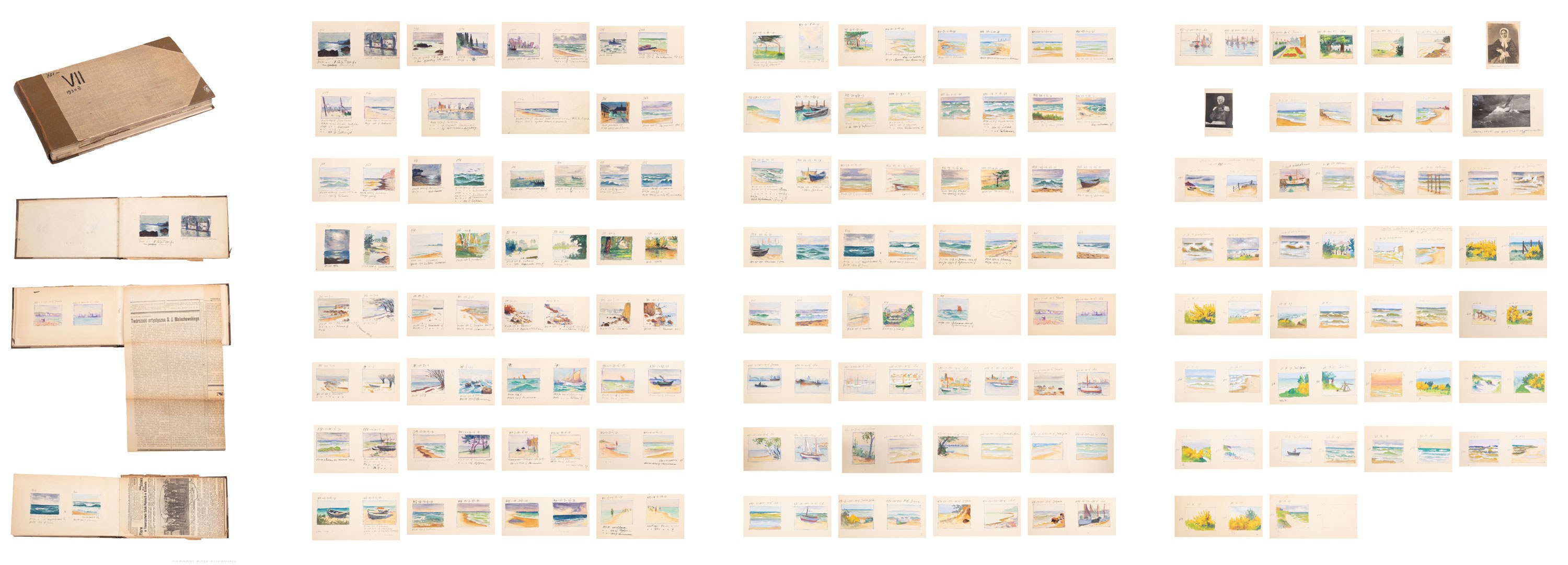 Autorski szkicownik z około 180 akwarelami, 3 zdjęciami obrazów oraz wycinkami prasowymi zebranymi przez malarza, lata 1930 - 1939