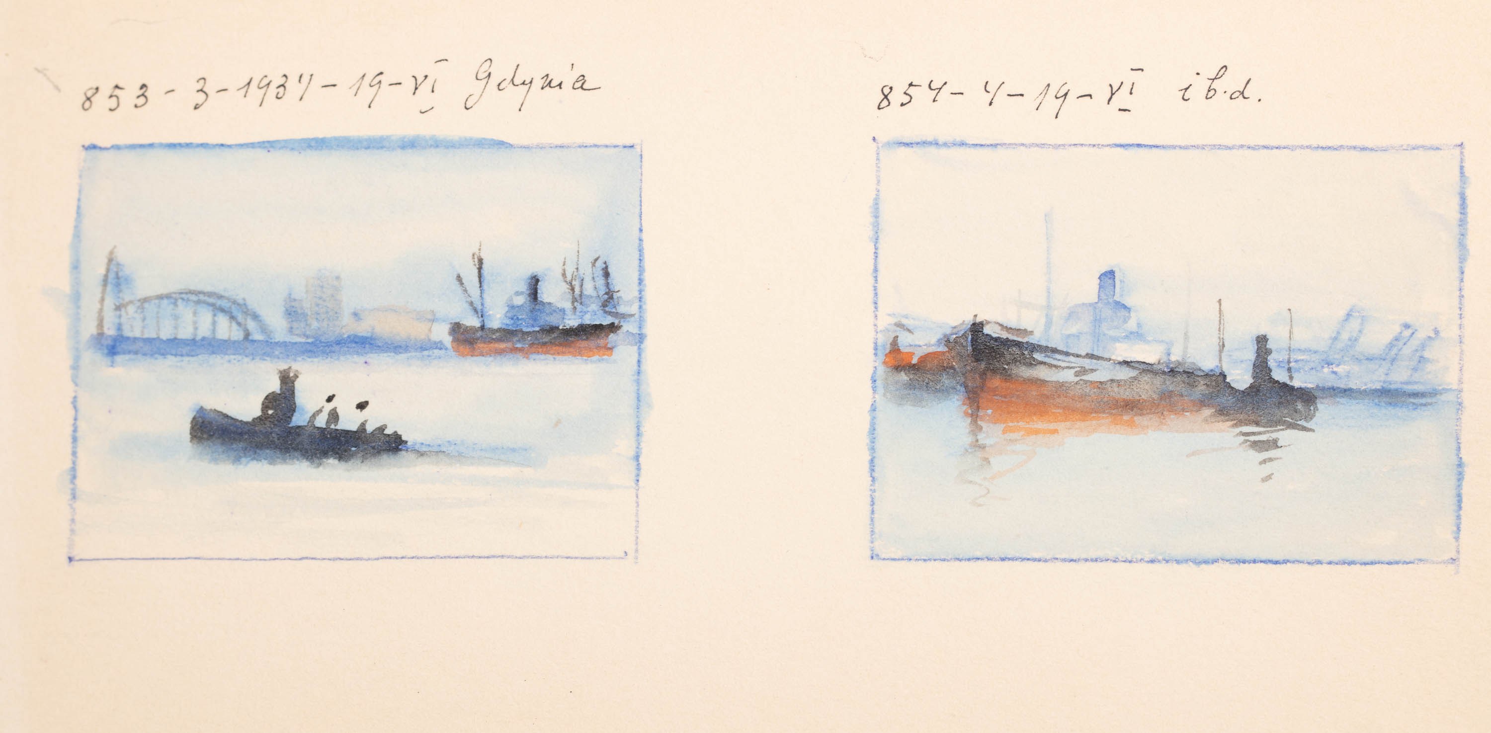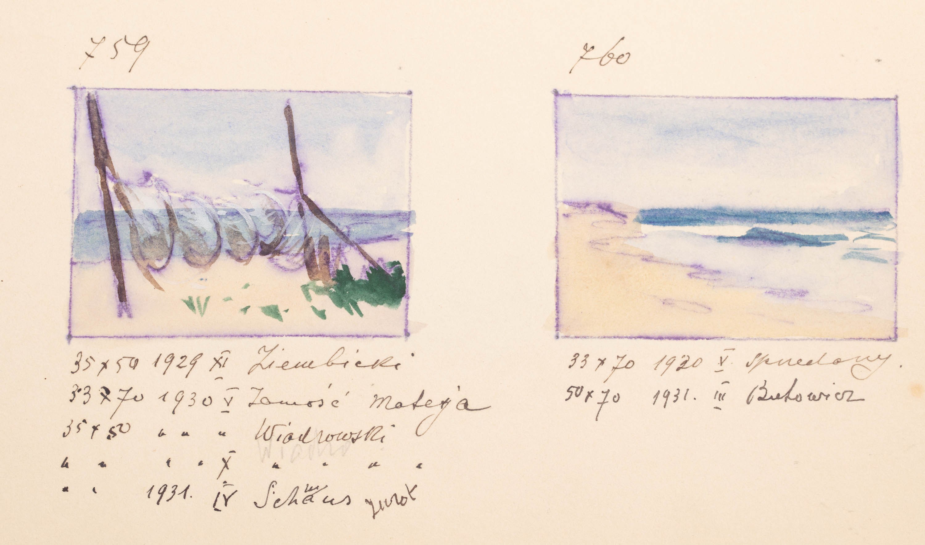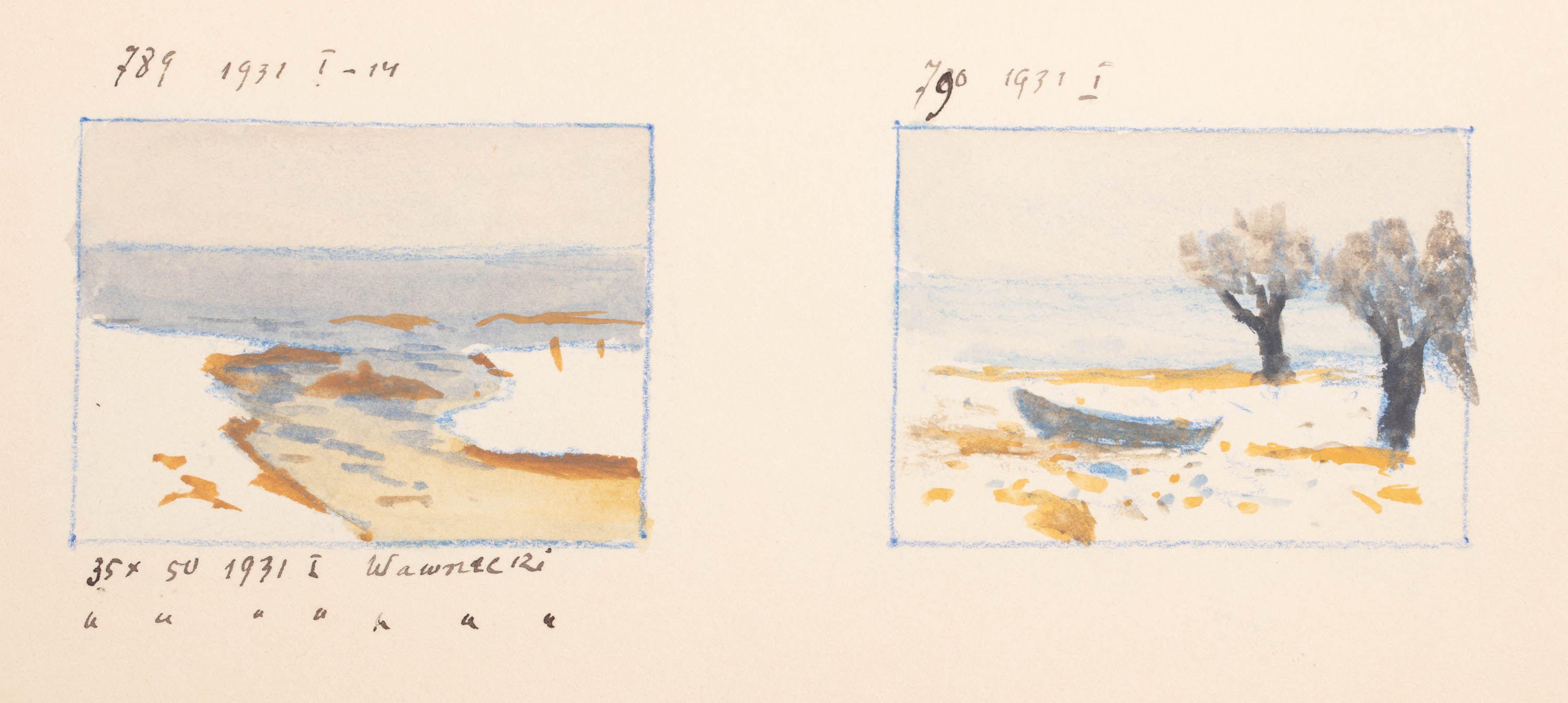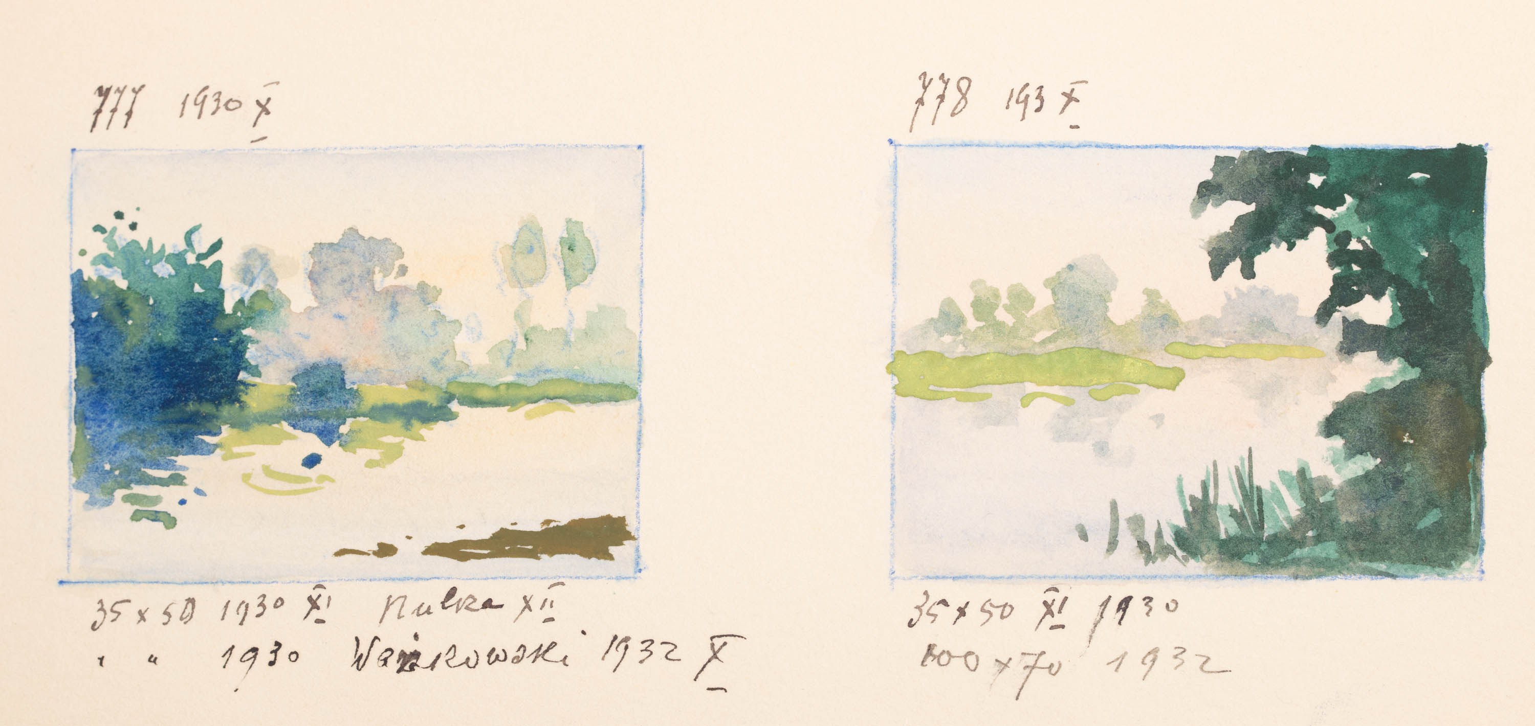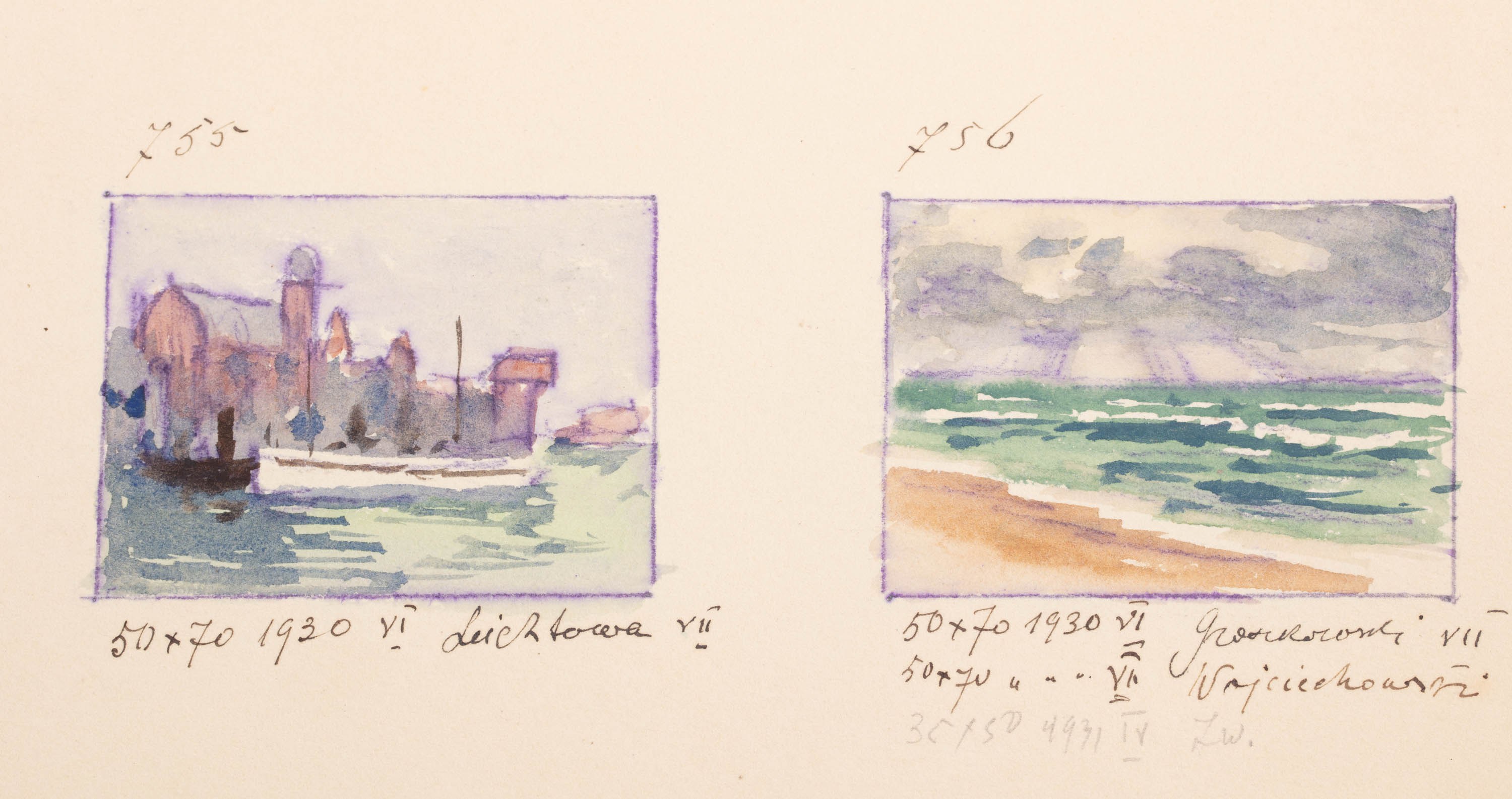 Autorski szkicownik z około 180 akwarelami, 3 zdjęciami obrazów oraz wycinkami prasowymi zebranymi przez malarza, lata 1930 - 1939