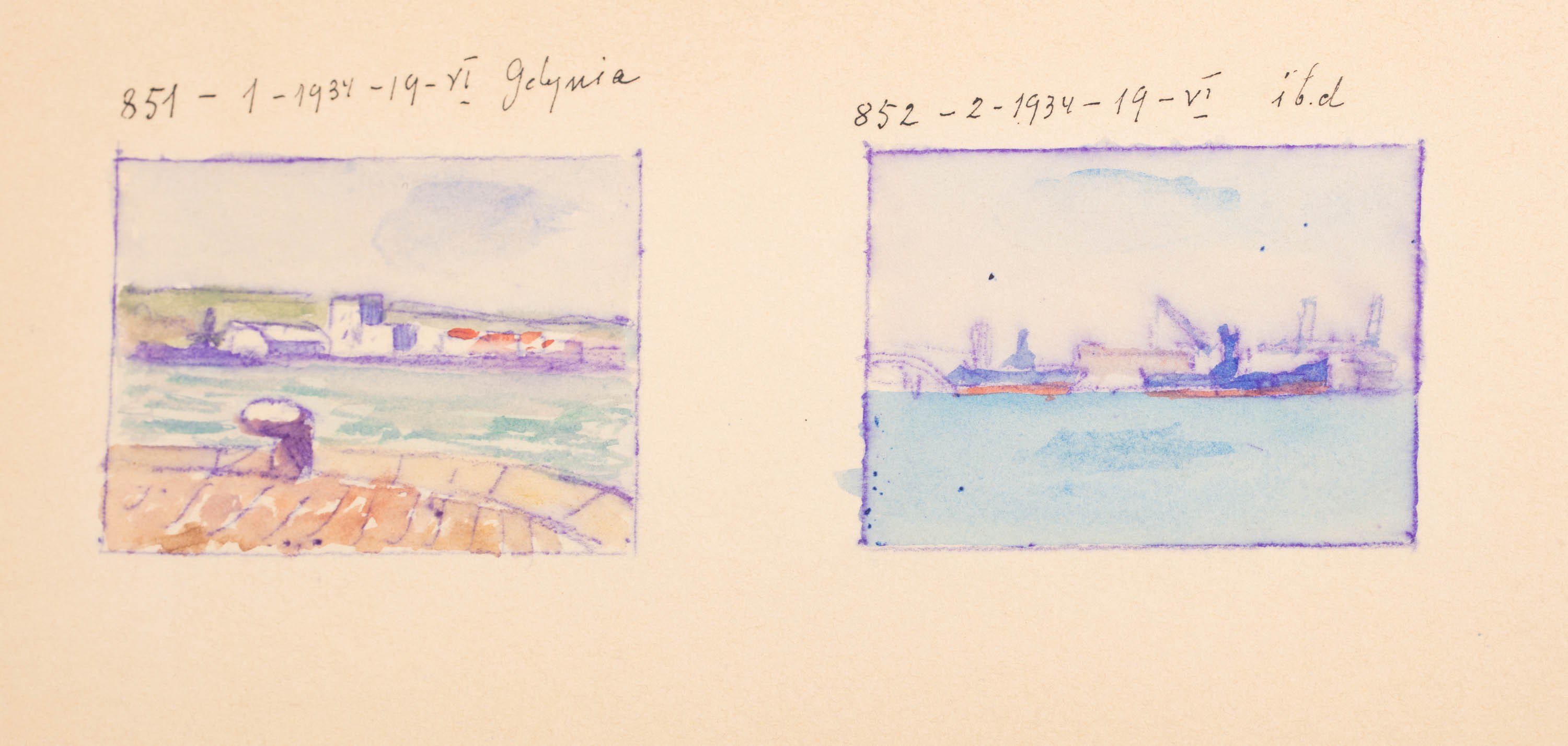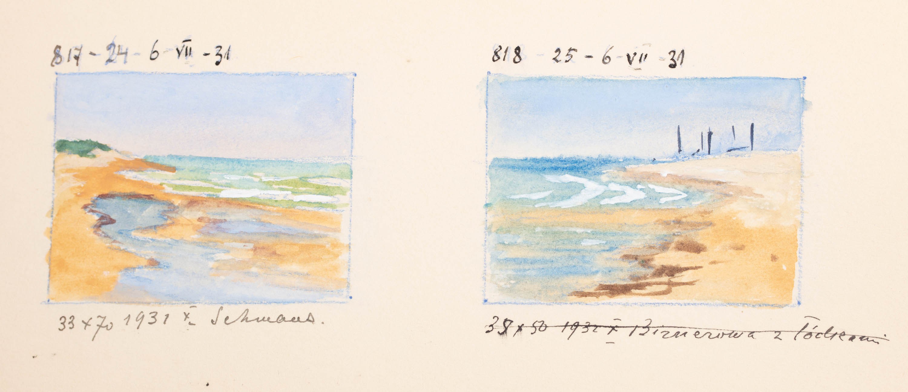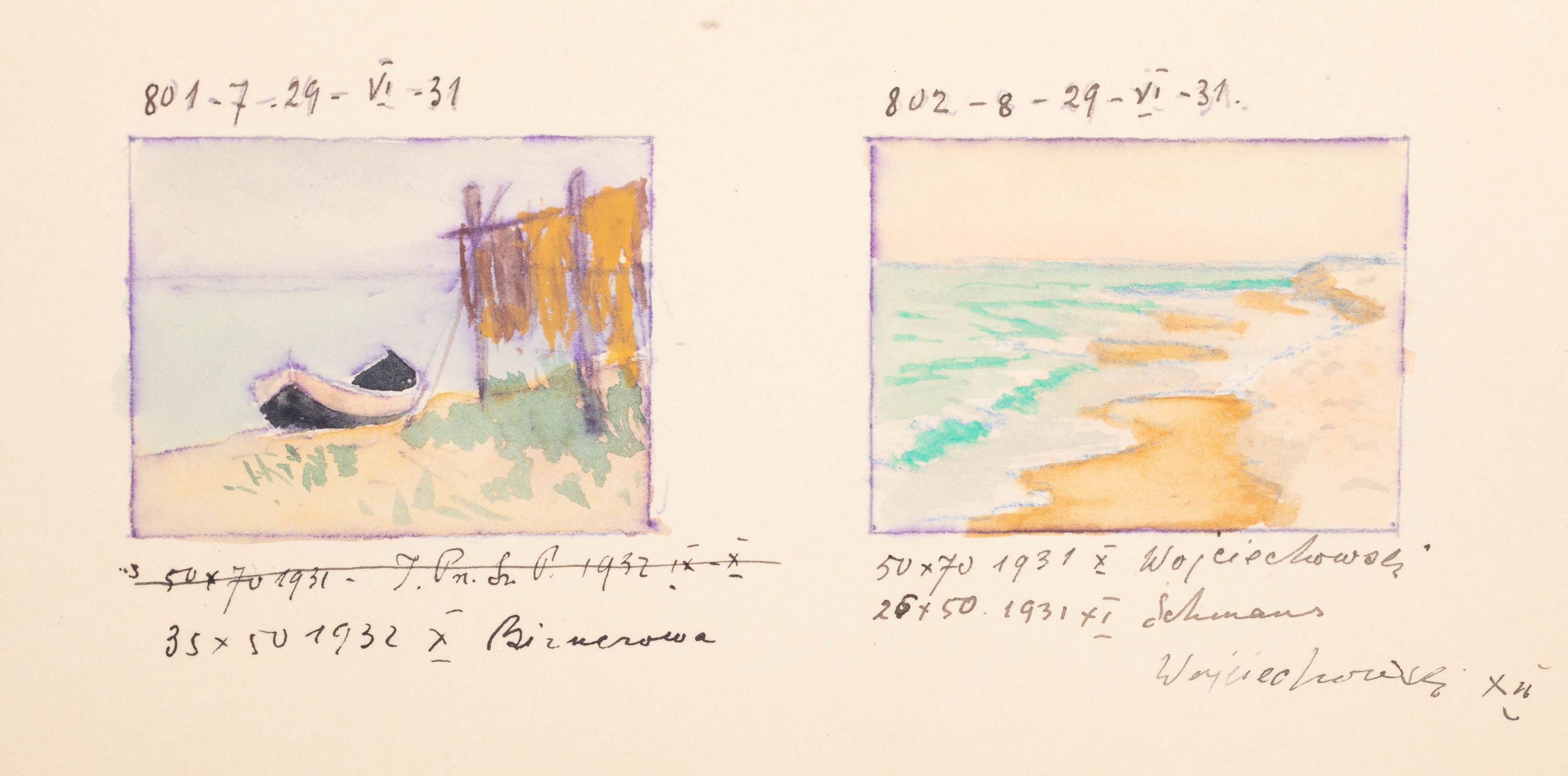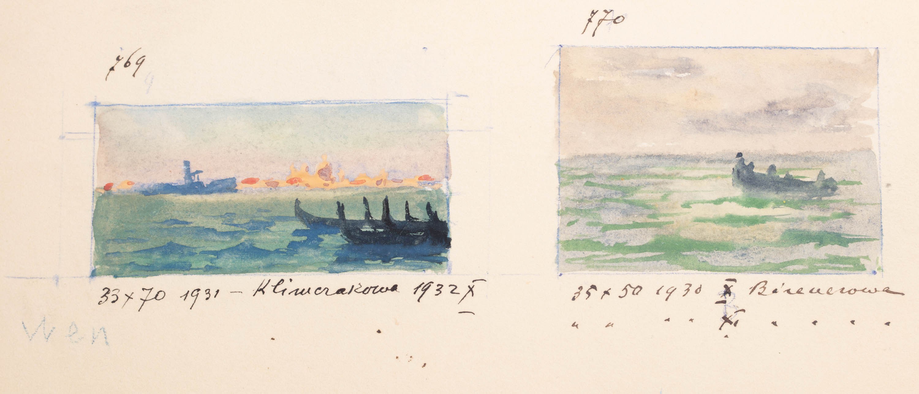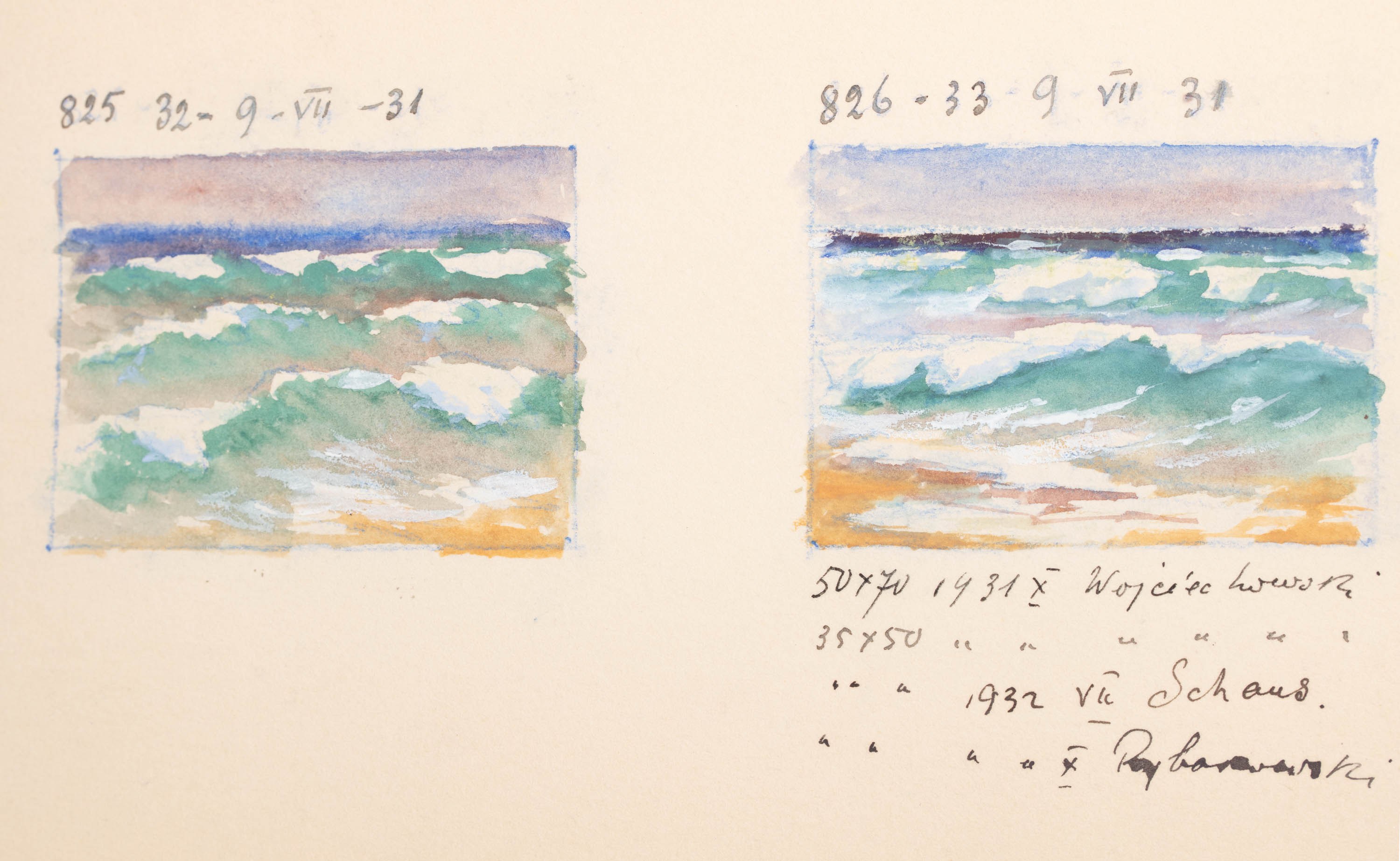 Autorski szkicownik z około 180 akwarelami, 3 zdjęciami obrazów oraz wycinkami prasowymi zebranymi przez malarza, lata 1930 - 1939