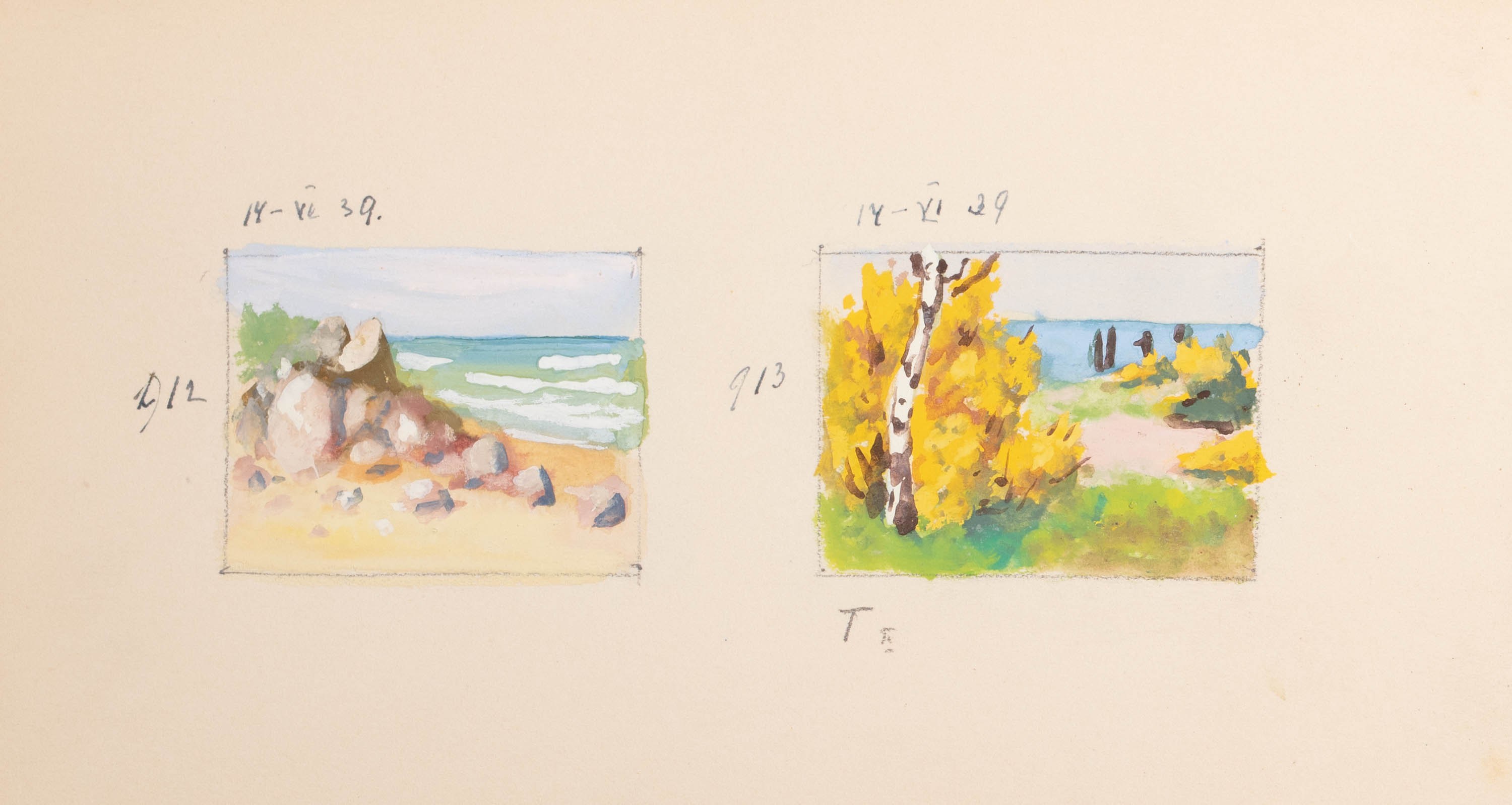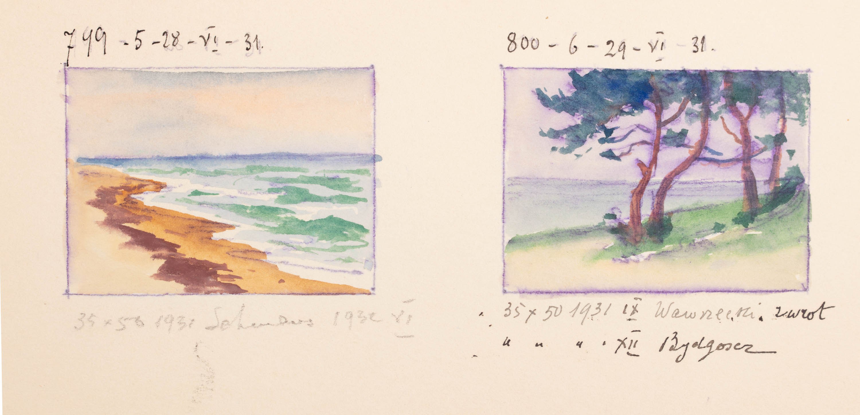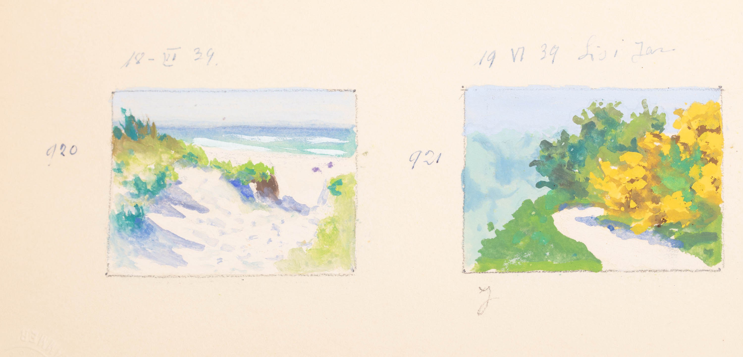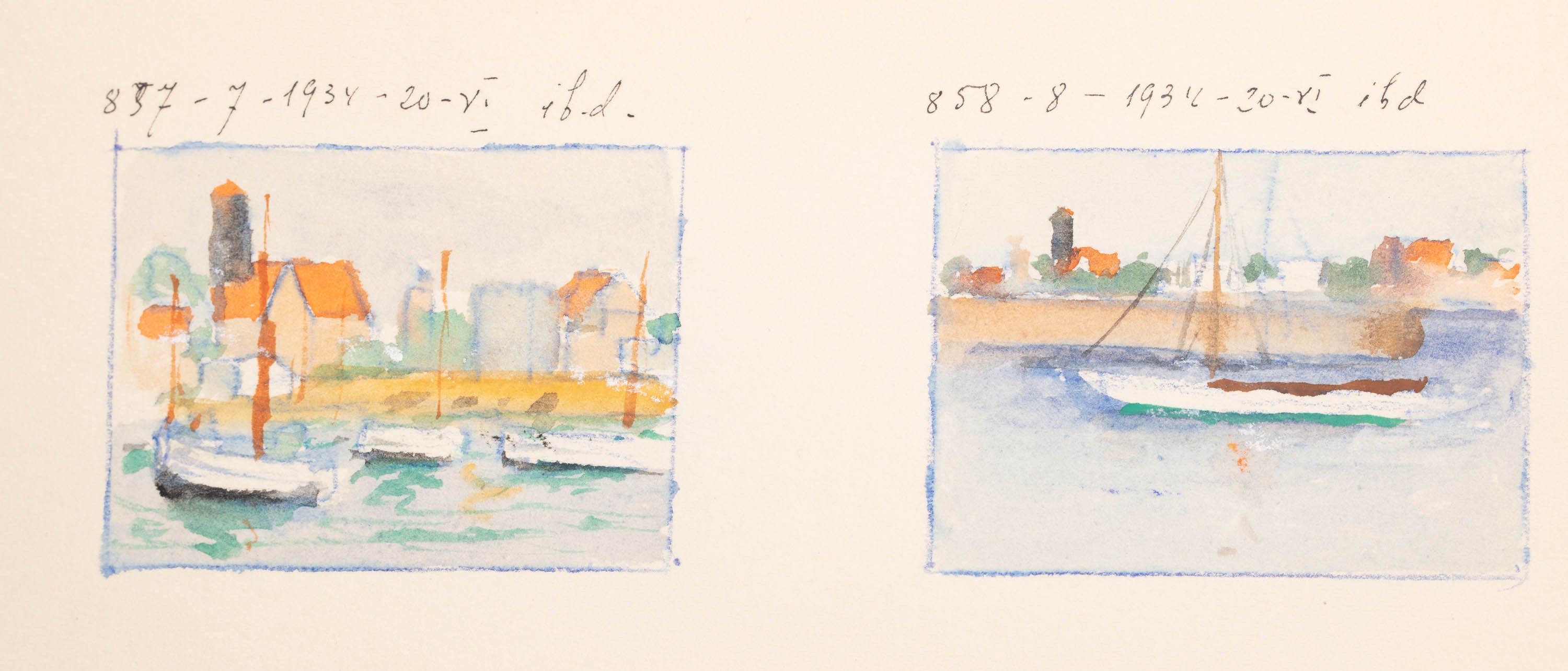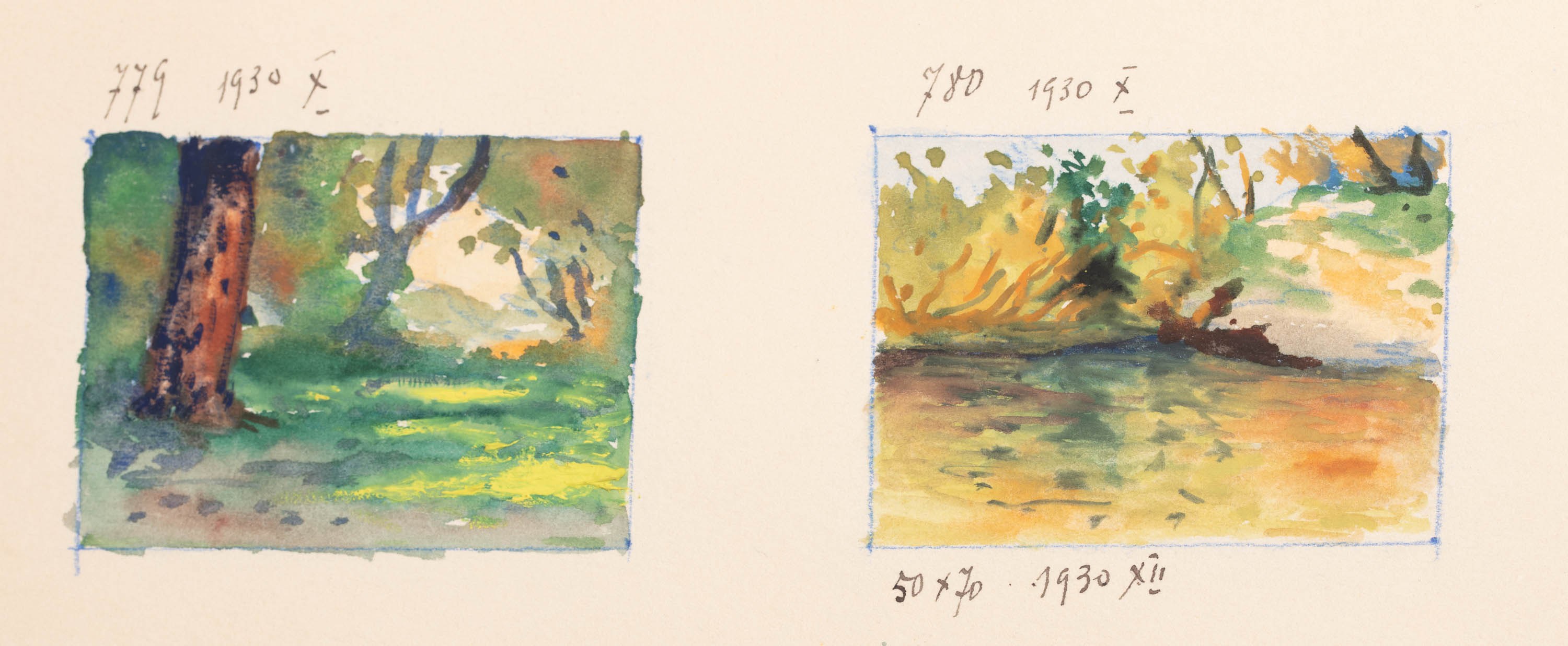 Autorski szkicownik z około 180 akwarelami, 3 zdjęciami obrazów oraz wycinkami prasowymi zebranymi przez malarza, lata 1930 - 1939