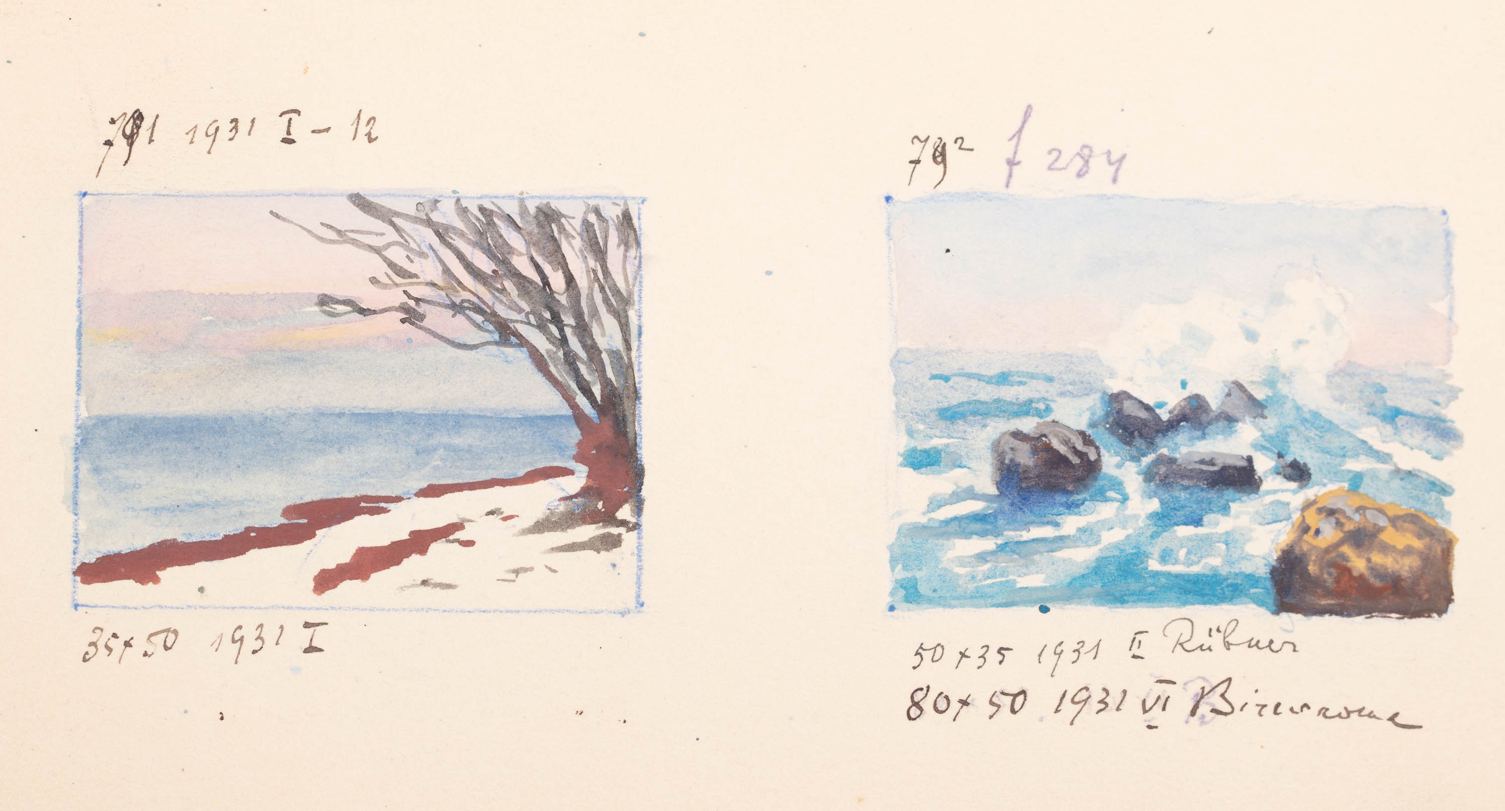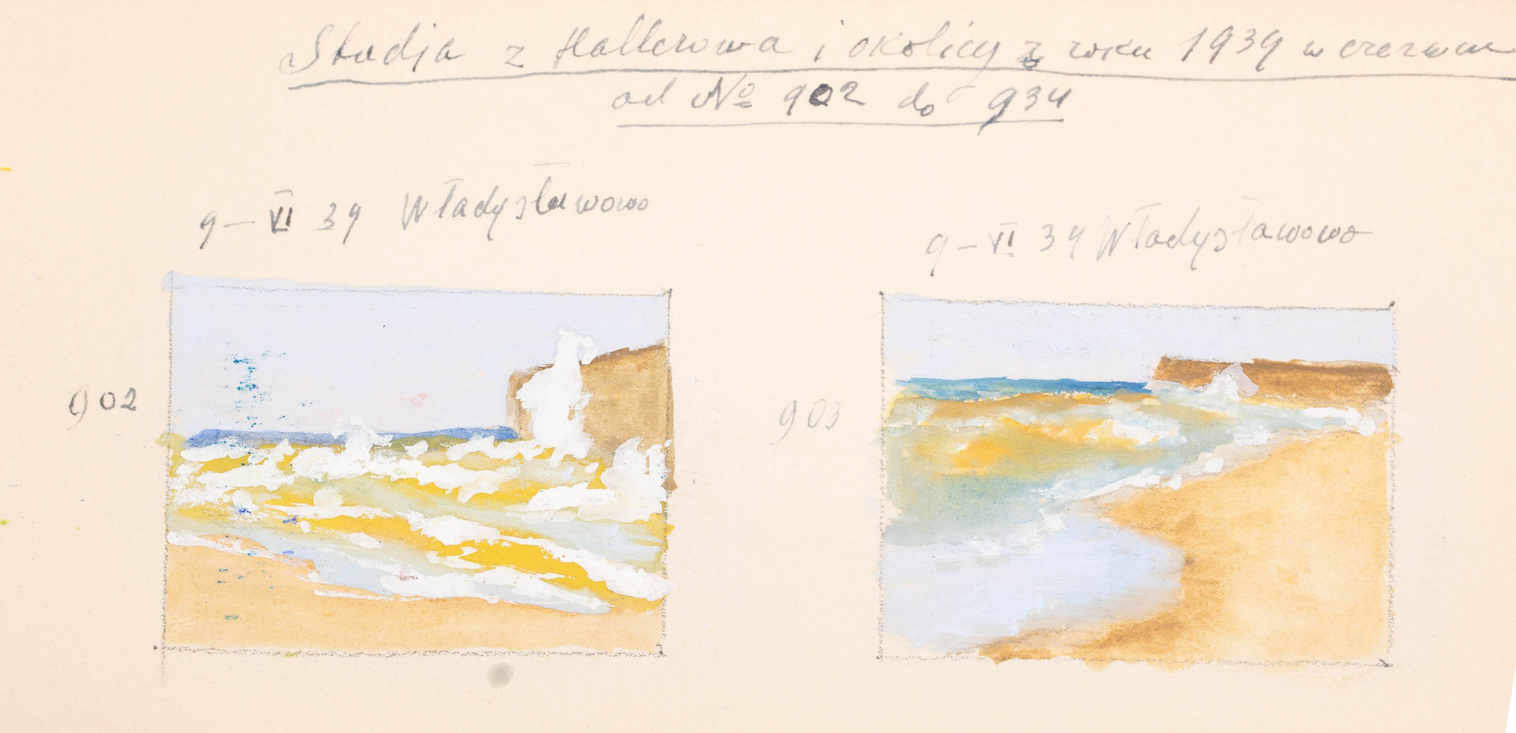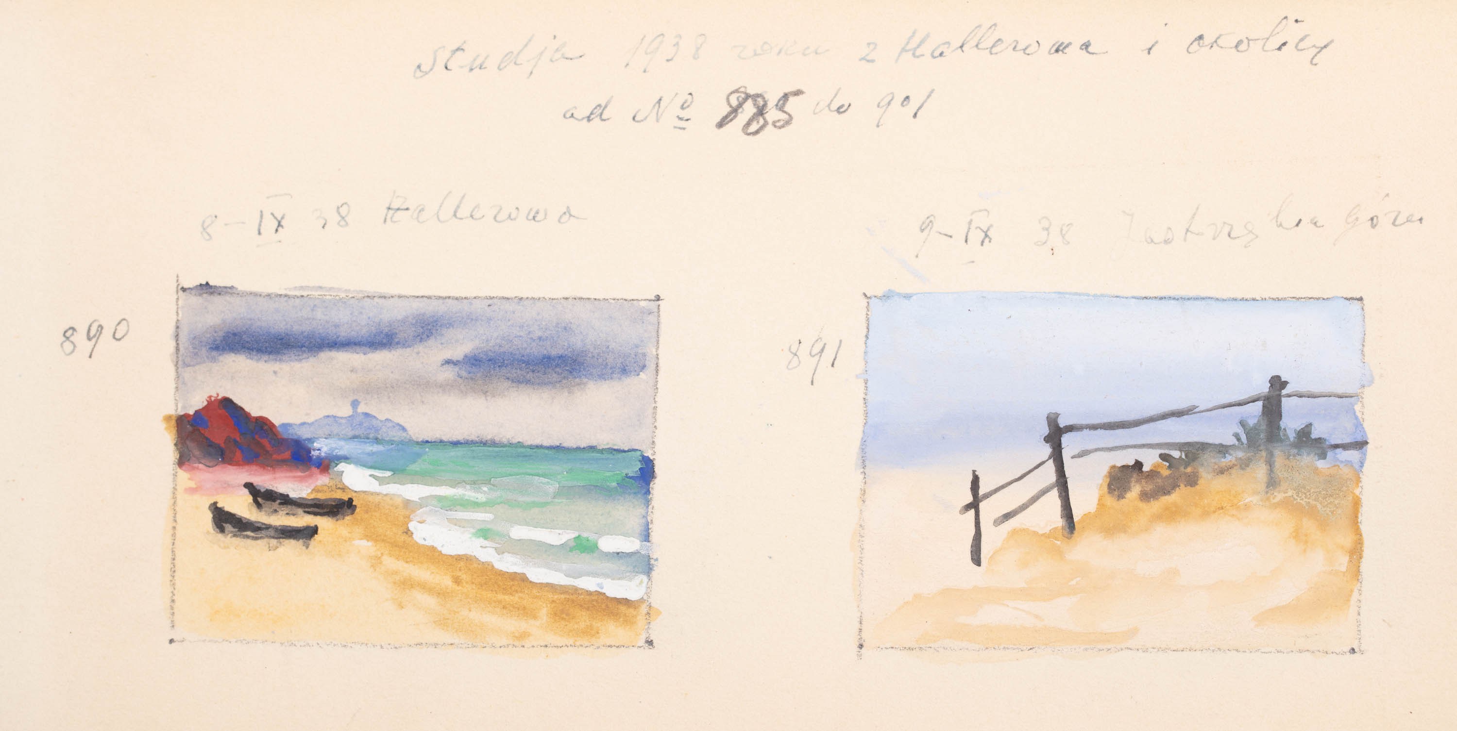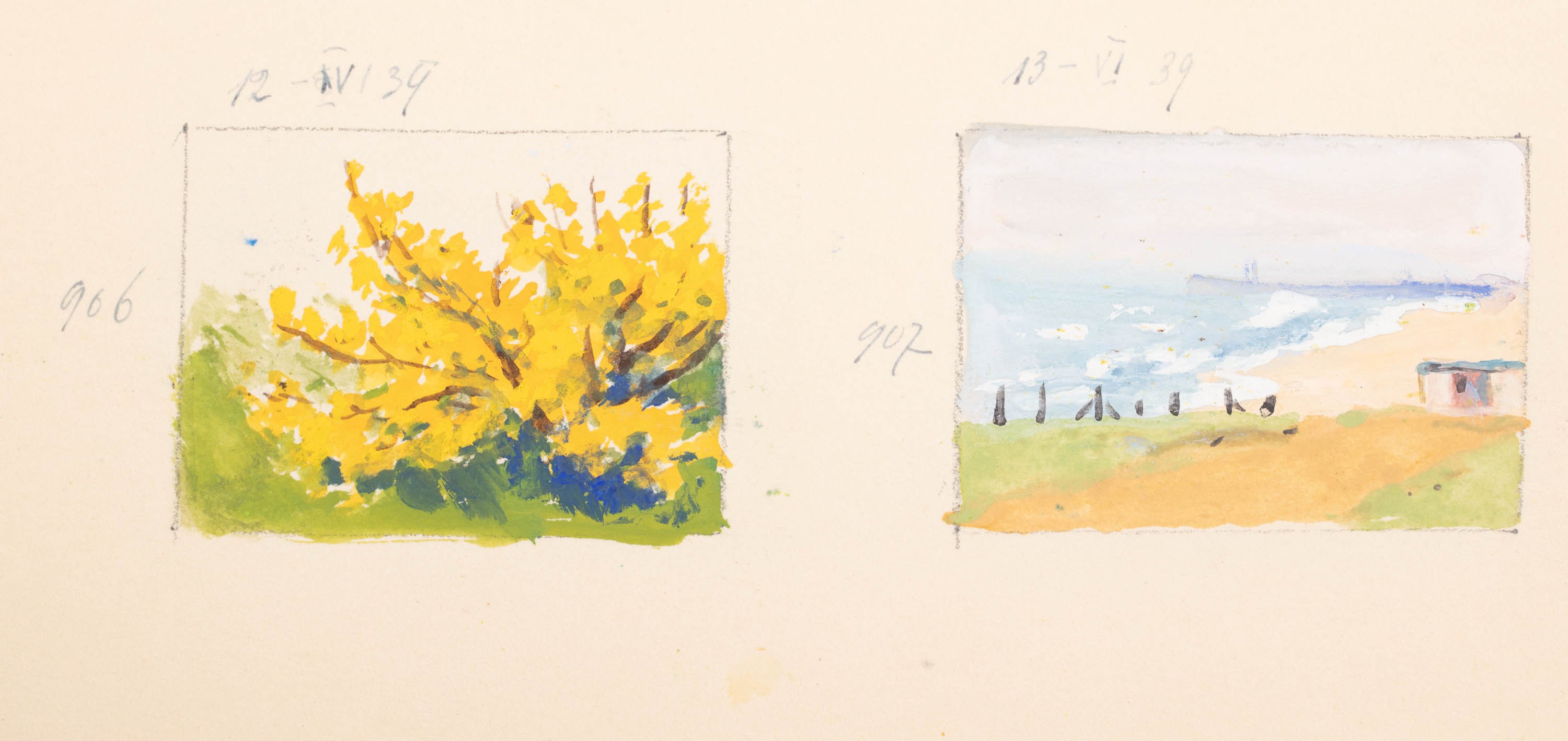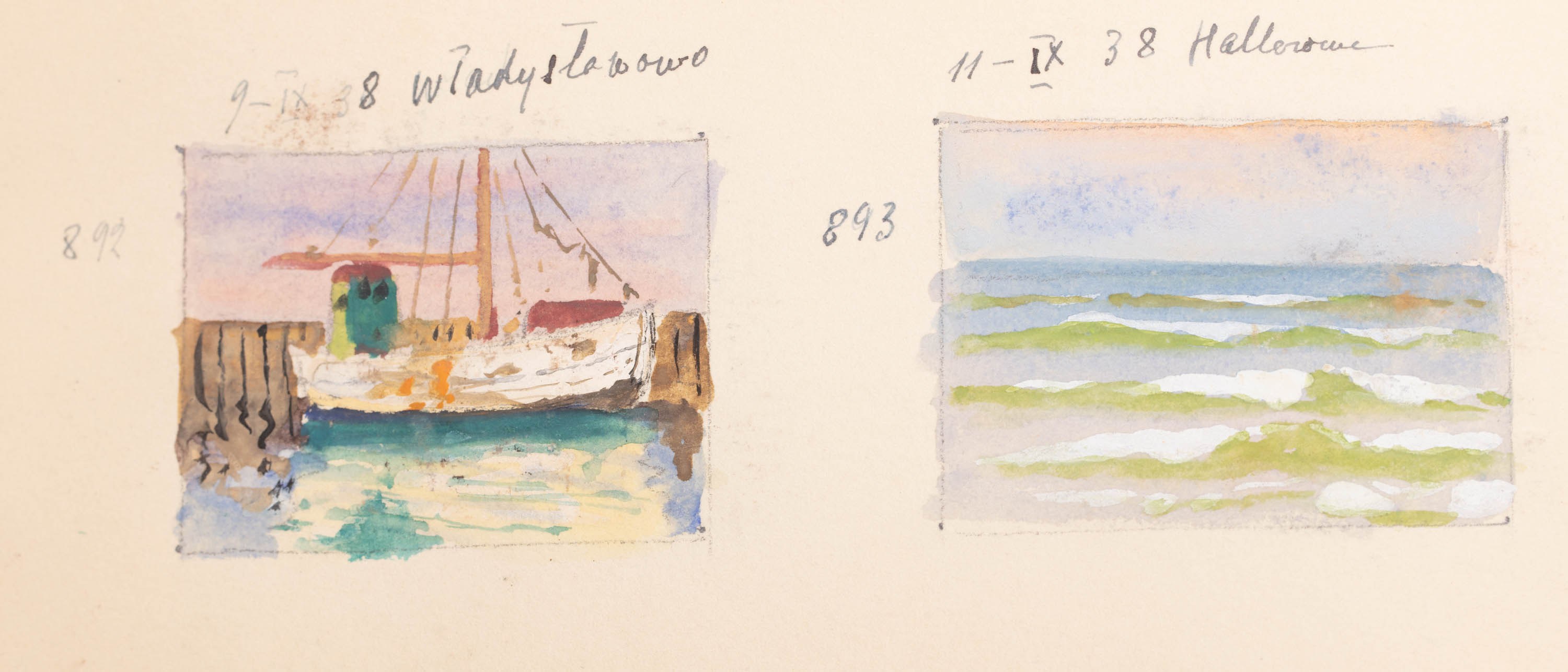 Autorski szkicownik z około 180 akwarelami, 3 zdjęciami obrazów oraz wycinkami prasowymi zebranymi przez malarza, lata 1930 - 1939