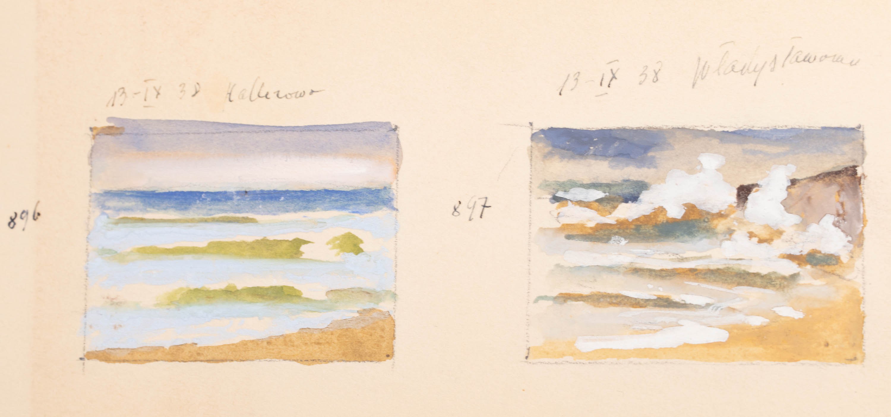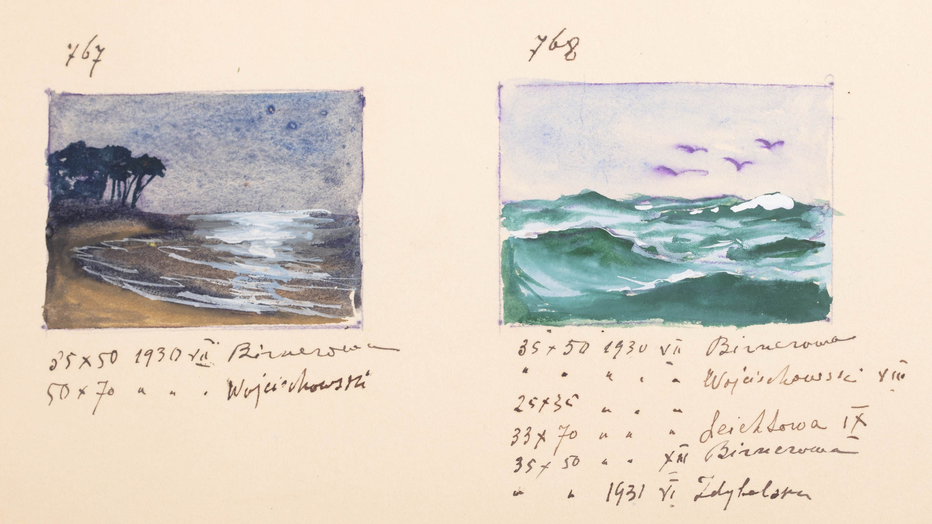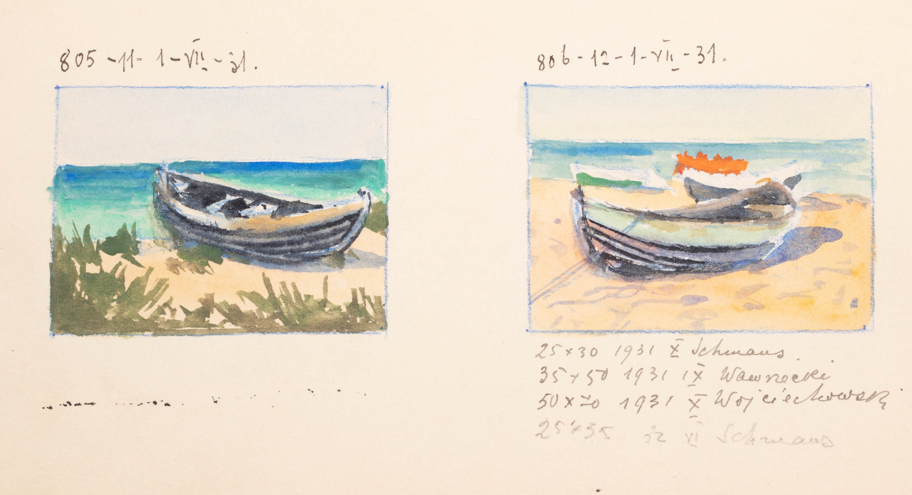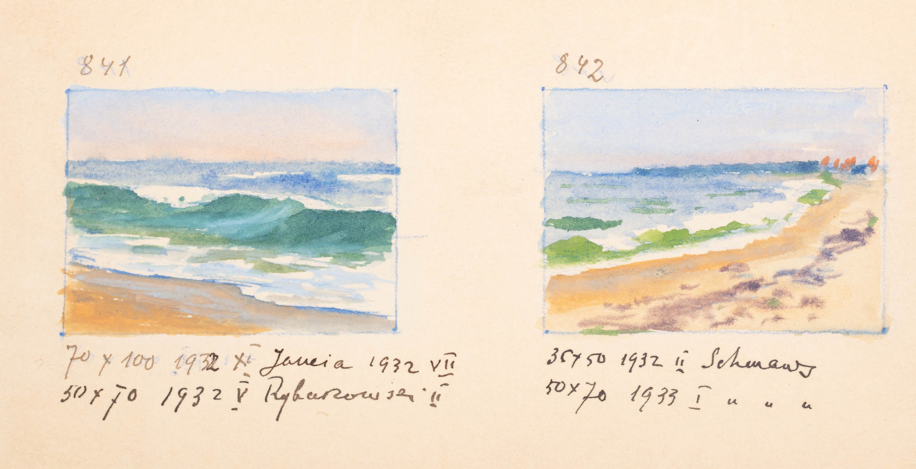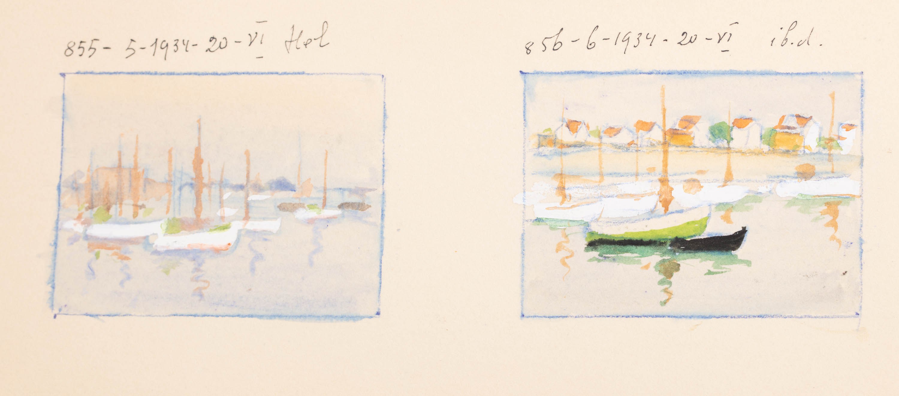 Autorski szkicownik z około 180 akwarelami, 3 zdjęciami obrazów oraz wycinkami prasowymi zebranymi przez malarza, lata 1930 - 1939