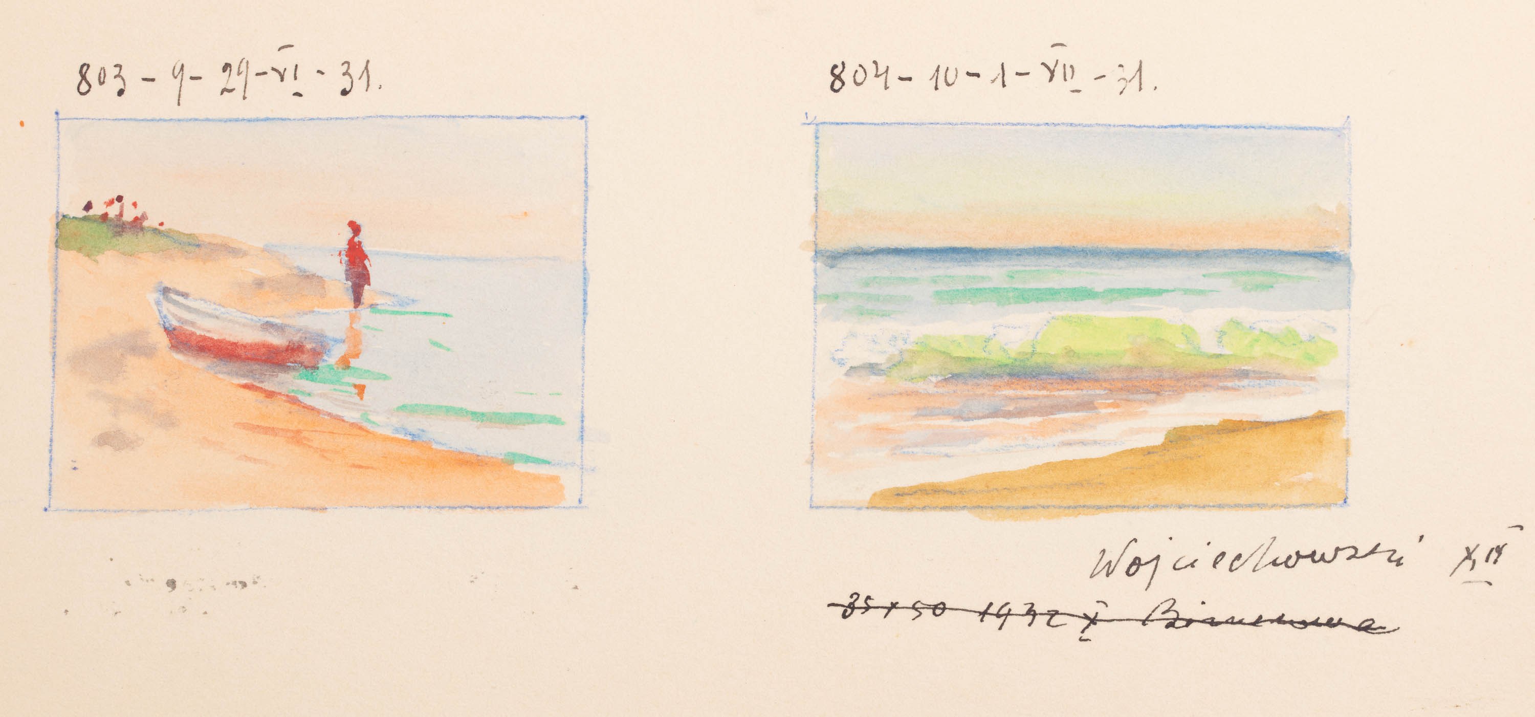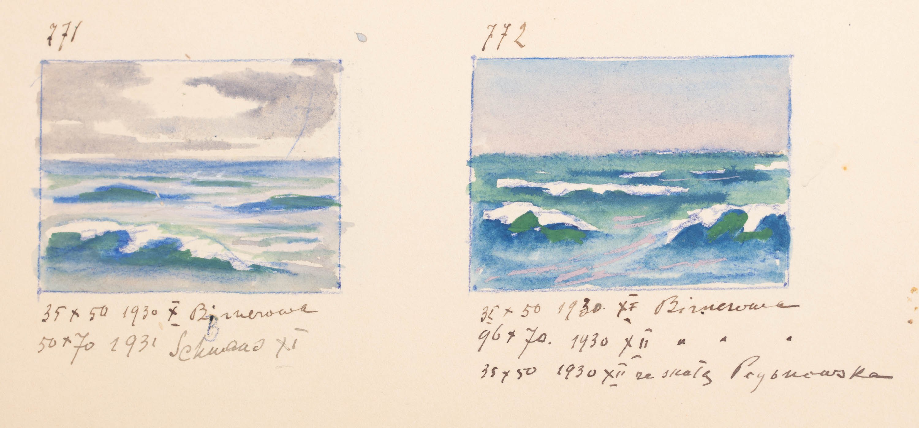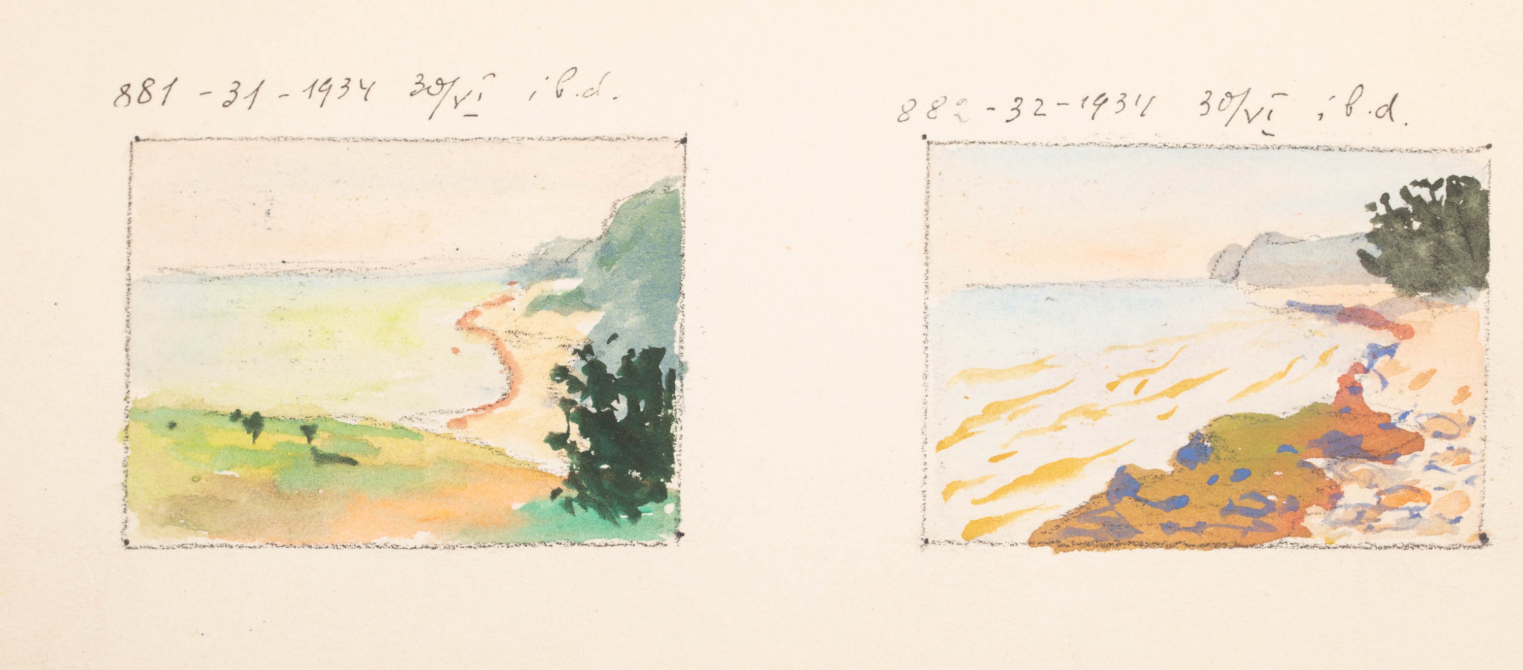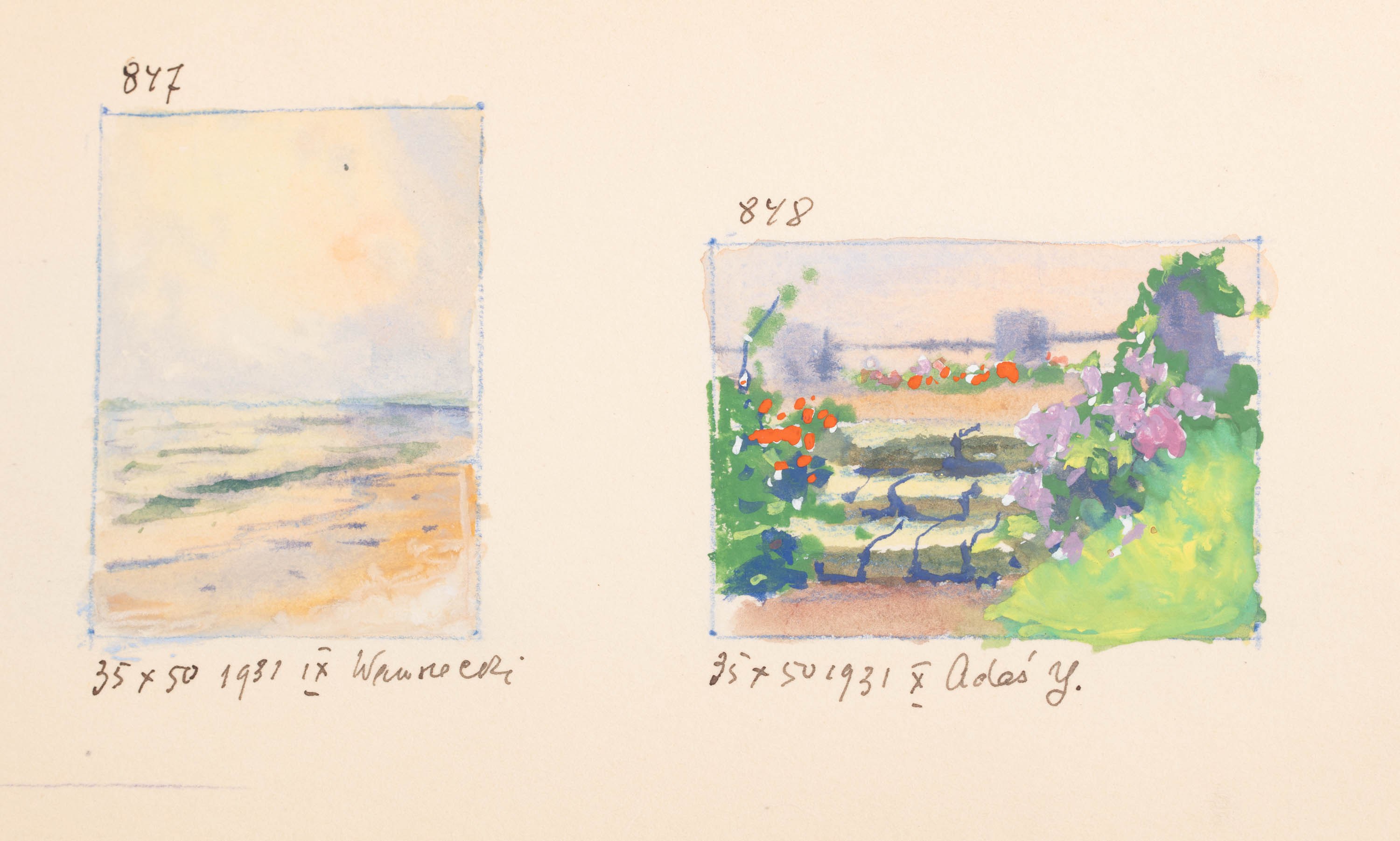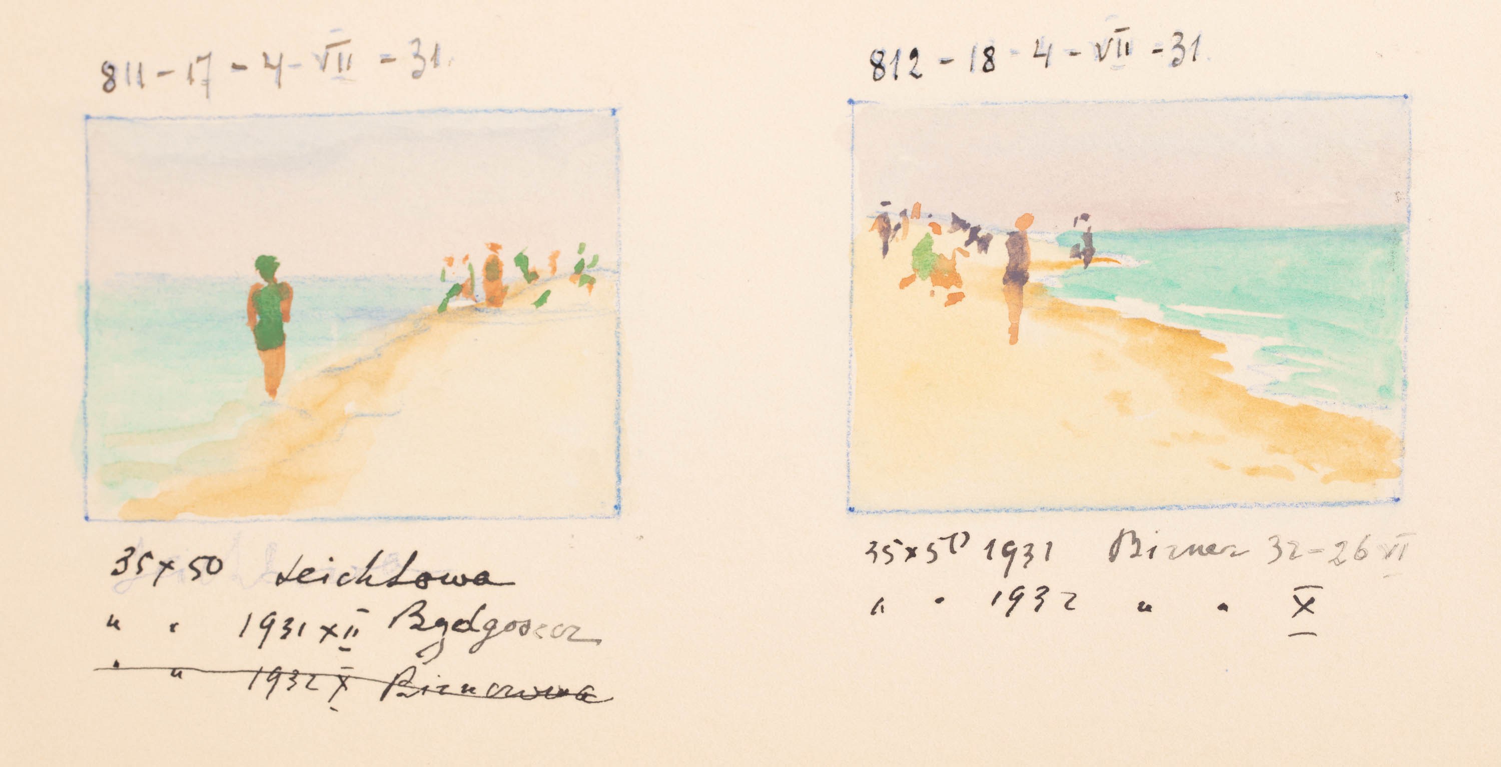 Autorski szkicownik z około 180 akwarelami, 3 zdjęciami obrazów oraz wycinkami prasowymi zebranymi przez malarza, lata 1930 - 1939