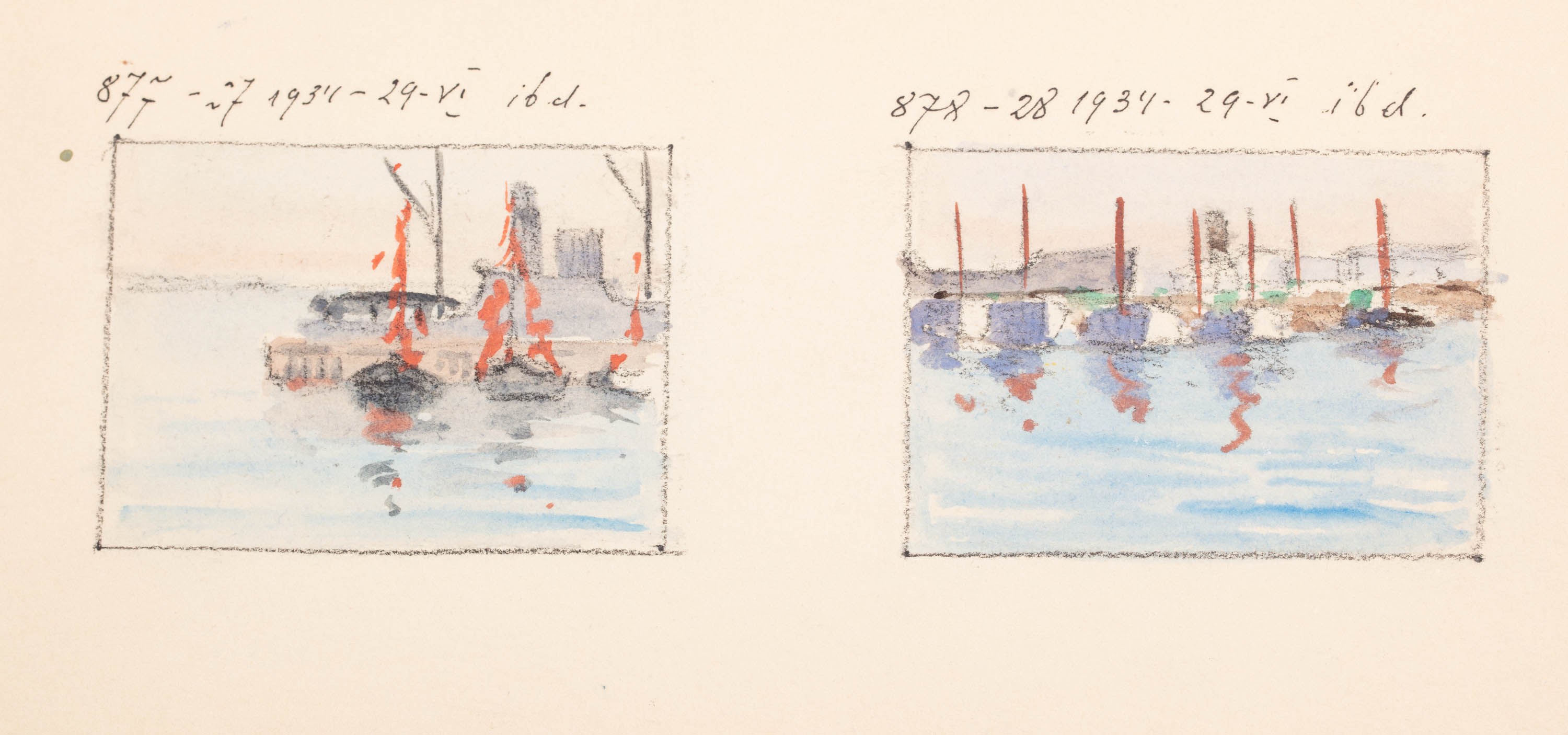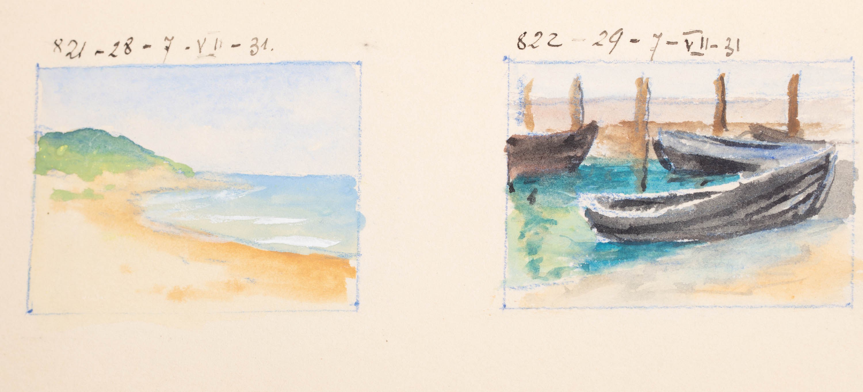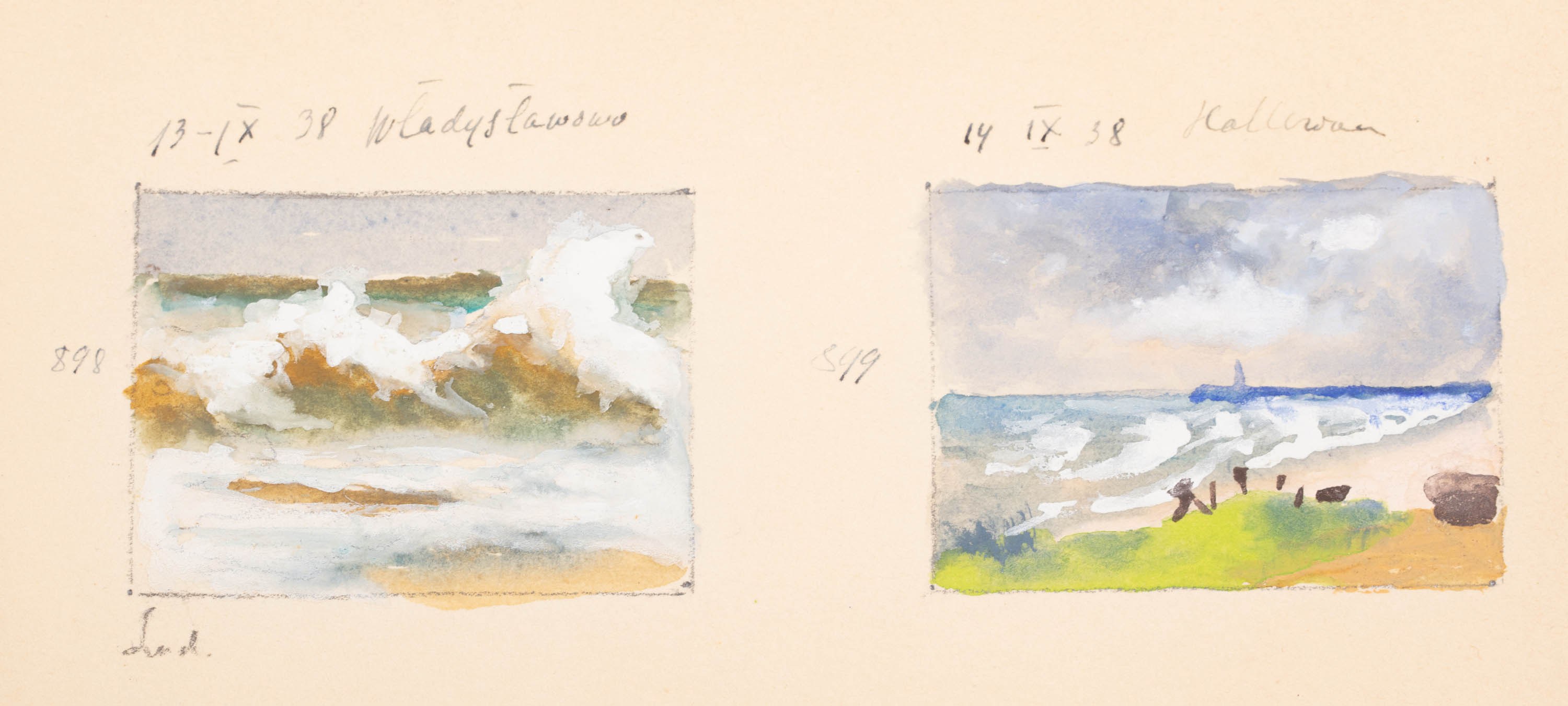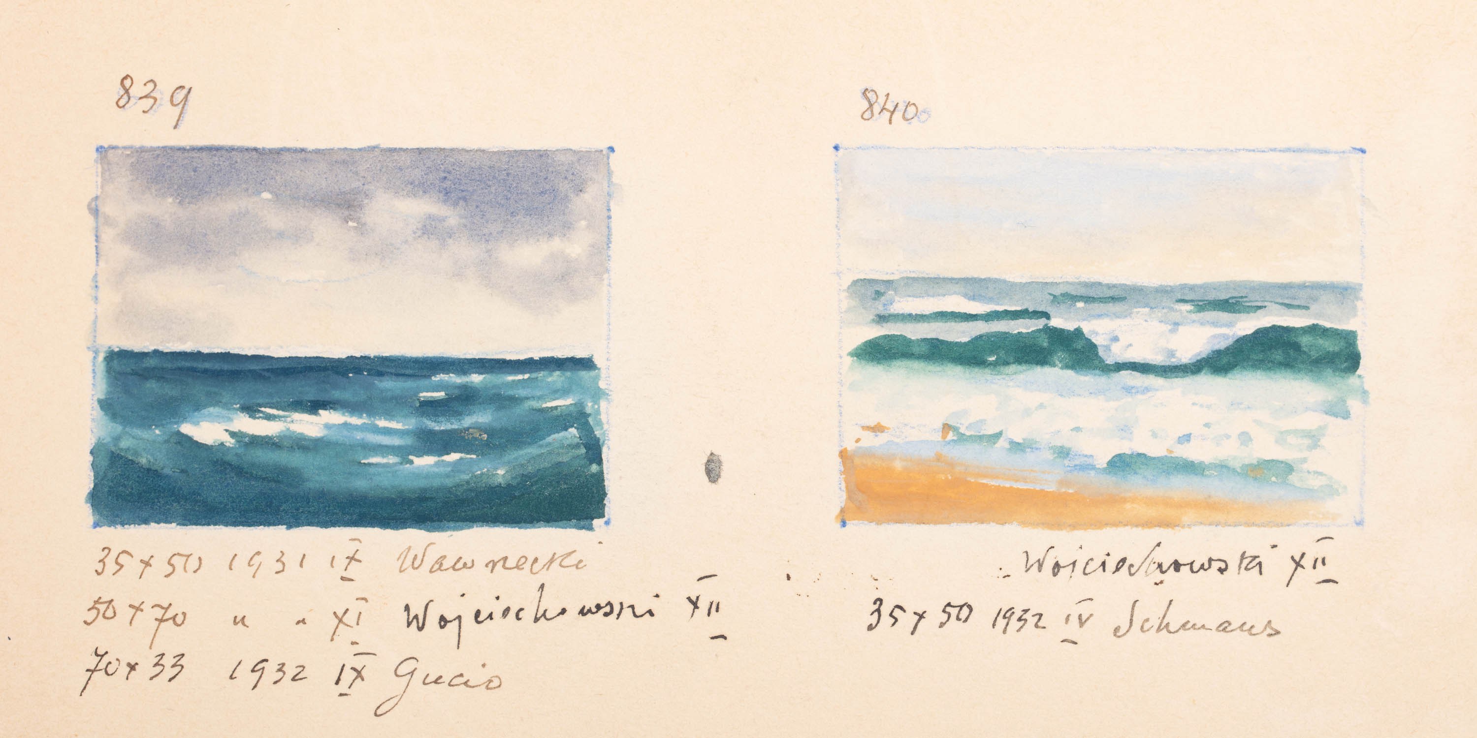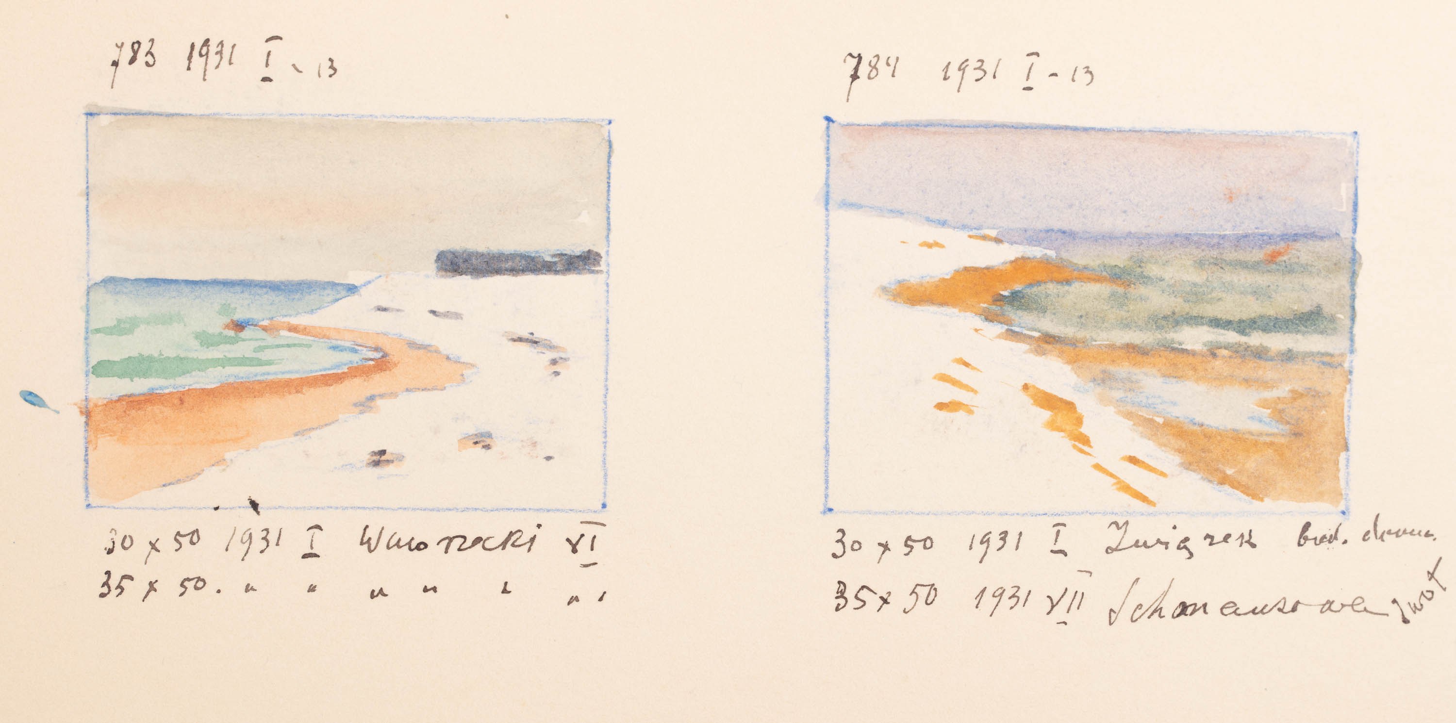 Autorski szkicownik z około 180 akwarelami, 3 zdjęciami obrazów oraz wycinkami prasowymi zebranymi przez malarza, lata 1930 - 1939