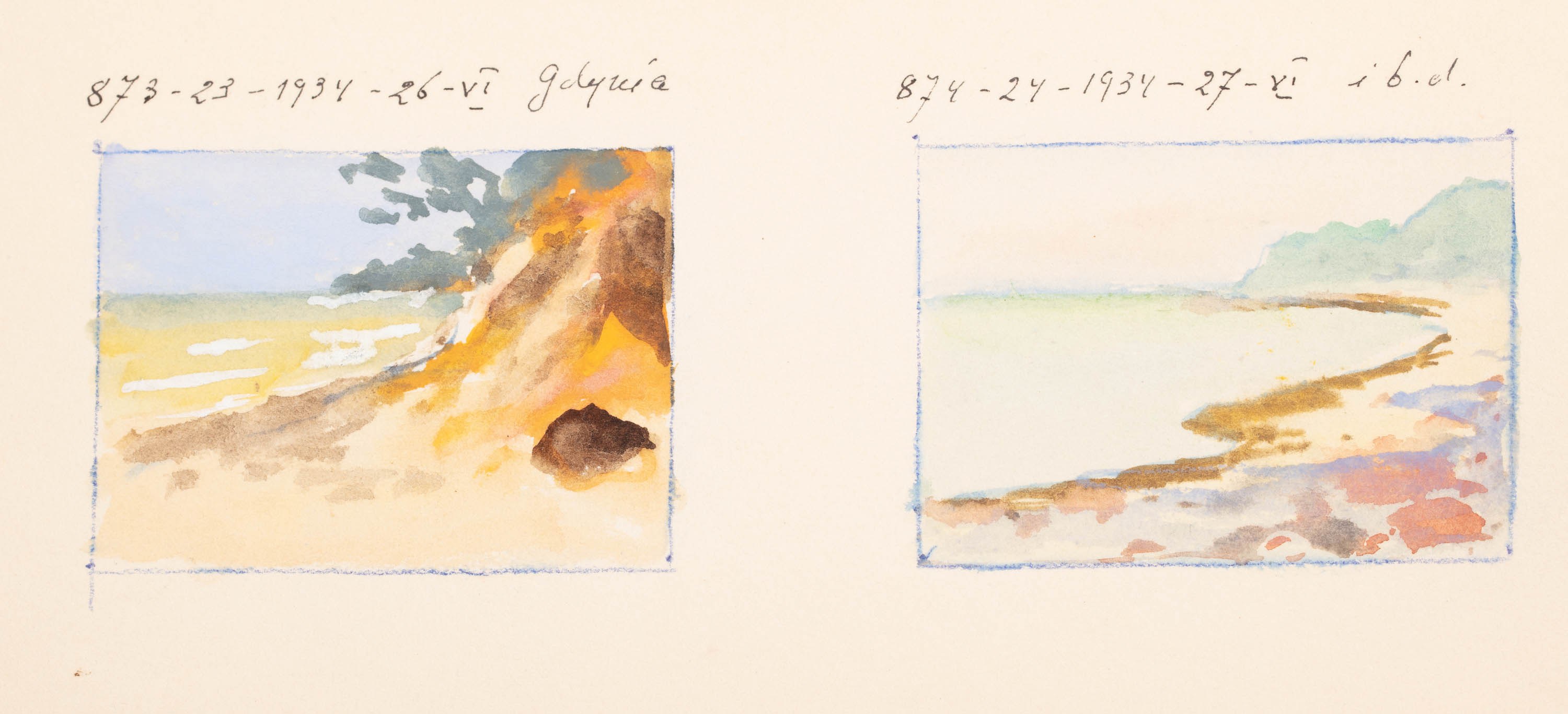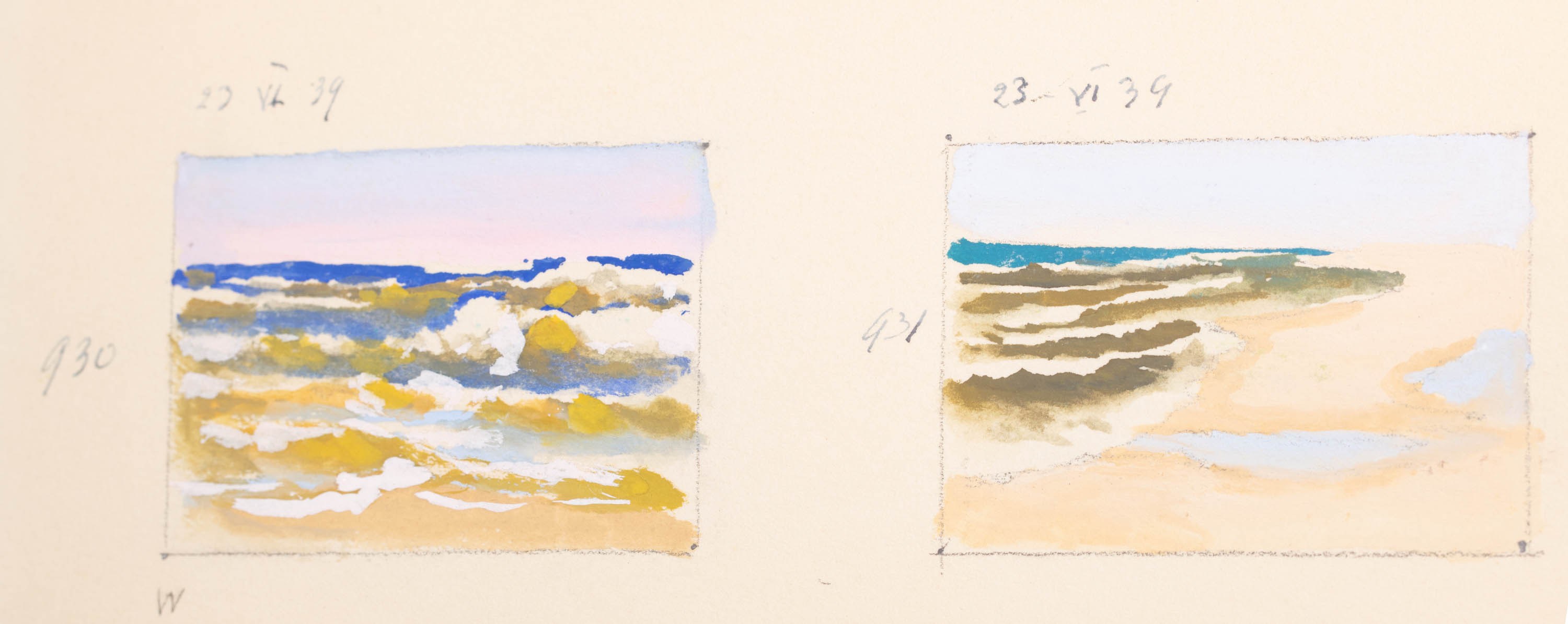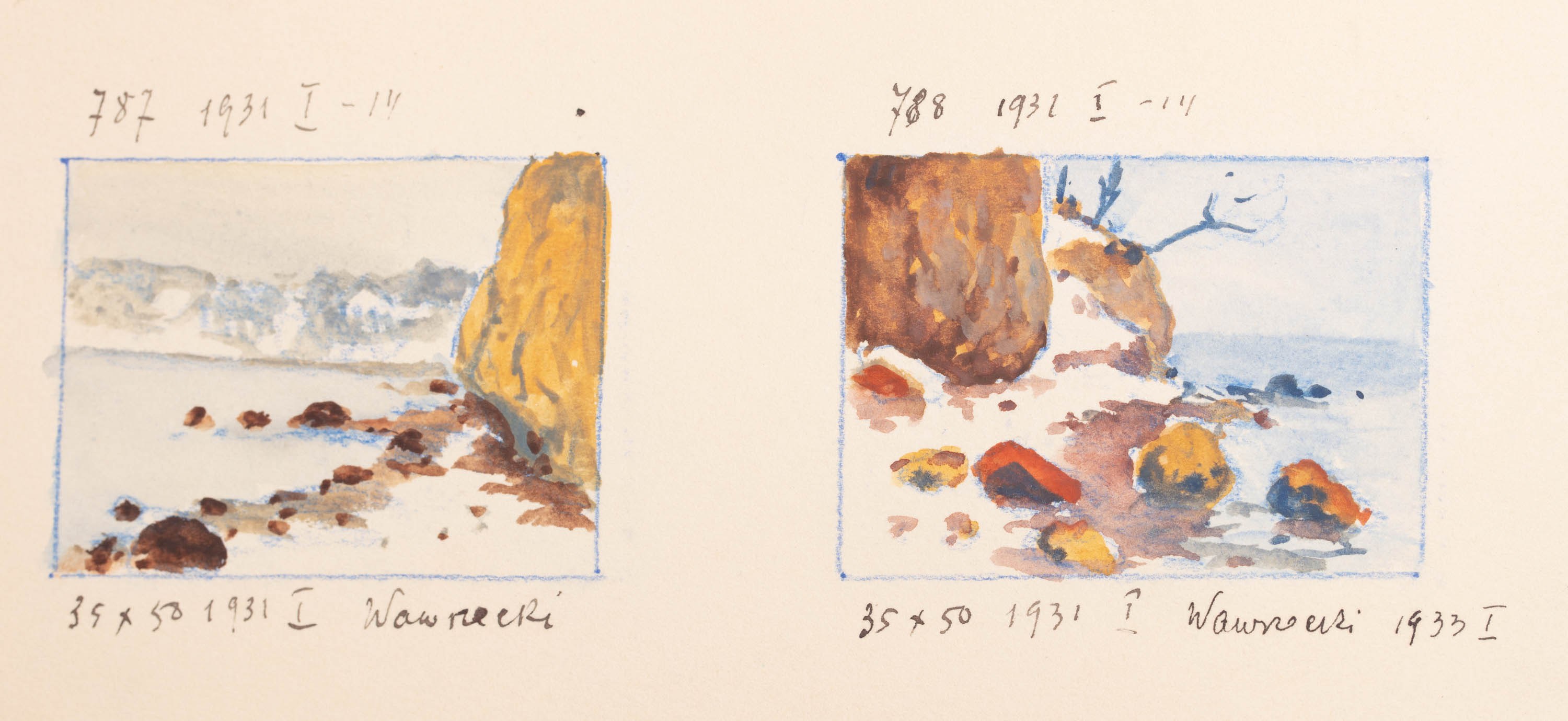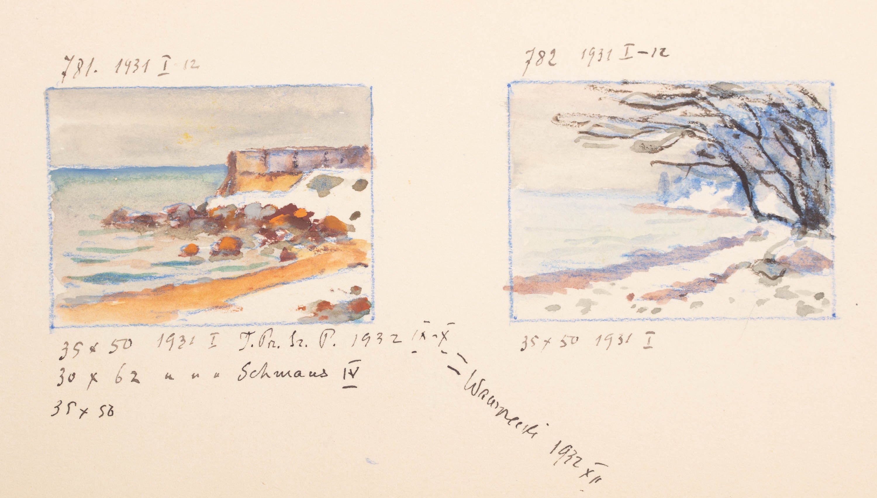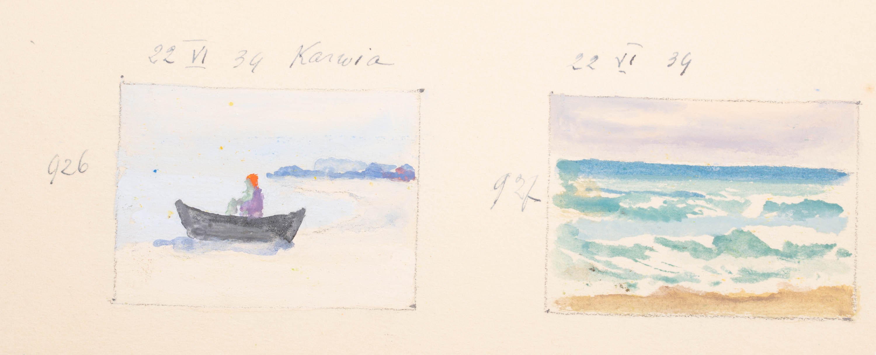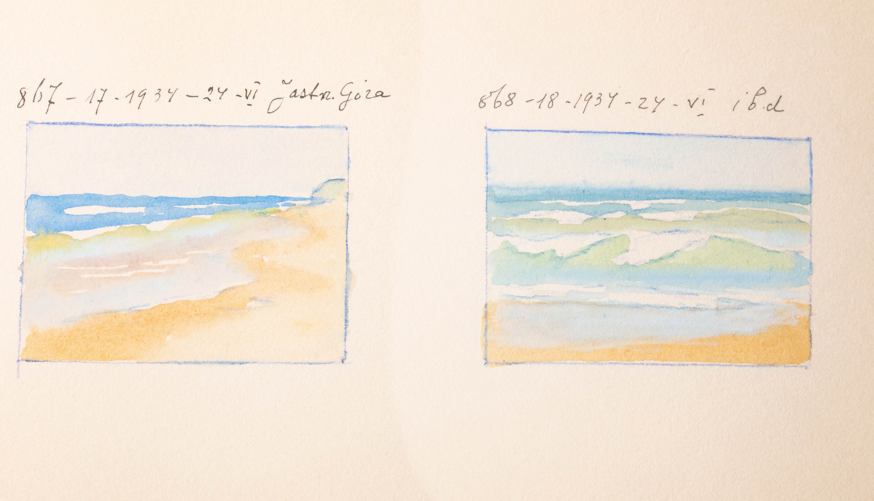 Autorski szkicownik z około 180 akwarelami, 3 zdjęciami obrazów oraz wycinkami prasowymi zebranymi przez malarza, lata 1930 - 1939