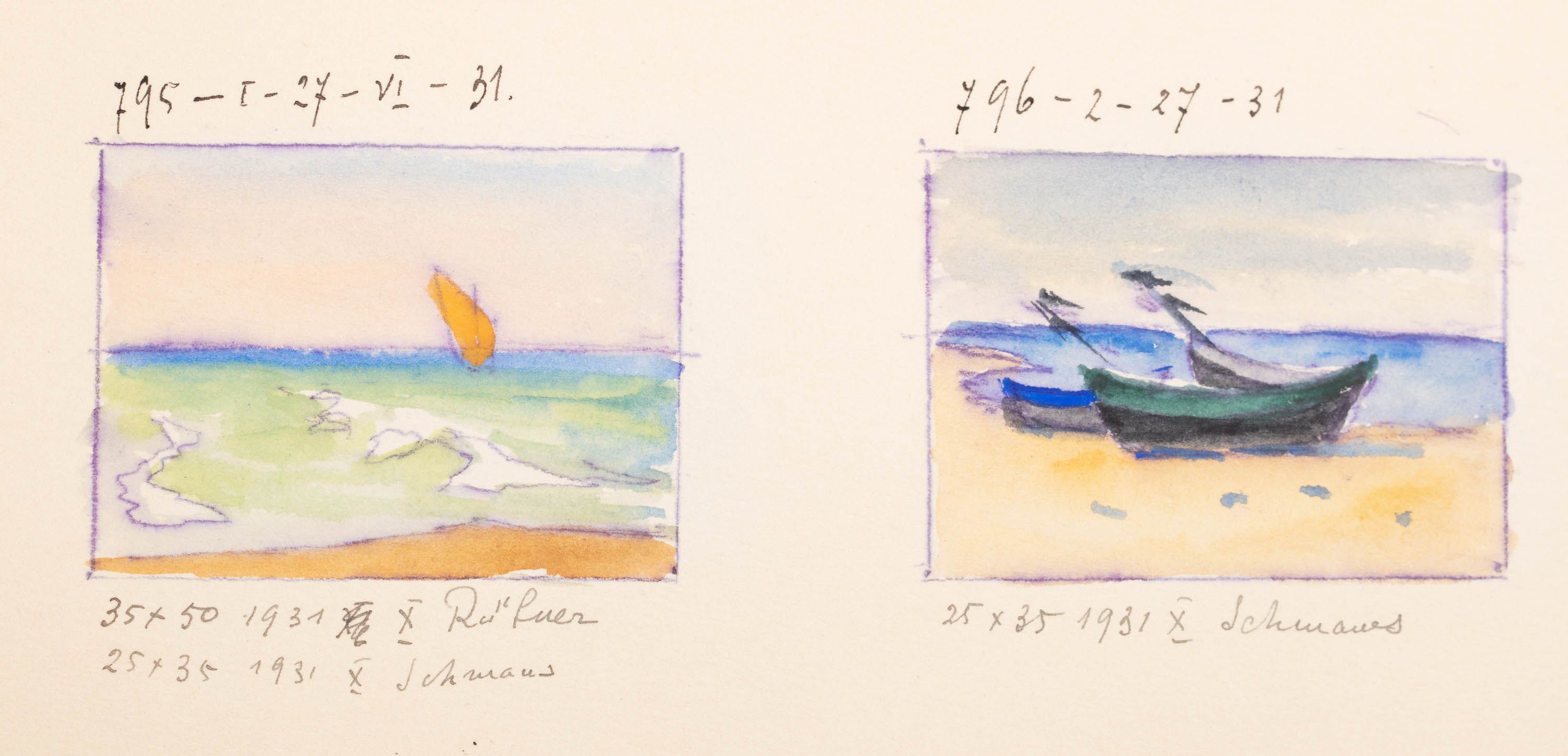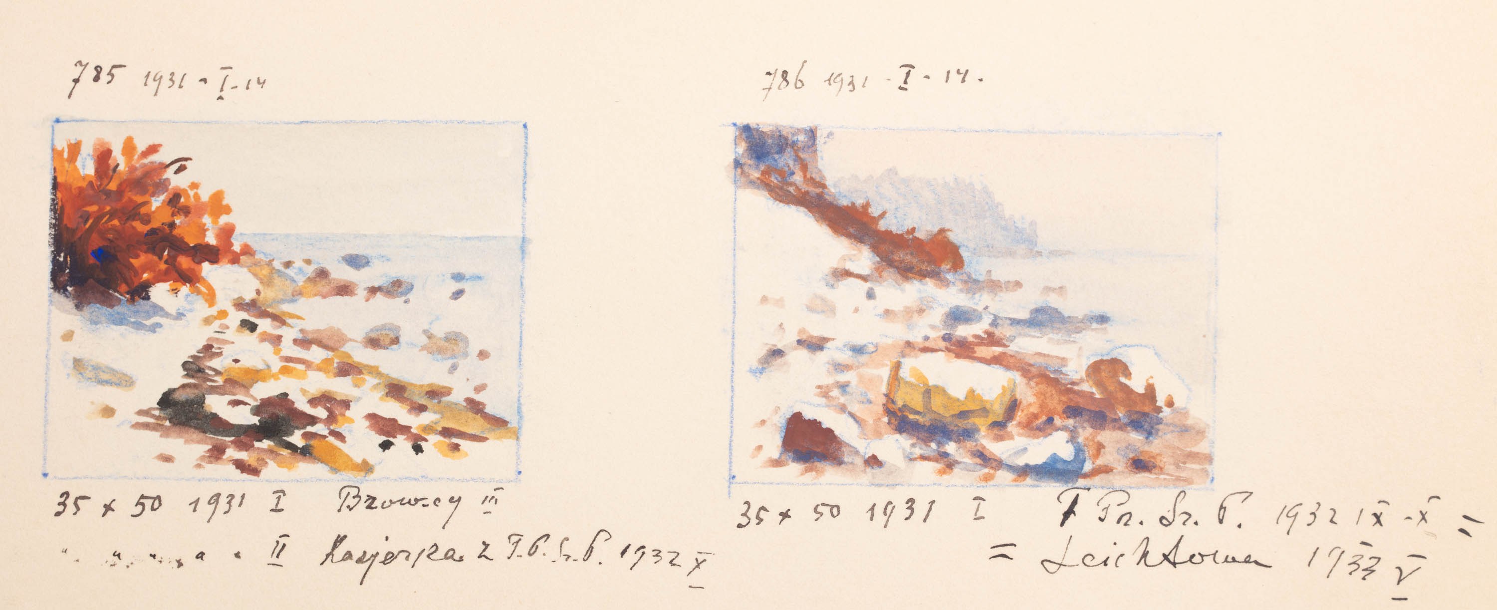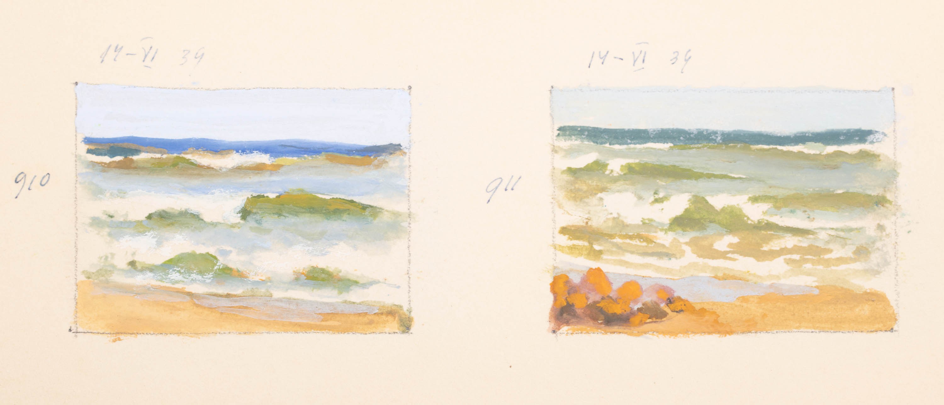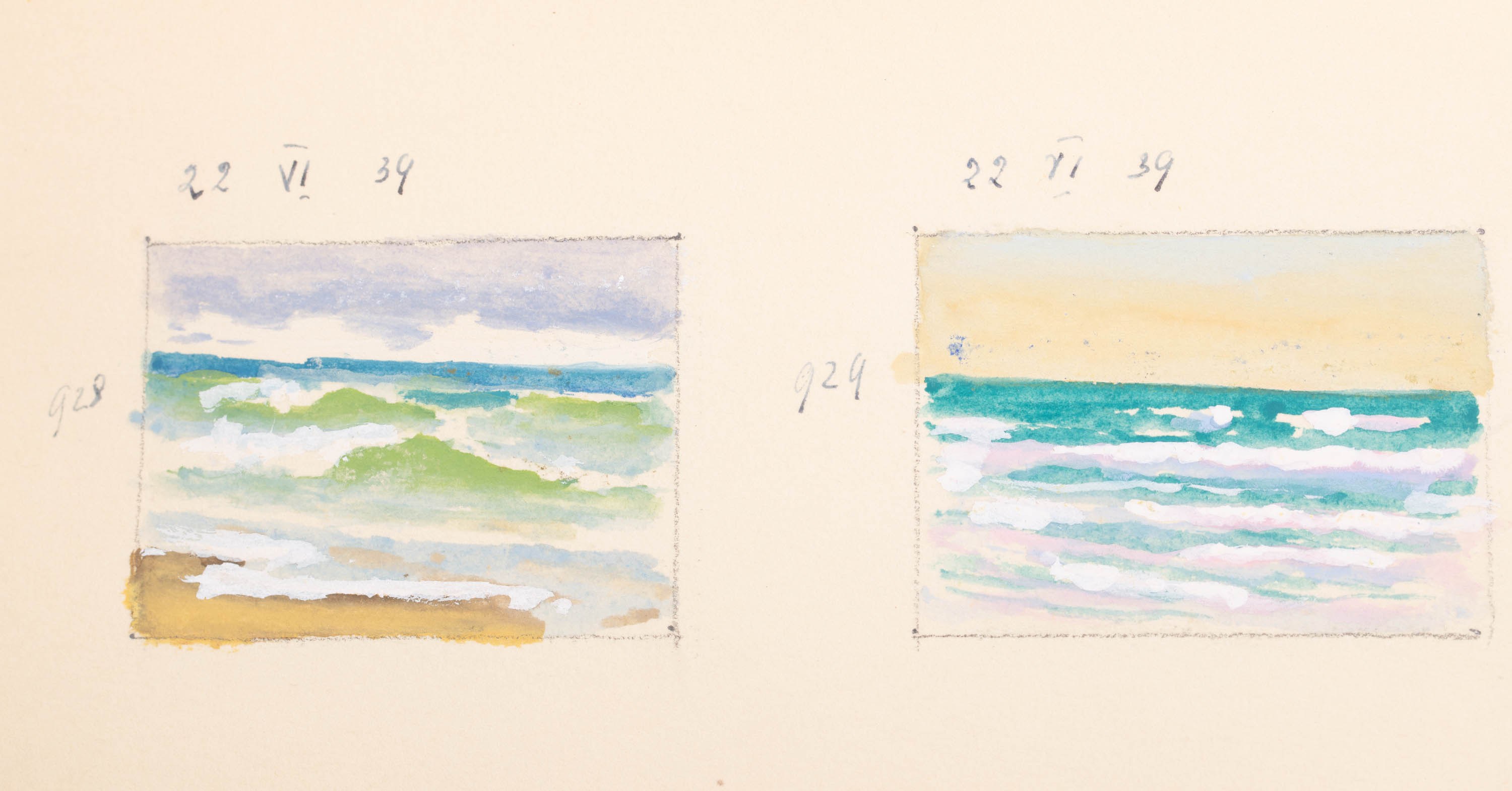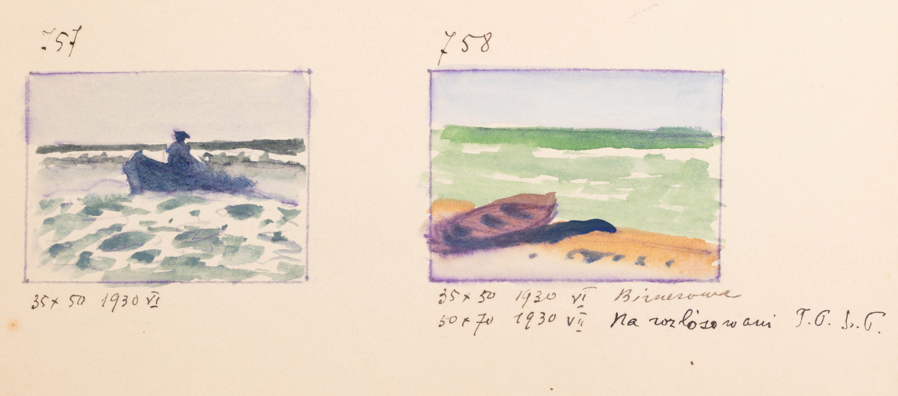 Autorski szkicownik z około 180 akwarelami, 3 zdjęciami obrazów oraz wycinkami prasowymi zebranymi przez malarza, lata 1930 - 1939