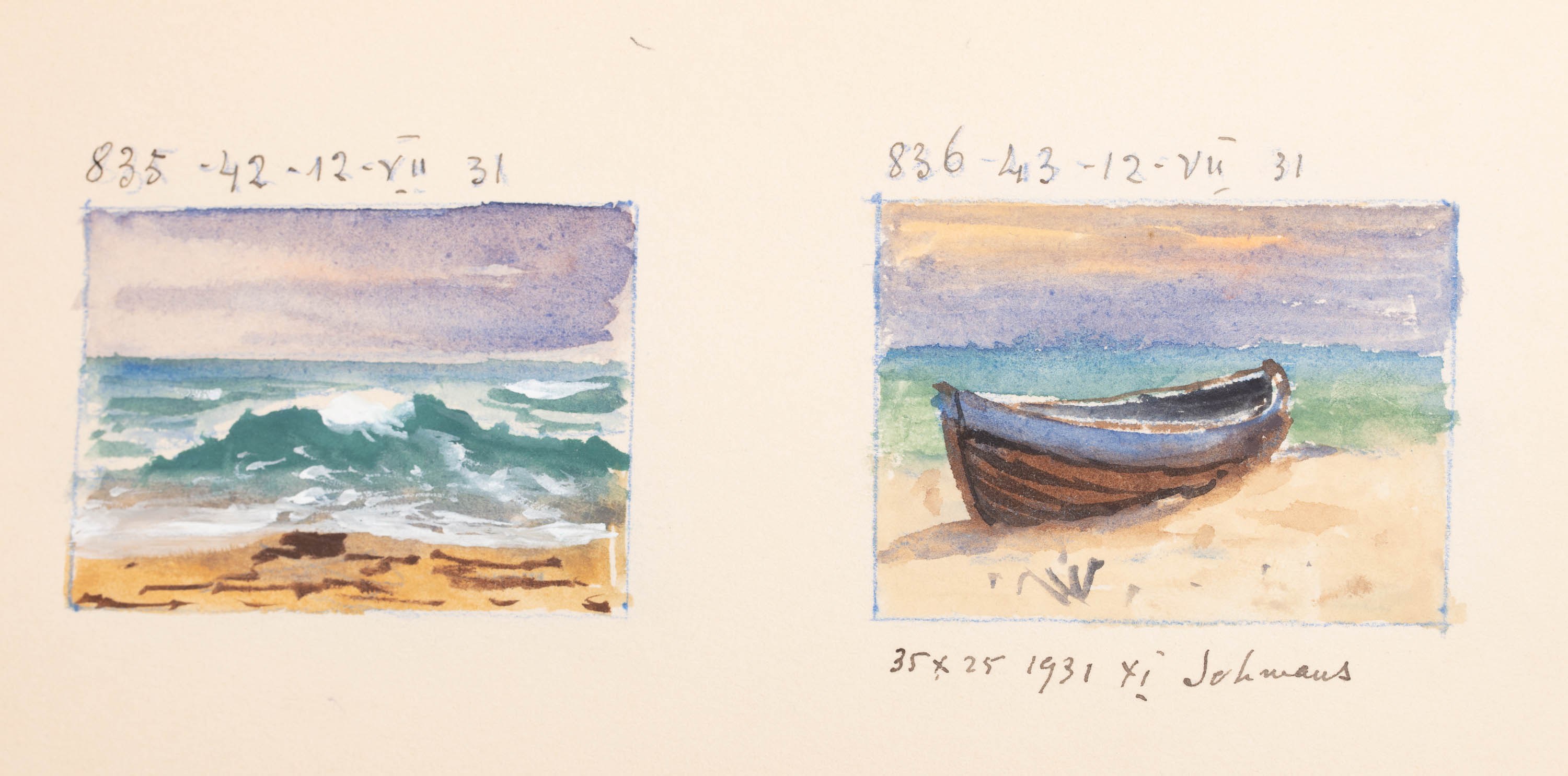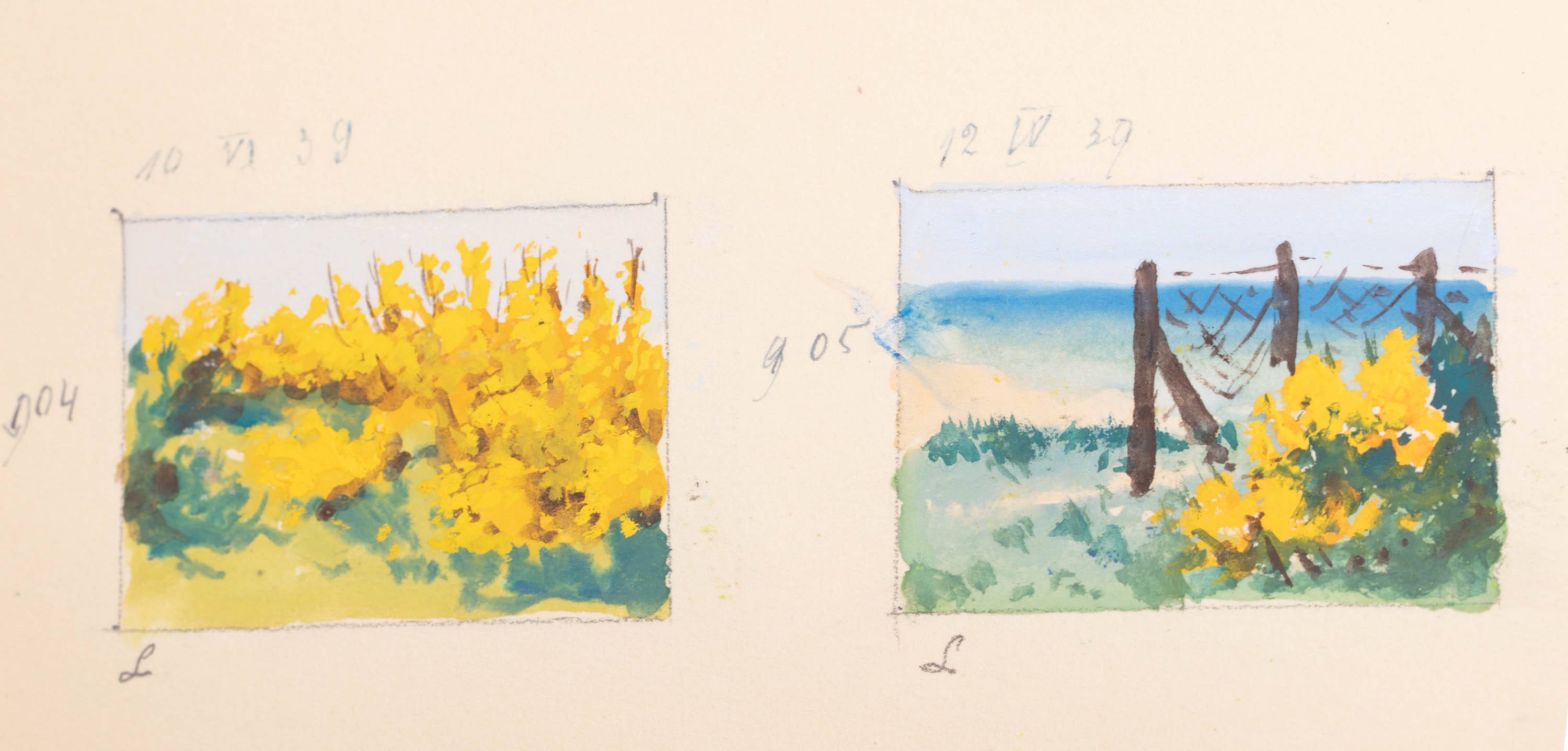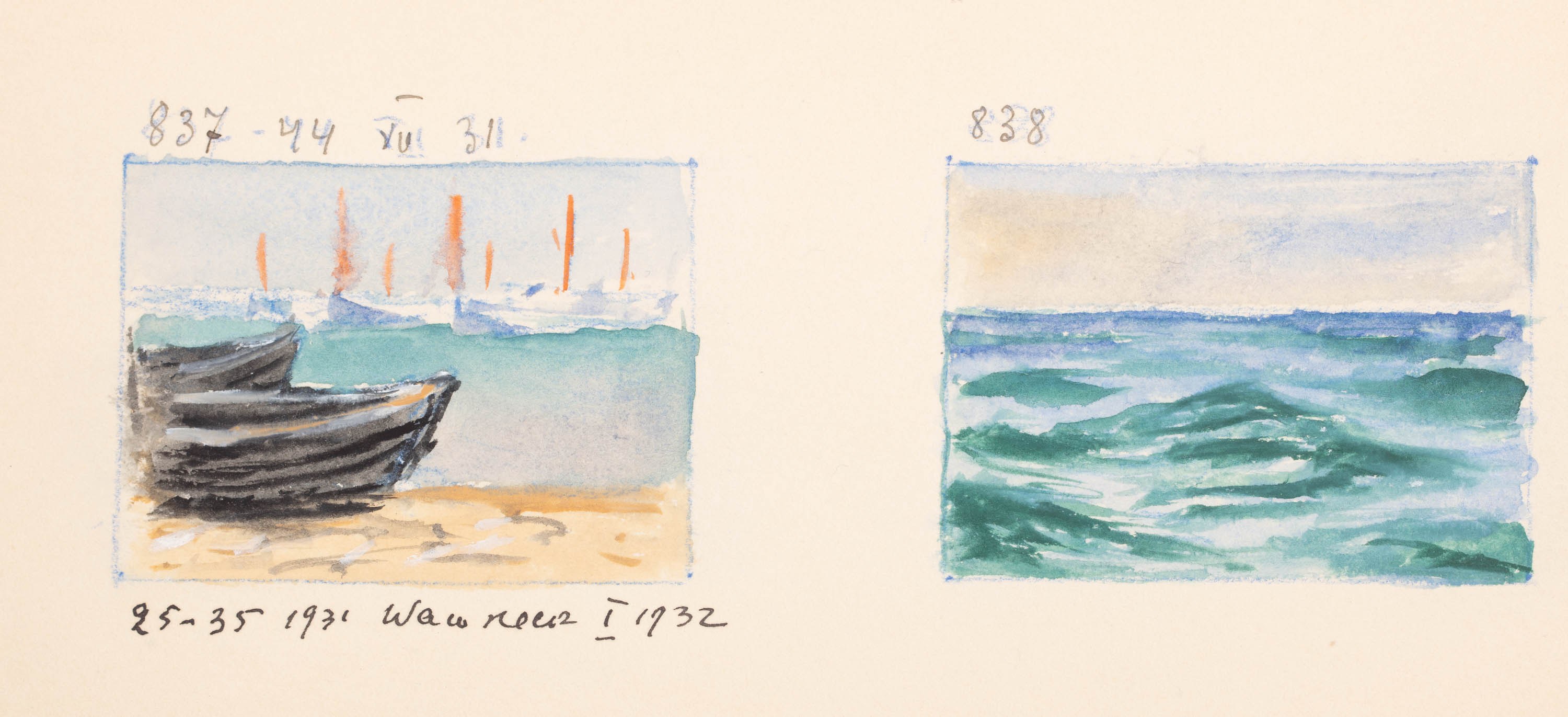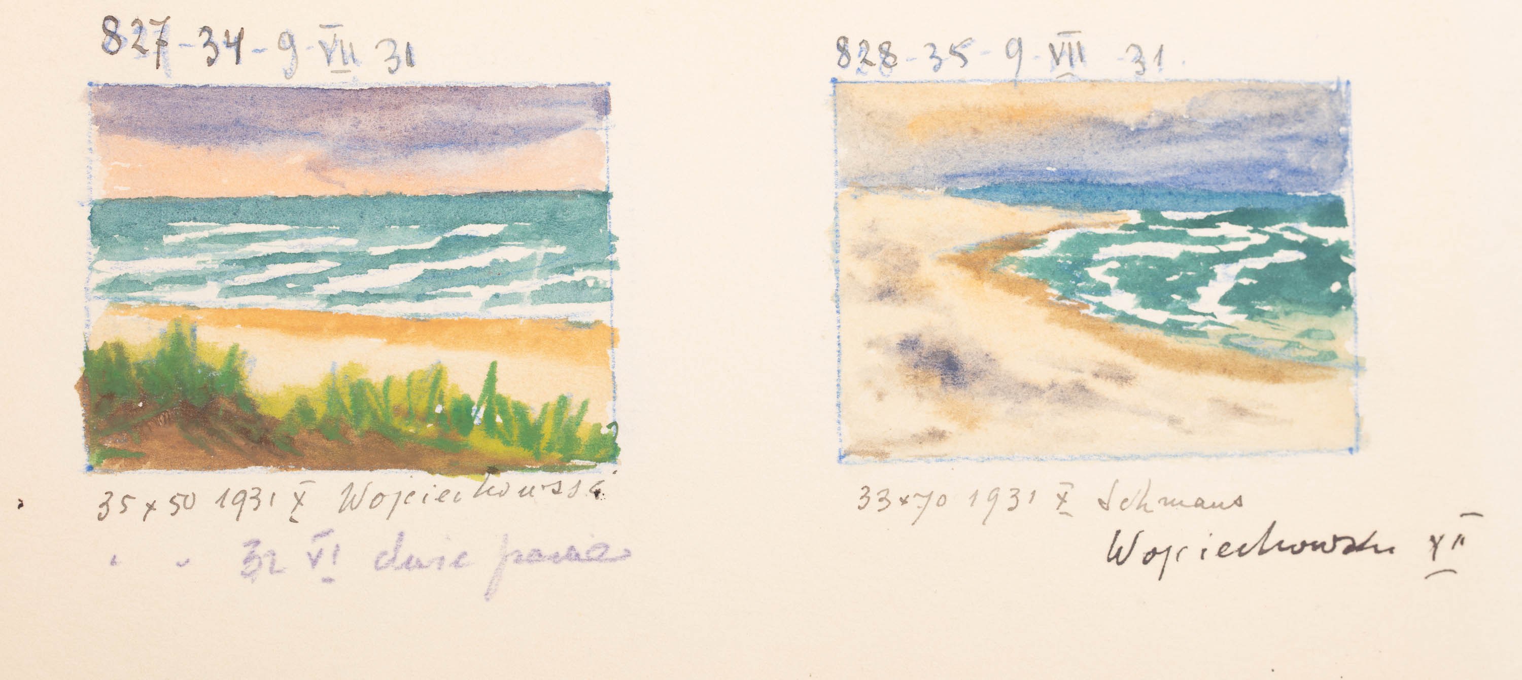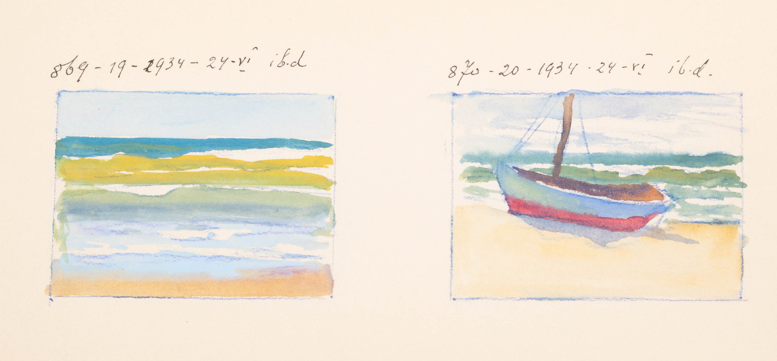 Autorski szkicownik z około 180 akwarelami, 3 zdjęciami obrazów oraz wycinkami prasowymi zebranymi przez malarza, lata 1930 - 1939