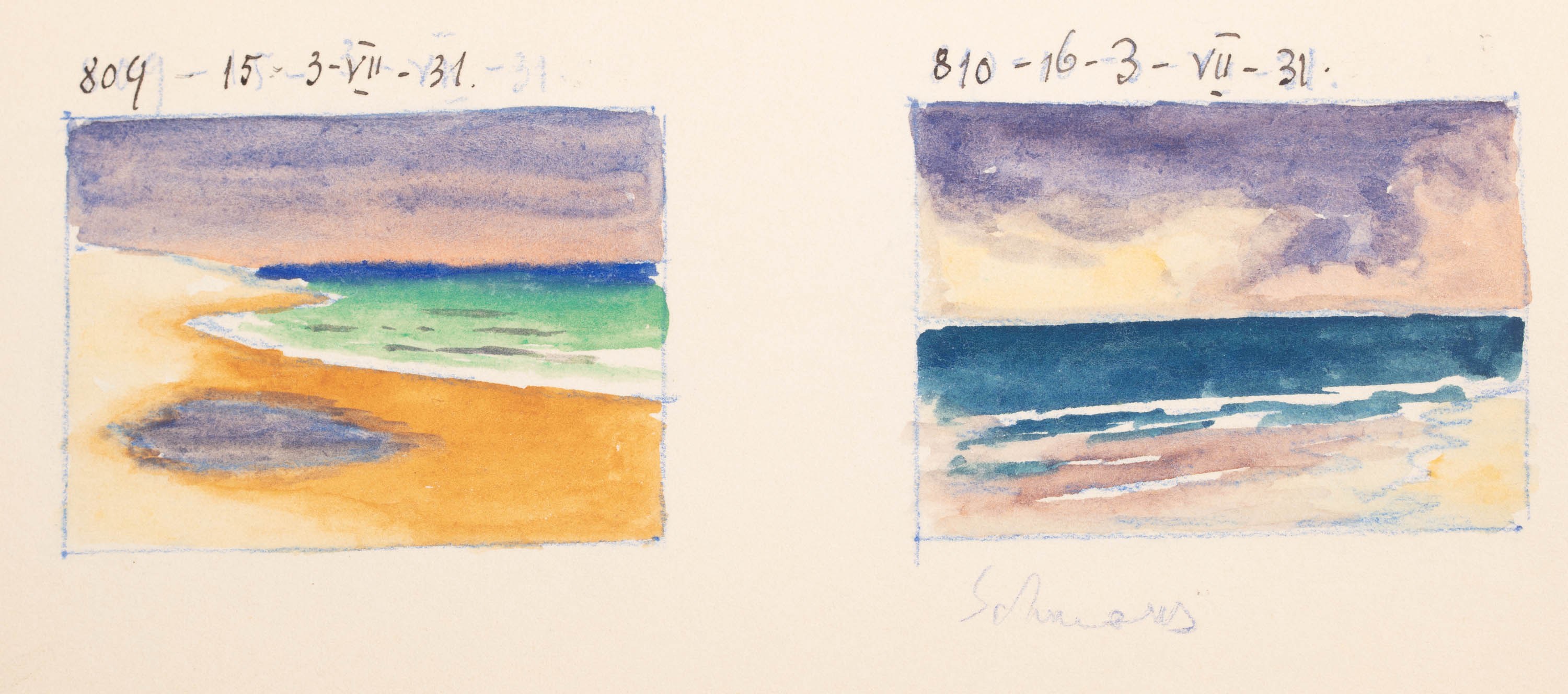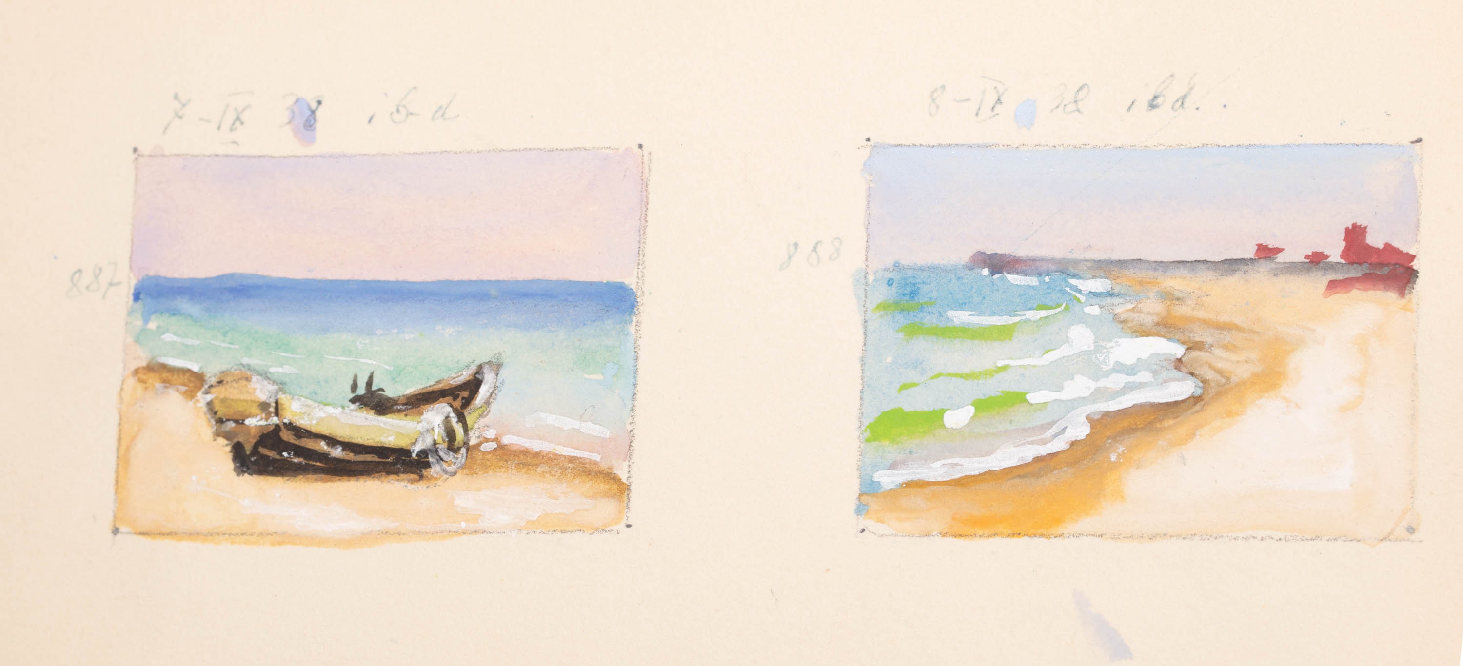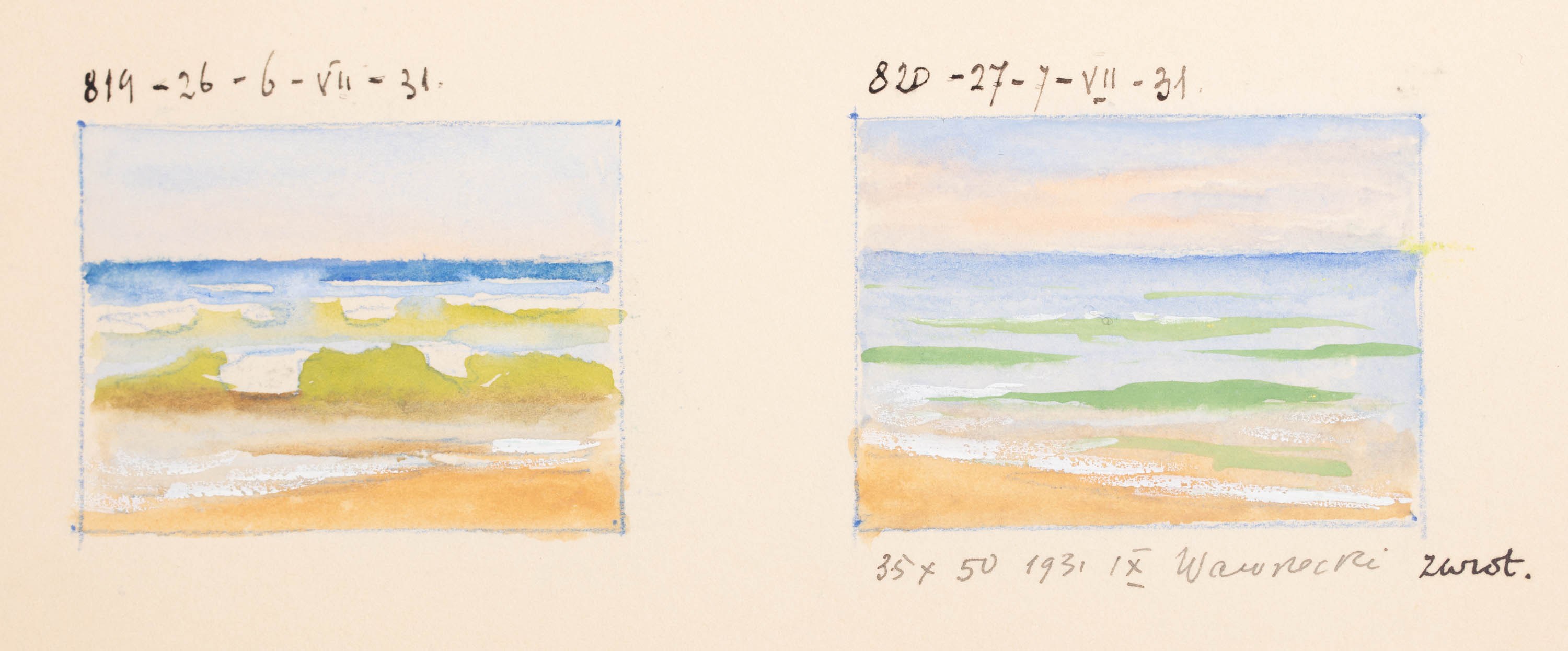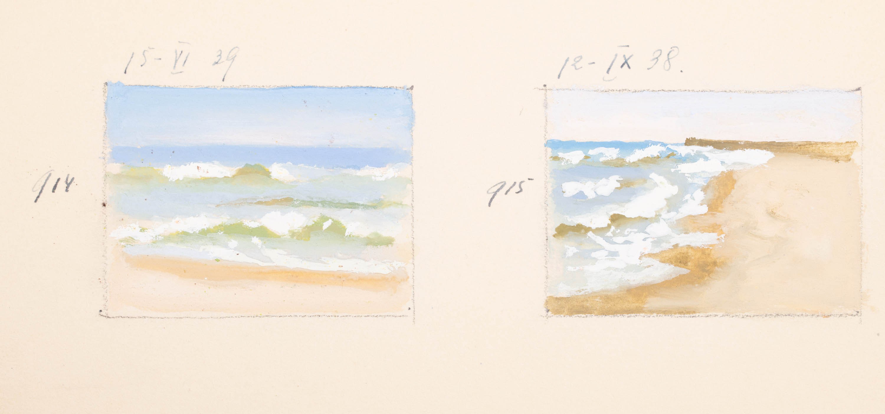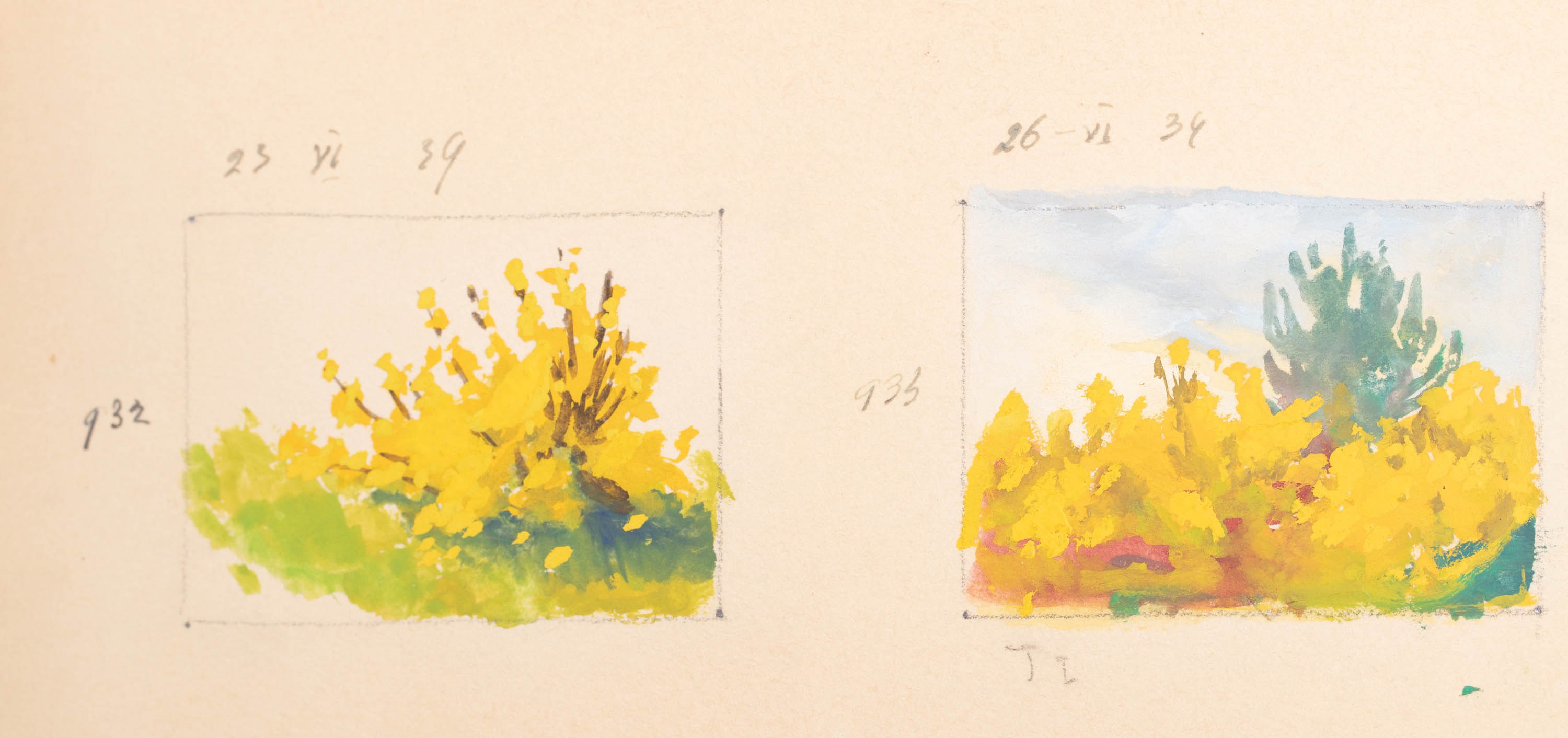 Autorski szkicownik z około 180 akwarelami, 3 zdjęciami obrazów oraz wycinkami prasowymi zebranymi przez malarza, lata 1930 - 1939