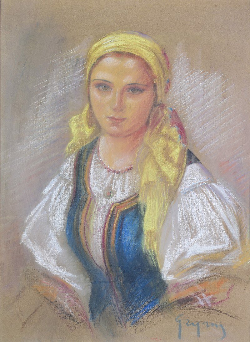 pastel, papier; 62,5 x 45,5 cm (w świetle oprawy);