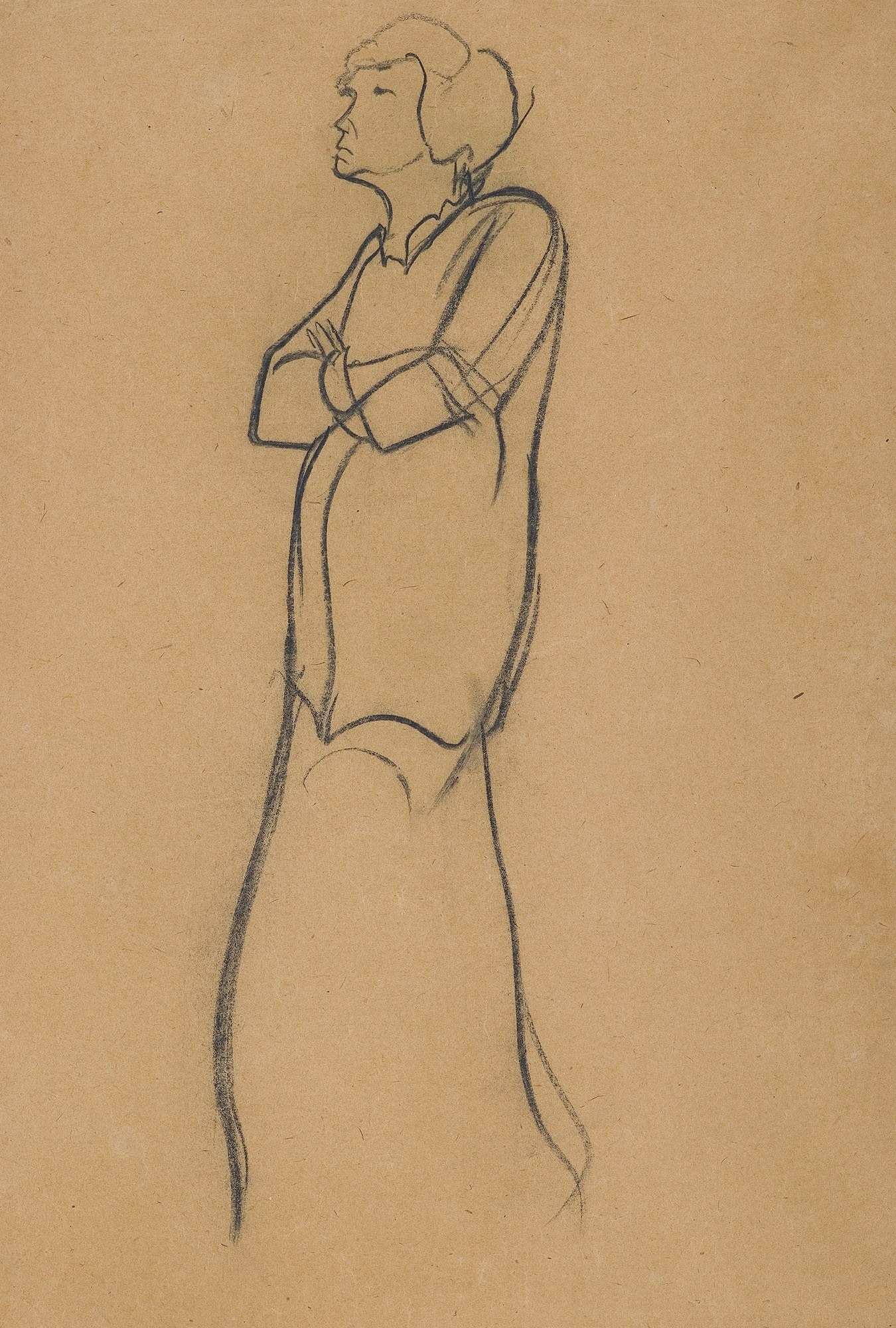 Pracowniane szkice węglem z pewnością pomogły młodemu artyście uzyskać swobodę w rysowaniu oraz rozwinąć postrzeganie ludzkiej postaci, co w przyszłości pozwoliło mu osiągnąć nadzwyczajną biegłość w wykonywaniu portretów. Szkic stojącej kobiety ujętej w 3/4 prezentuje umiejętne uchwycenie jej swobodnej pozy z lekko uniesioną głową i rękami złożonymi w tzw. małdrzyk. Jednocześnie rysunek zdradza pewne zaburzenia proporcji, zwłaszcza wydłużenie dolnej części postaci, całość jednak jest harmonijna. Niewątpliwie można też zauważyć specyficzną ekspresję charakterystyczną dla dojrzałej twórczości artysty, który z powodzeniem potrafił w jednej swojej pracy łączyć różne porządki tworzące wyrazistą kompozycję, jak np. realistyczne opracowanie głowy modela i szkicowe przedstawienie reszty postaci (popiersia). Rysunek wykonany w czasach studenckich pozwala więc na poznanie młodzieńczego etapu rozwoju artysty i jego warsztatu – podstawy dla jego późniejszej sztuki.