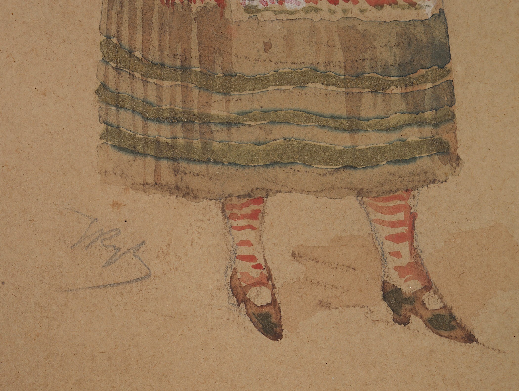 Technika: akwarela, gwasz, papier naklejony na tekturę