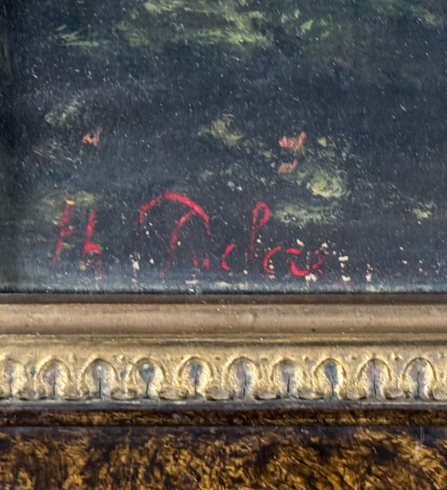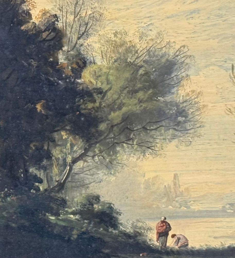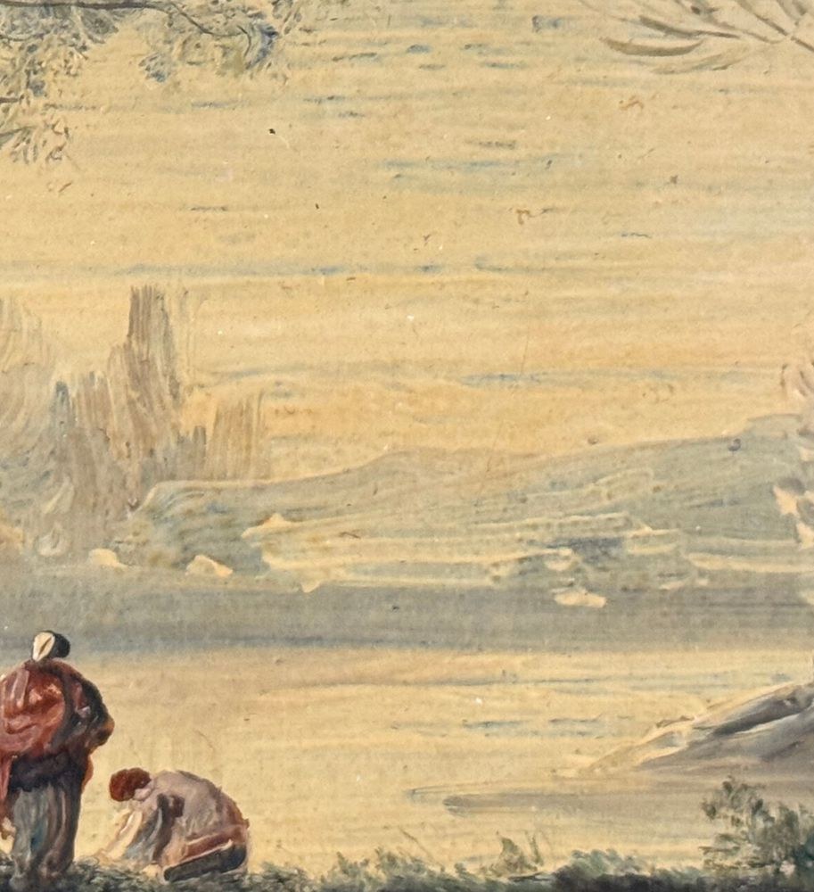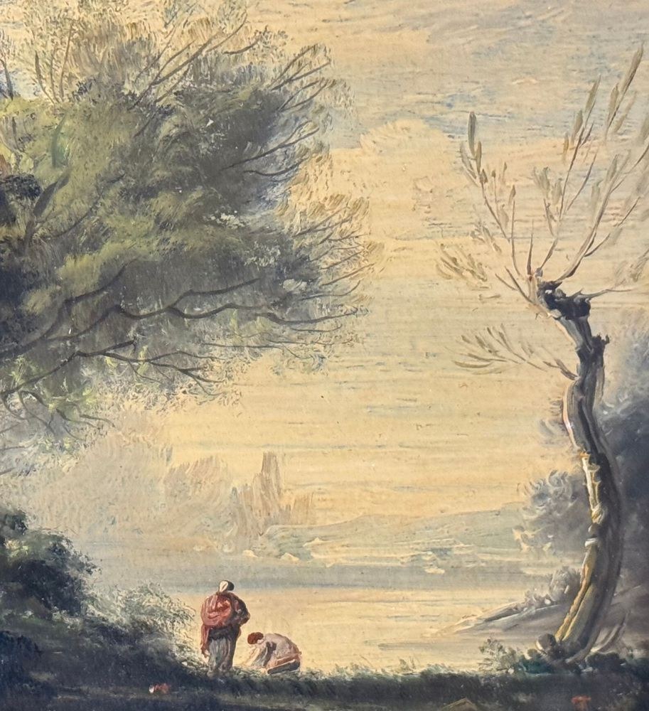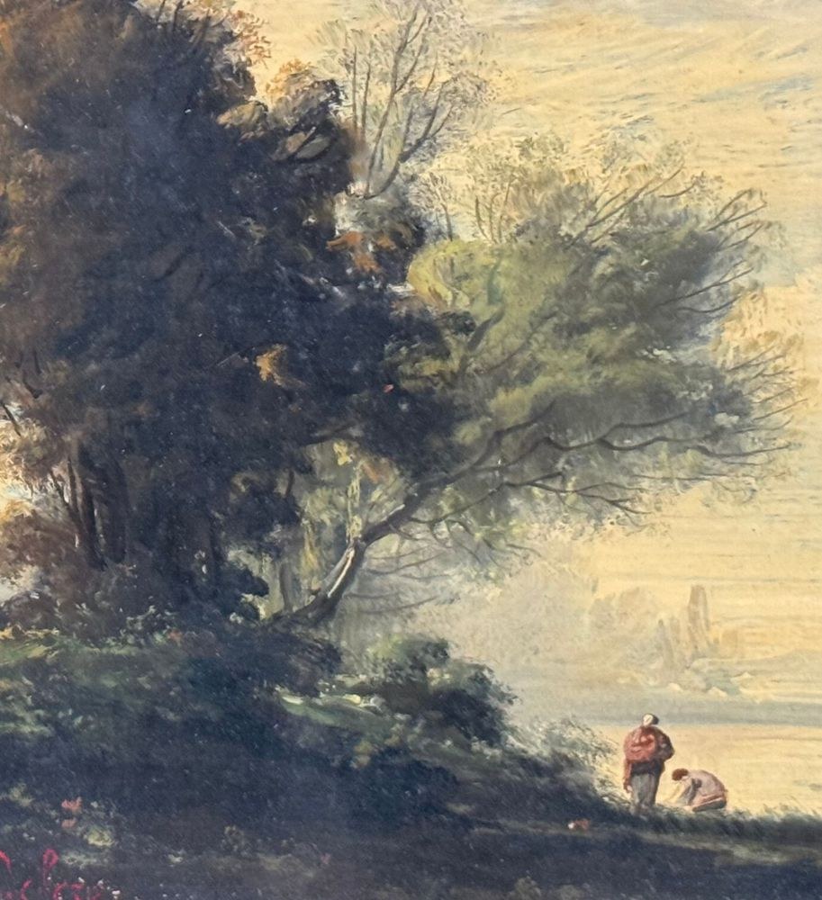 Oil on canvas laid on panel painting, 19th/20th century, Italian school, depicting a landscape. Dimensions including frame: 31 x 27 cm. Inner frame dimensions: 22 x 19 cm. Trace of a signature lower left by an unidentified artist. The artwork is in good condition.