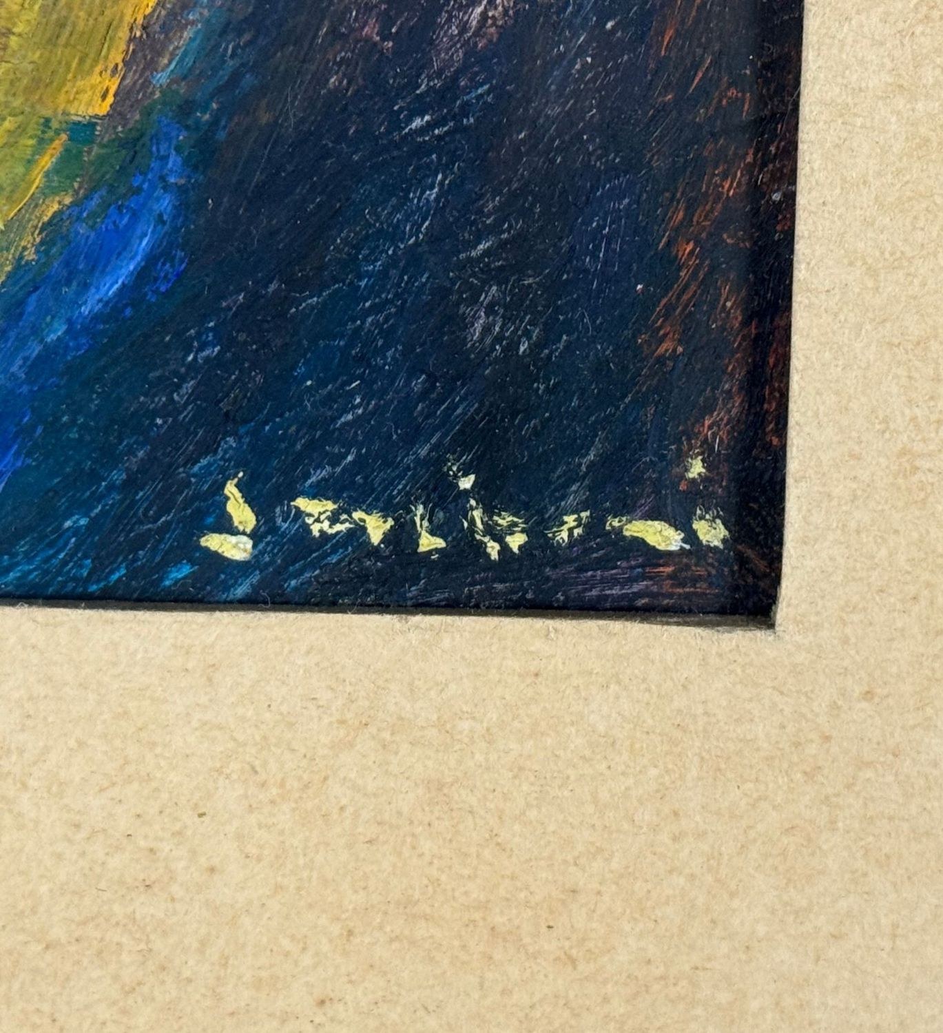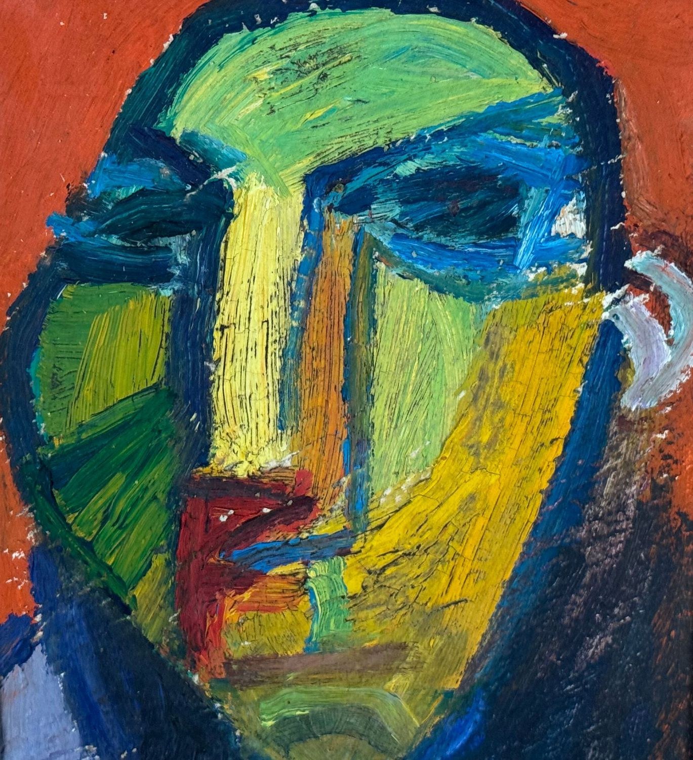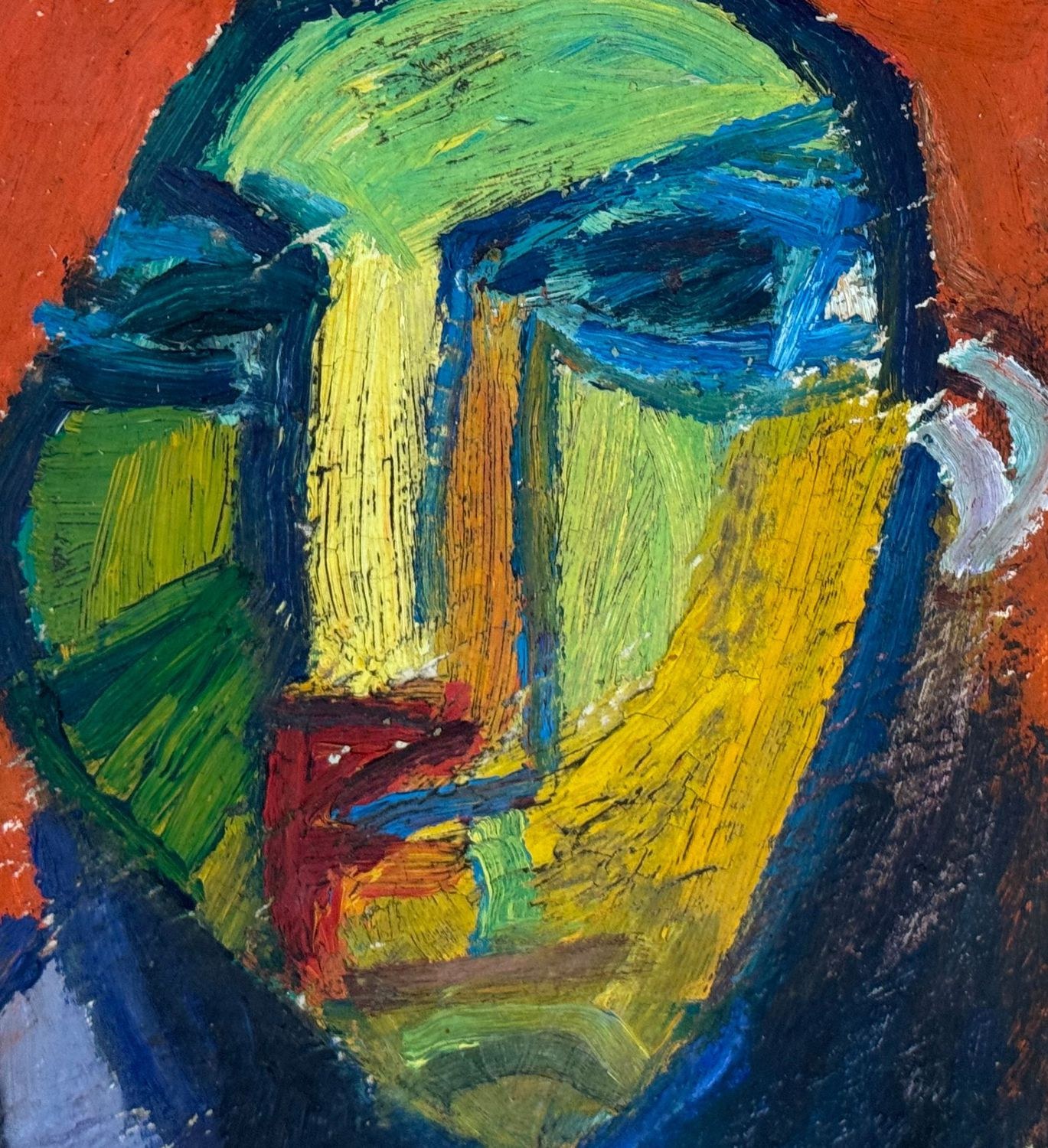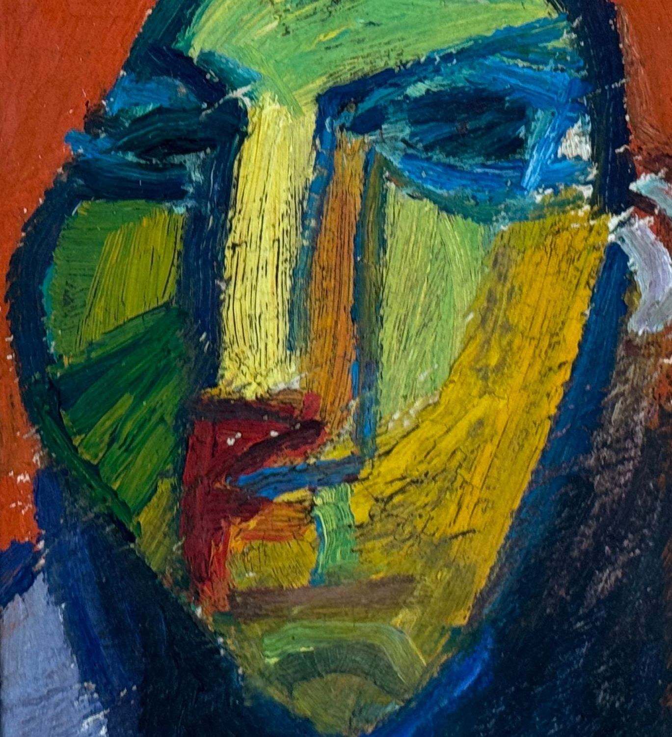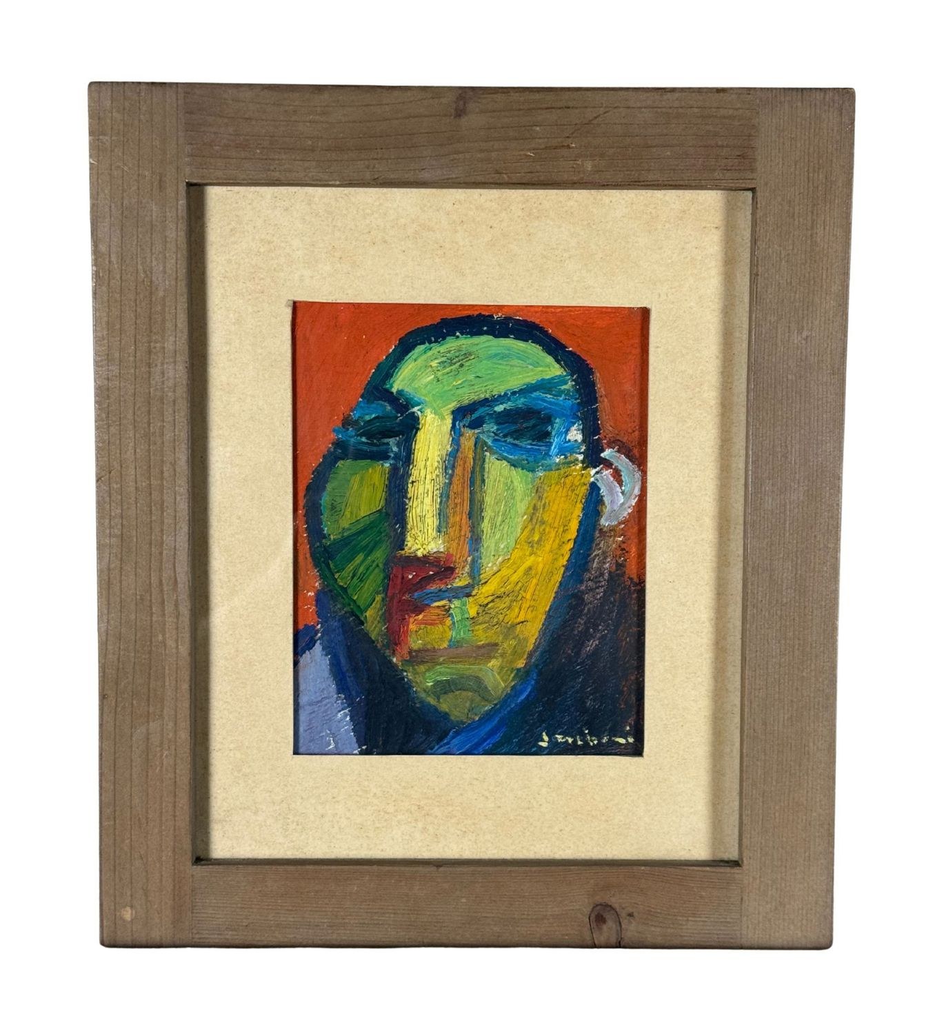 Oil painting on panel, 20th-century period, Italian school, depicting a male face. Dimensions including frame: 31x36 cm. Dimensions inside the frame: 16x20 cm. Signed at the lower right by an unidentified artist. Artwork in good condition.