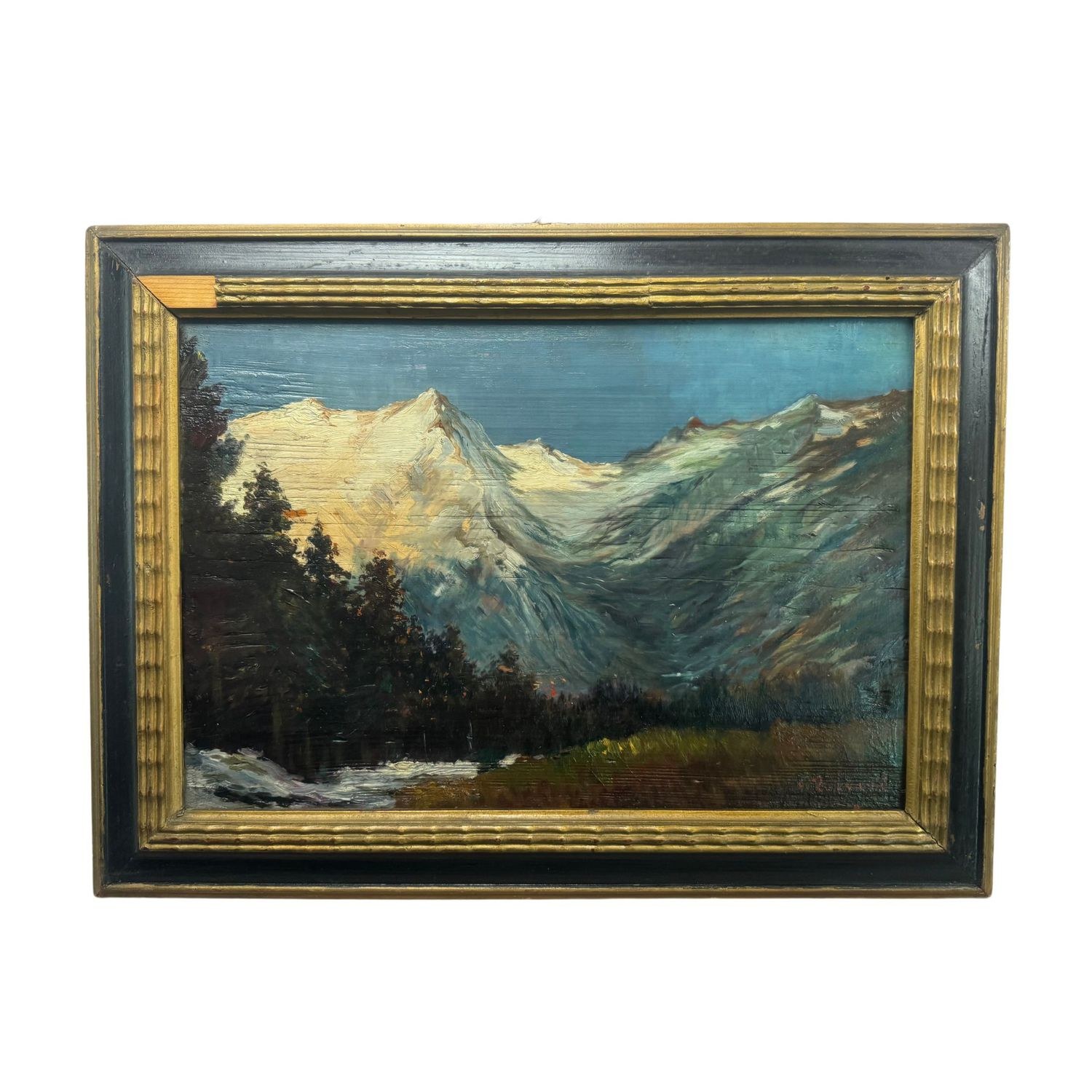 Oil painting on wood, 19th/20th-century period, European school, depicting Mountains.