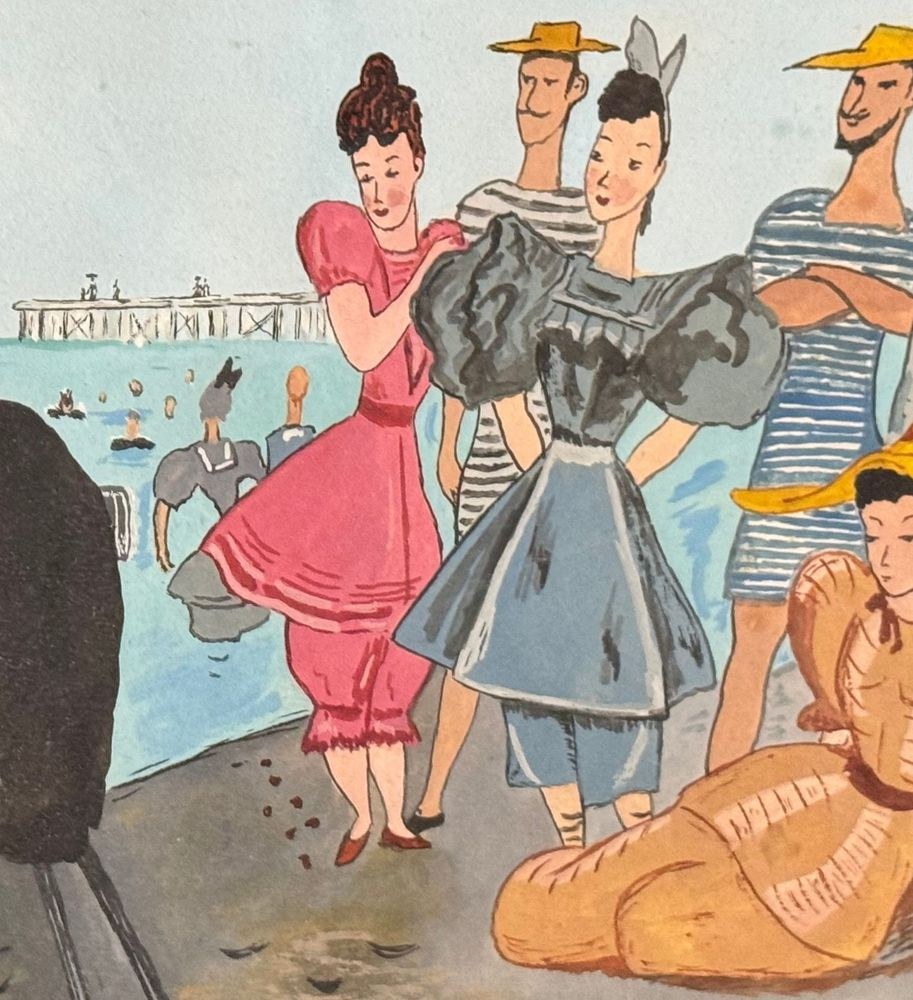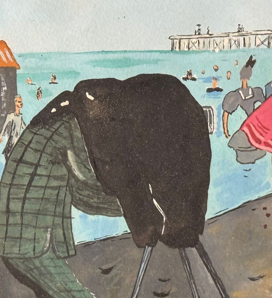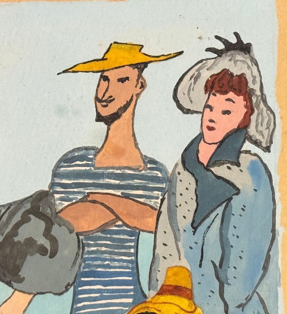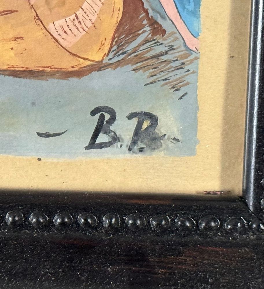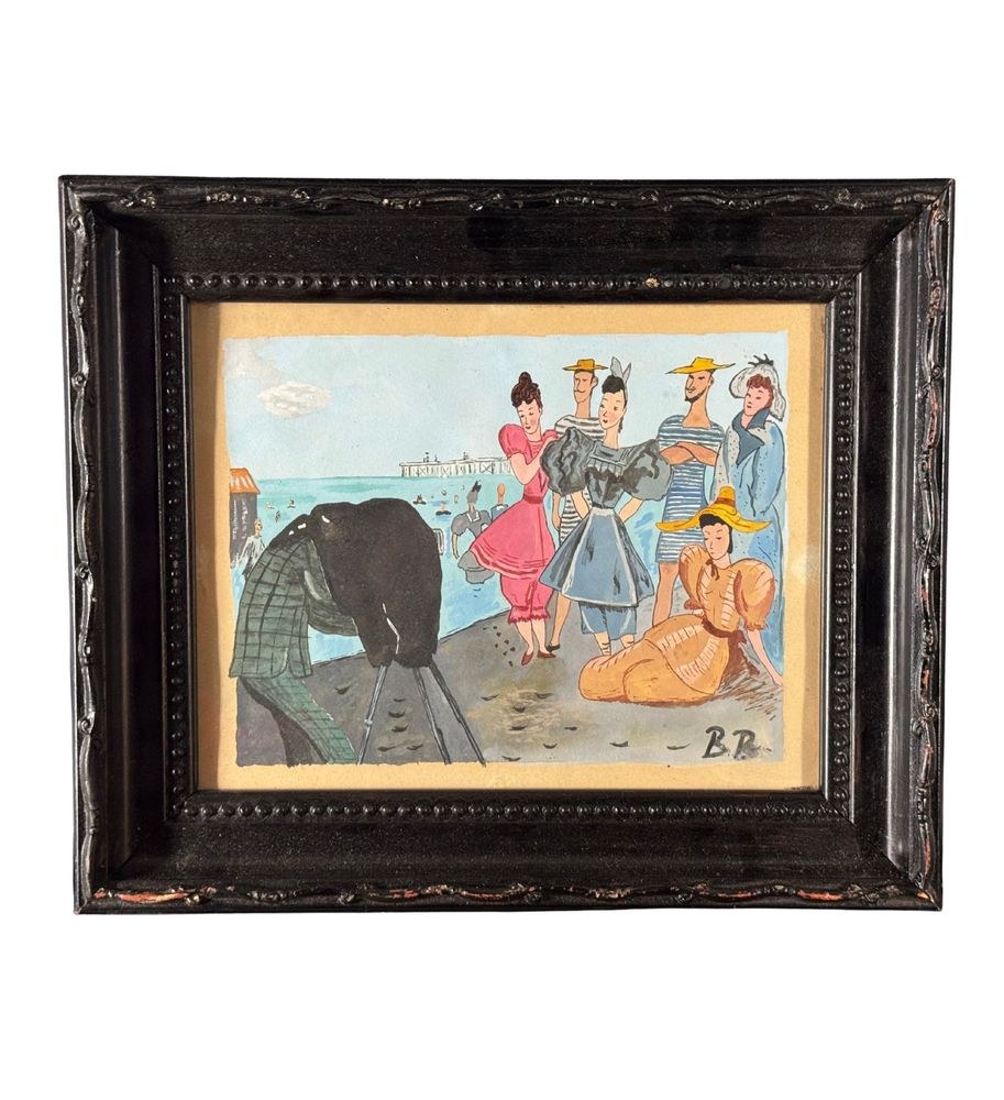 Acrylic painting on paper, early 20th century, depicting a photographic shot of a seascape. Dimensions including frame: 34x28 cm. Dimensions inside the frame: 22x18 cm. Initials in the lower right corner by an unidentified artist. The artwork is in good condition.