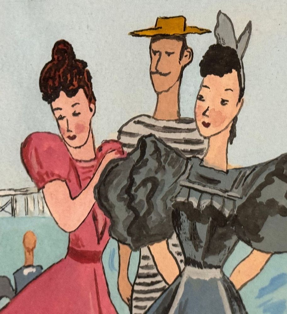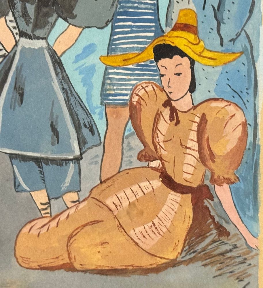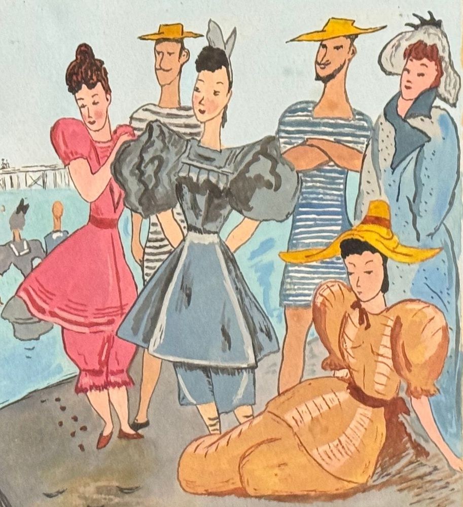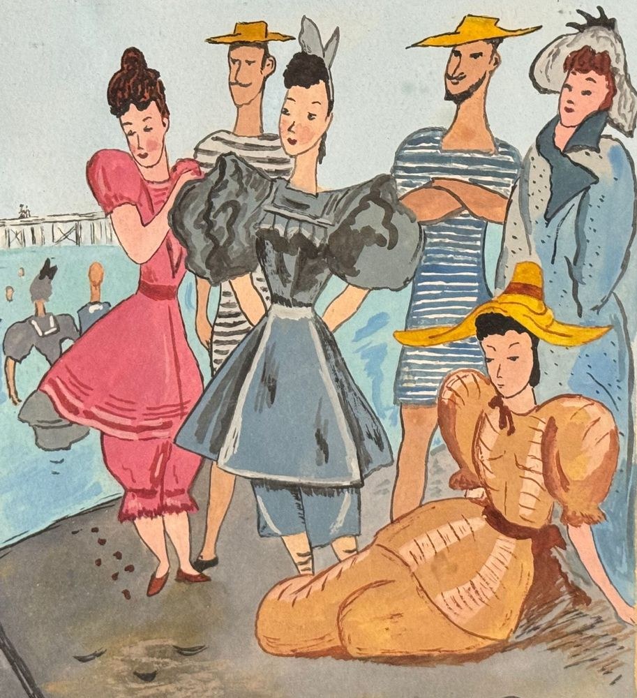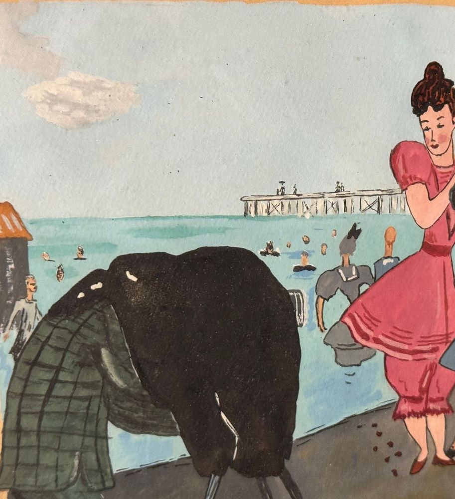 Acrylic painting on paper, early 20th century, depicting a photographic shot of a seascape. Dimensions including frame: 34x28 cm. Dimensions inside the frame: 22x18 cm. Initials in the lower right corner by an unidentified artist. The artwork is in good condition.