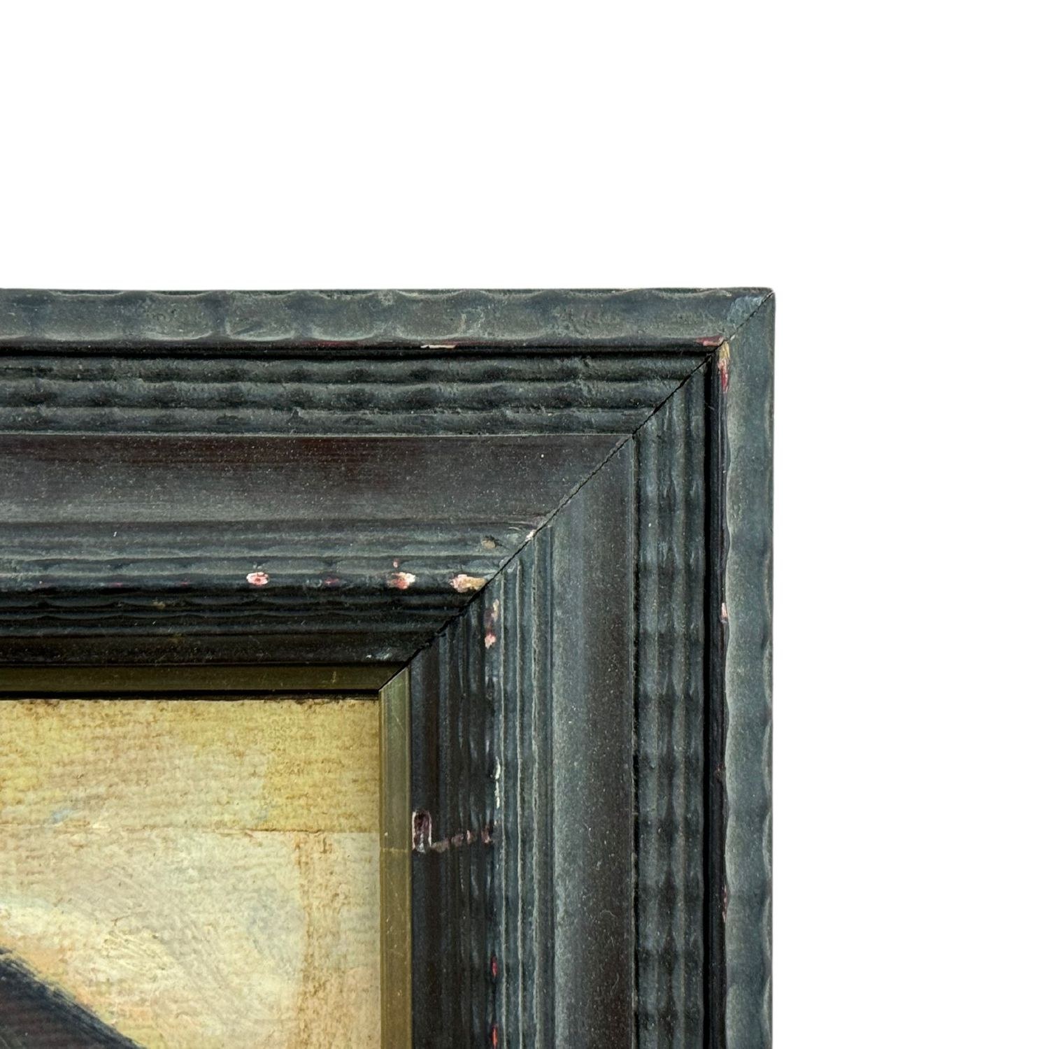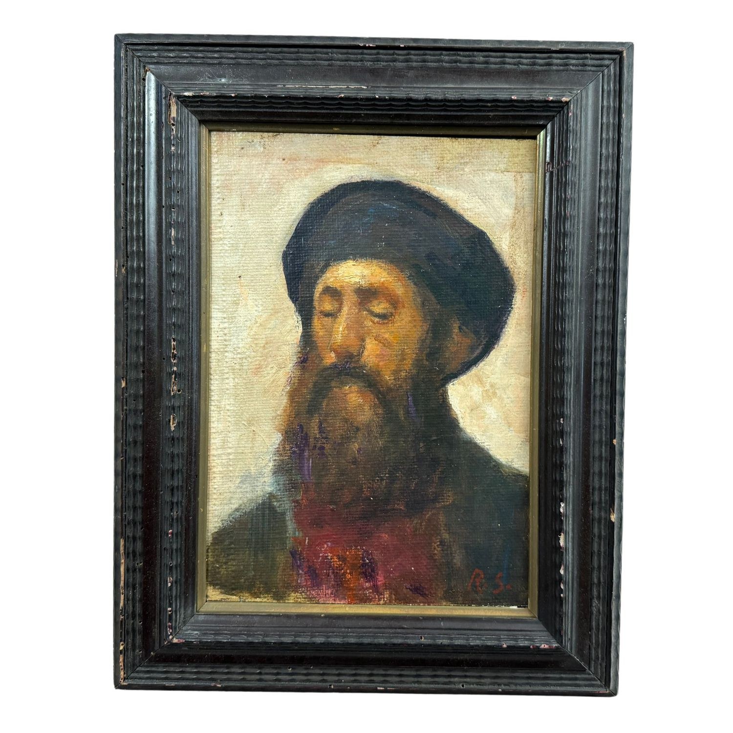 Oil painting on canvas applied to panel, 20th century Italian school, depicting Portrait of a man. Dimensions within frame: 30x21 cm. Signed initials at the bottom right.