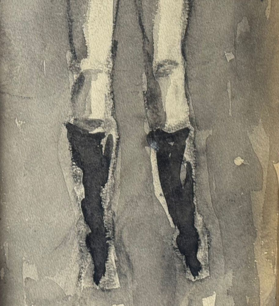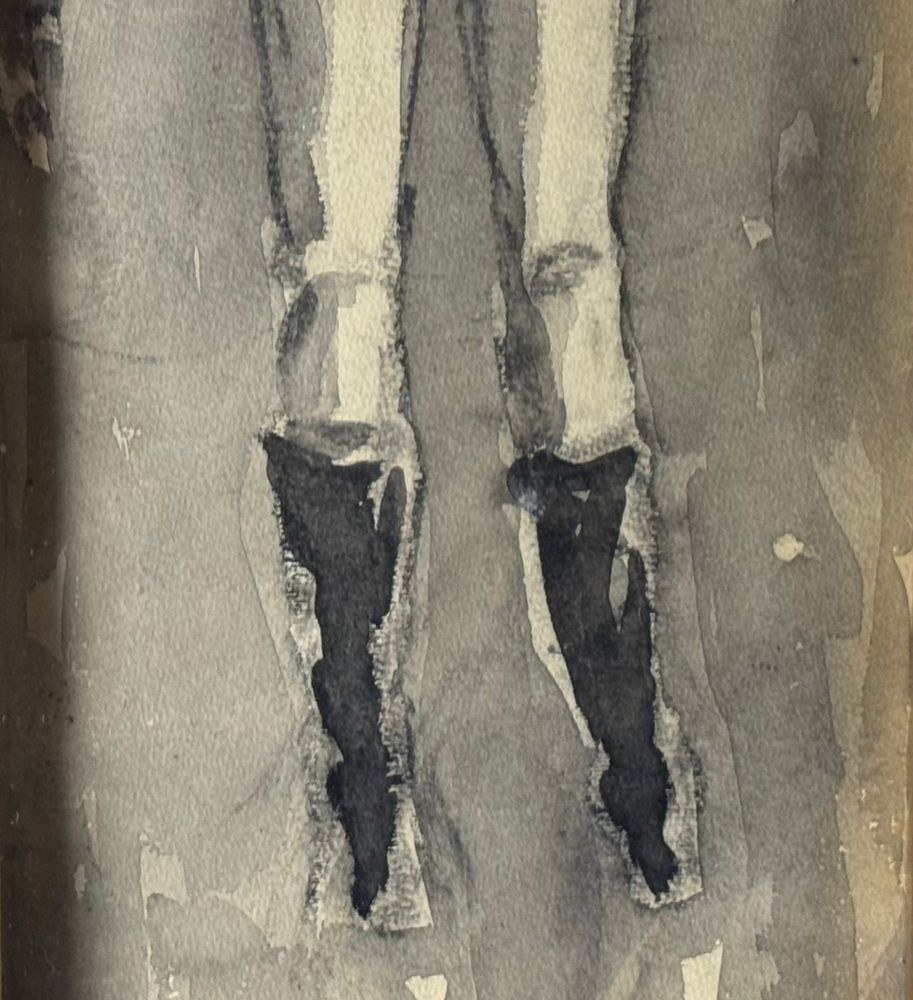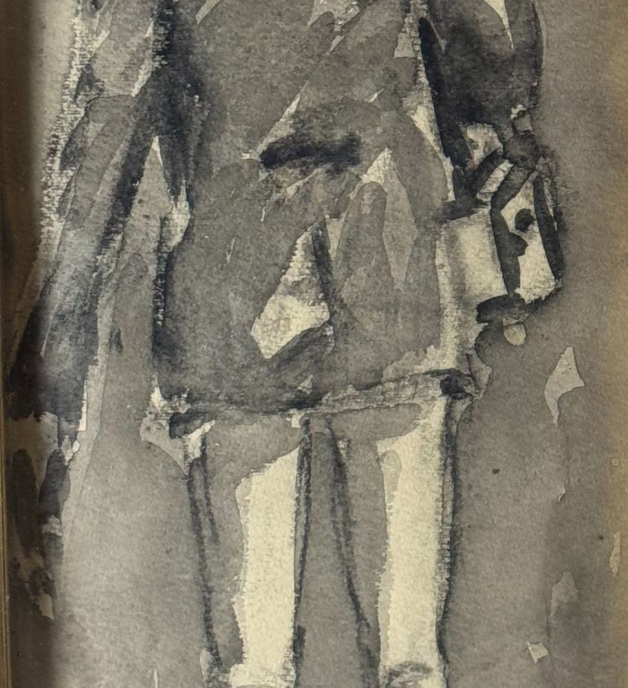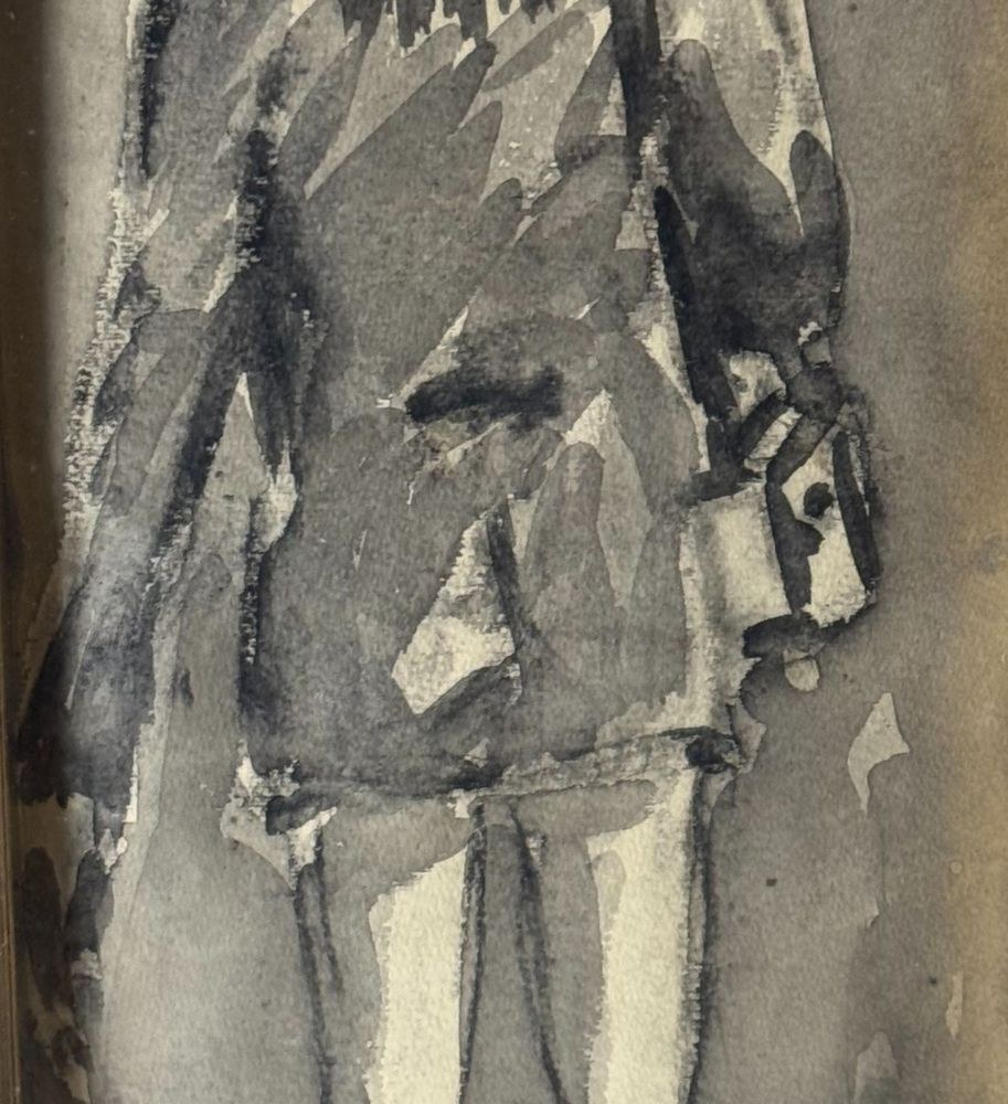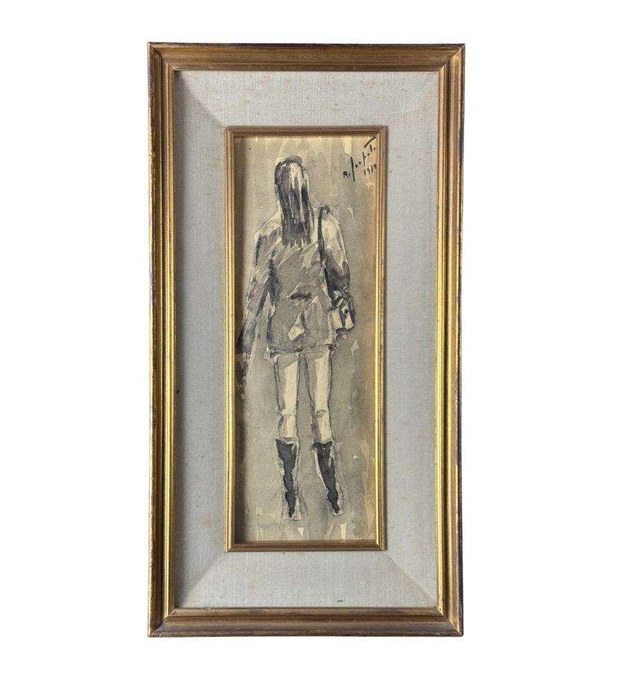 Watercolor painting on paper, 20th century period, Italian school, depicting a Portrait of a Woman from Behind. Dimensions including frame: 35x64 cm. Dimensions without frame: 18x48 cm. Signed in the upper right corner by an unidentified artist. The work is in good condition.