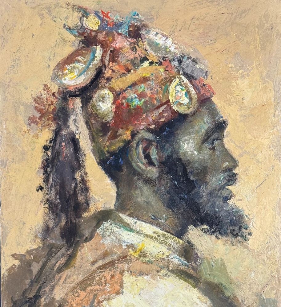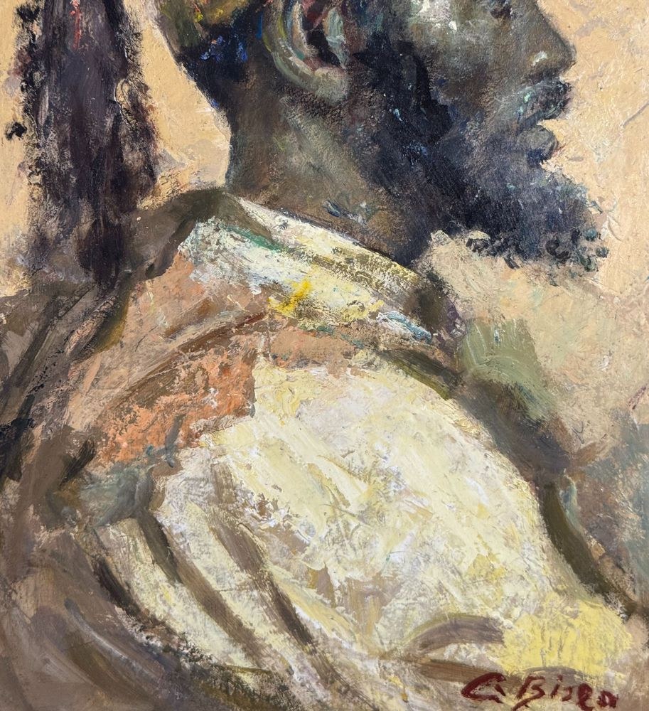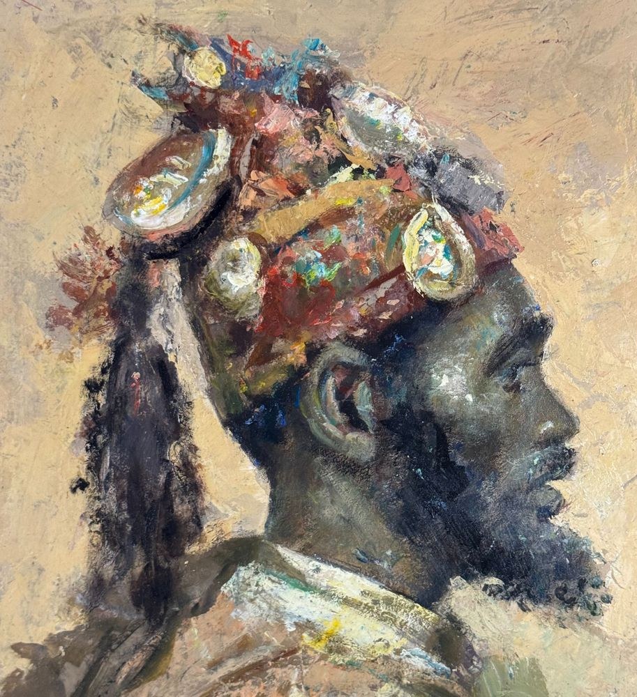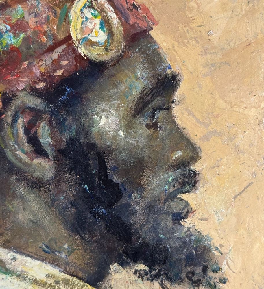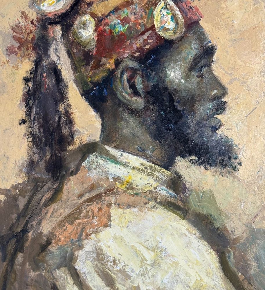 Oil painting on panel, 20th-century Italian school, depicting a portrait of an Arab man. Based on a work by Josep Tapiró Baró. Dimensions: 44.5 x 29 cm. Signed lower right. The work is in good condition.