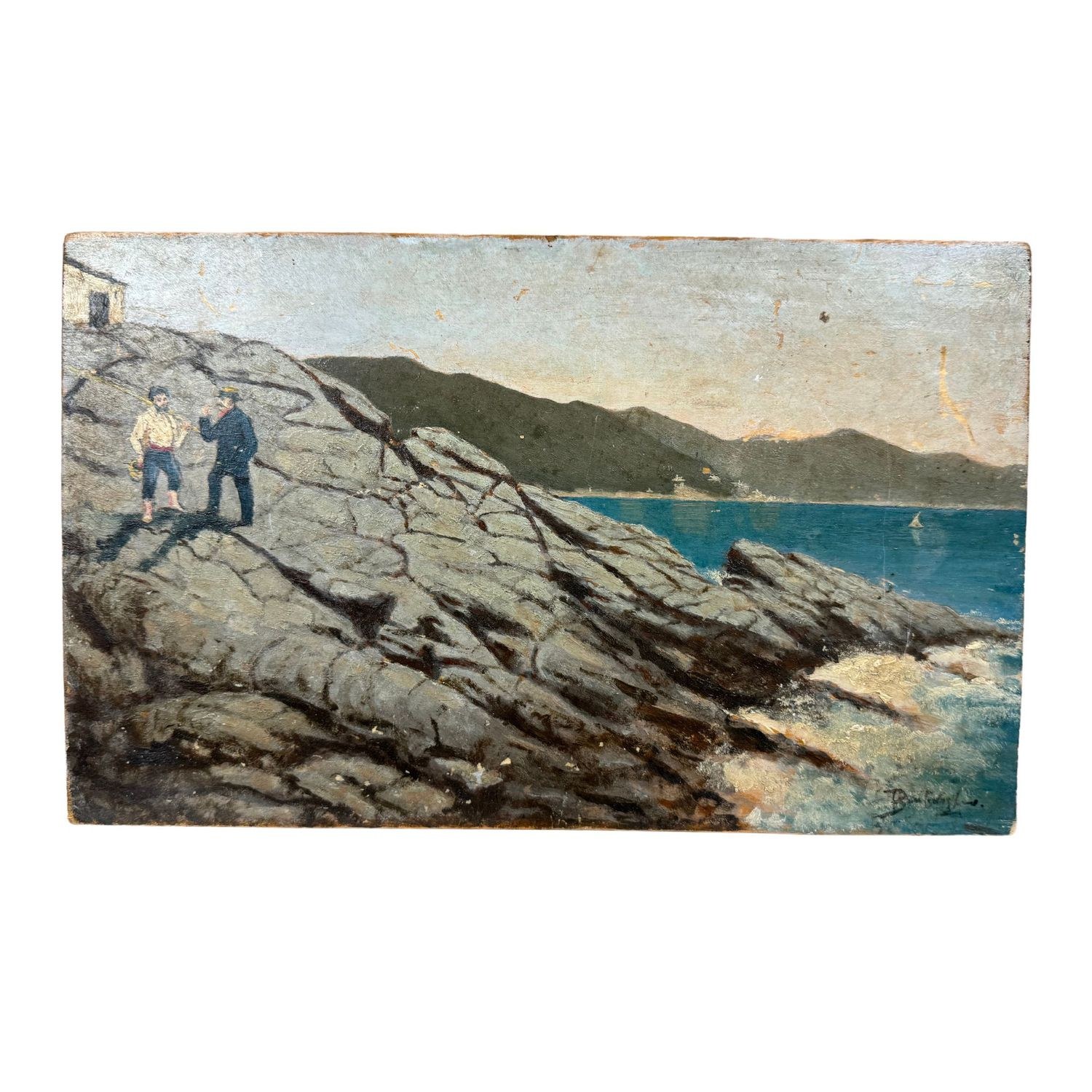 Oil painting on wood panel, 20th century period, Italian school, depicting a Seascape.