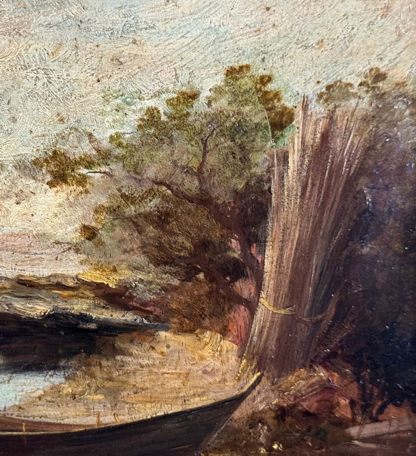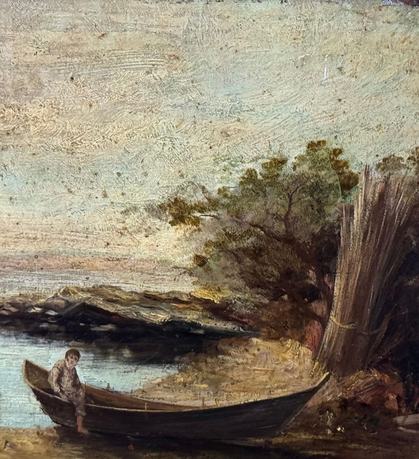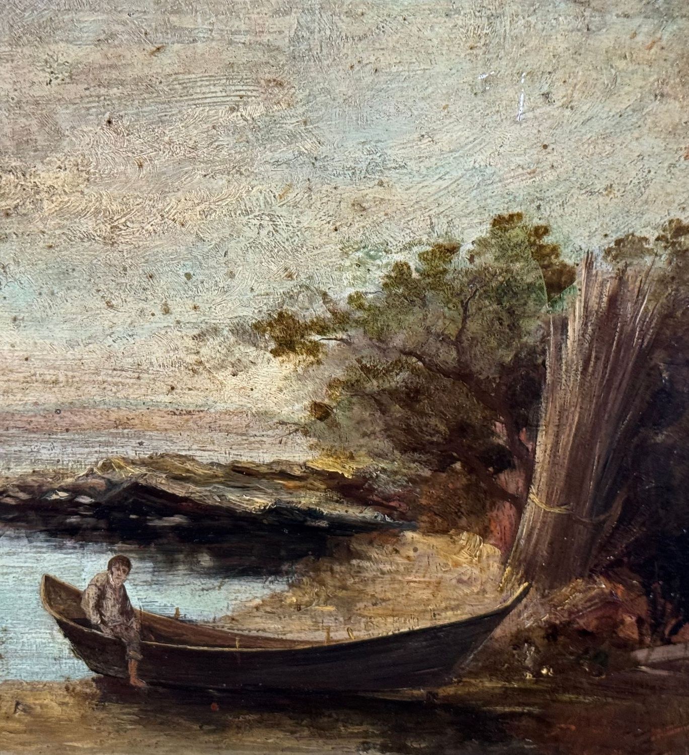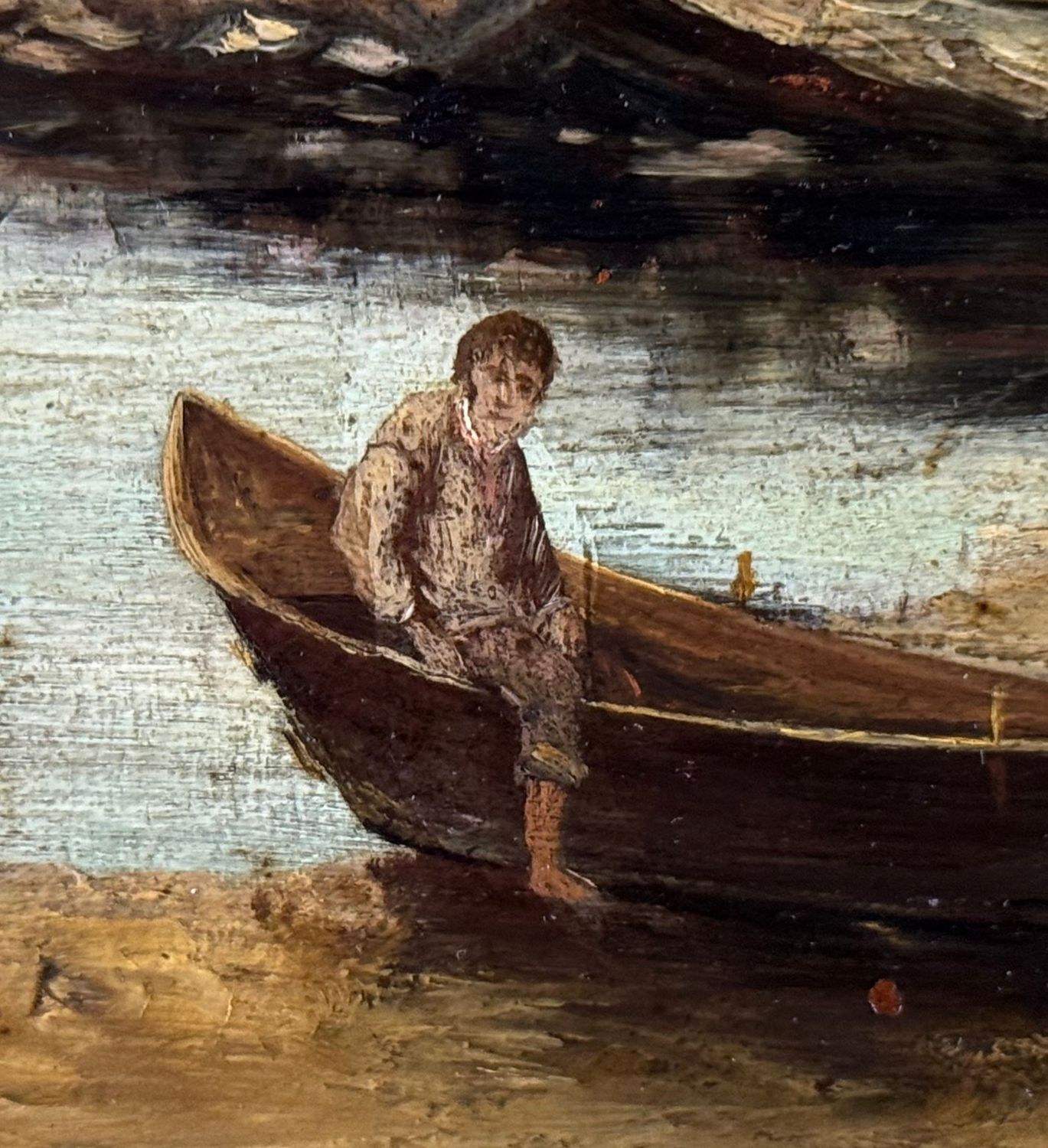 Oil on panel painting, 18th/19th century, Italian school, depicting a seascape. Dimensions including frame: 53 x 36 cm. Inner frame dimensions: 39 x 23 cm. Signed lower right by an unidentified artist. The artwork is in good condition, with slight signs of age as shown in the attached photos.