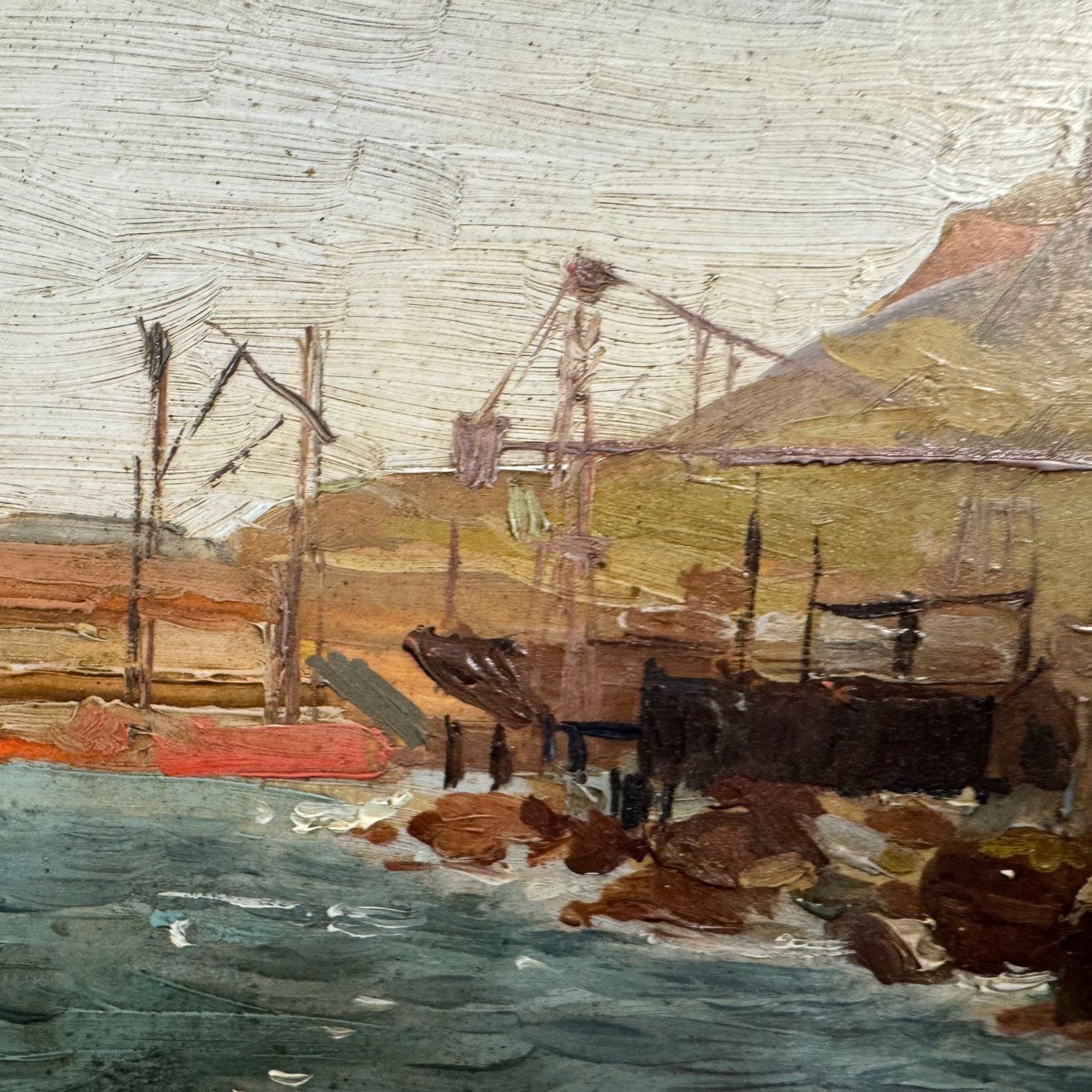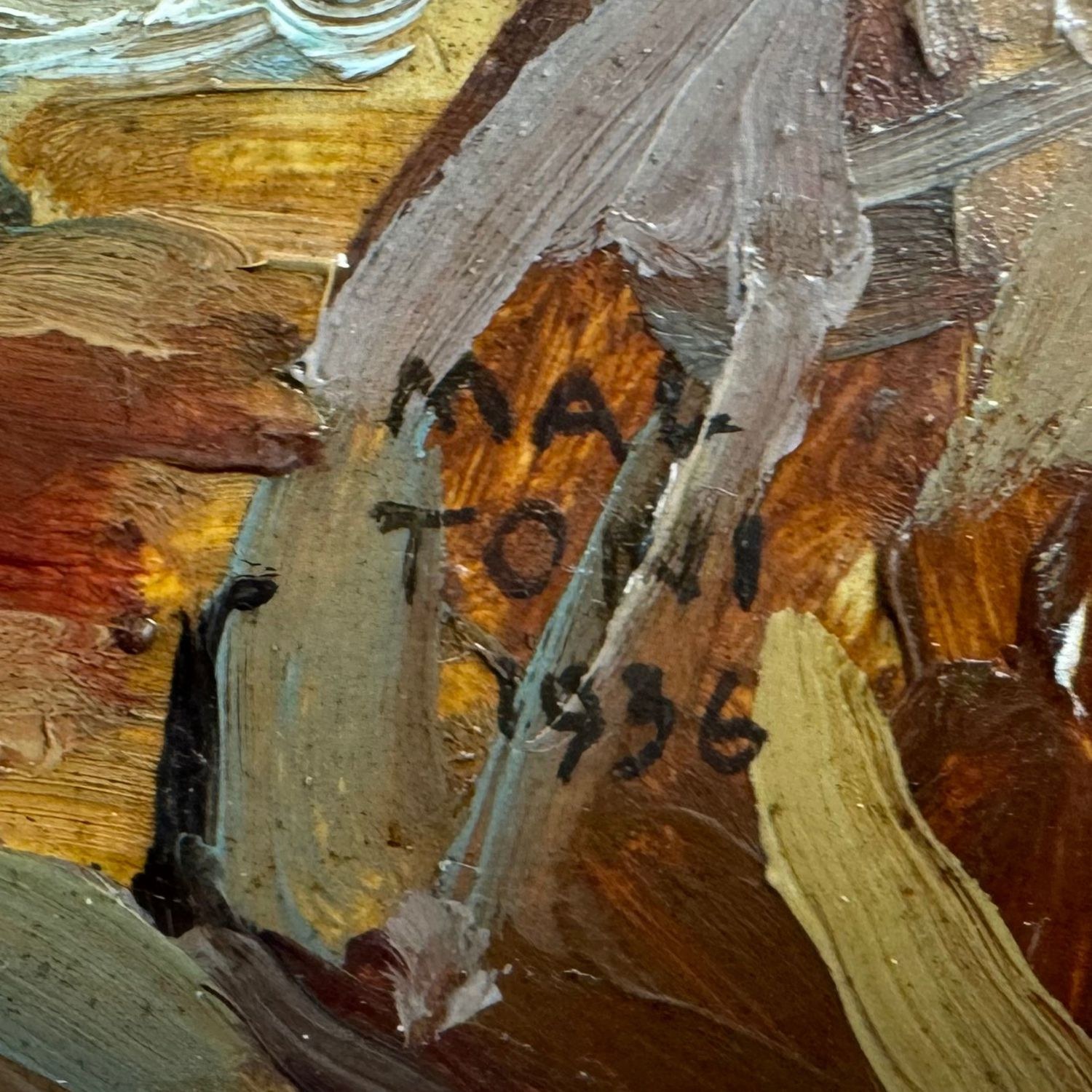 Oil painting on board, 20th century (1936), Italian school, depicting a stormy sea.