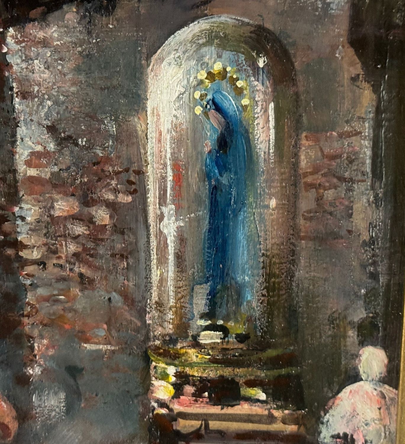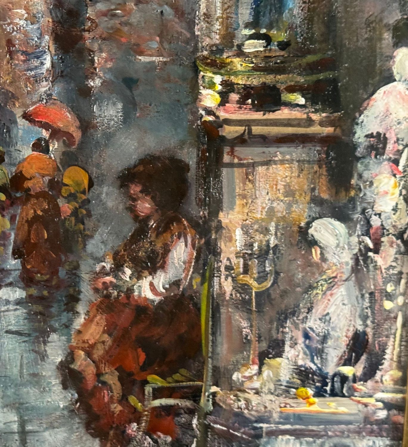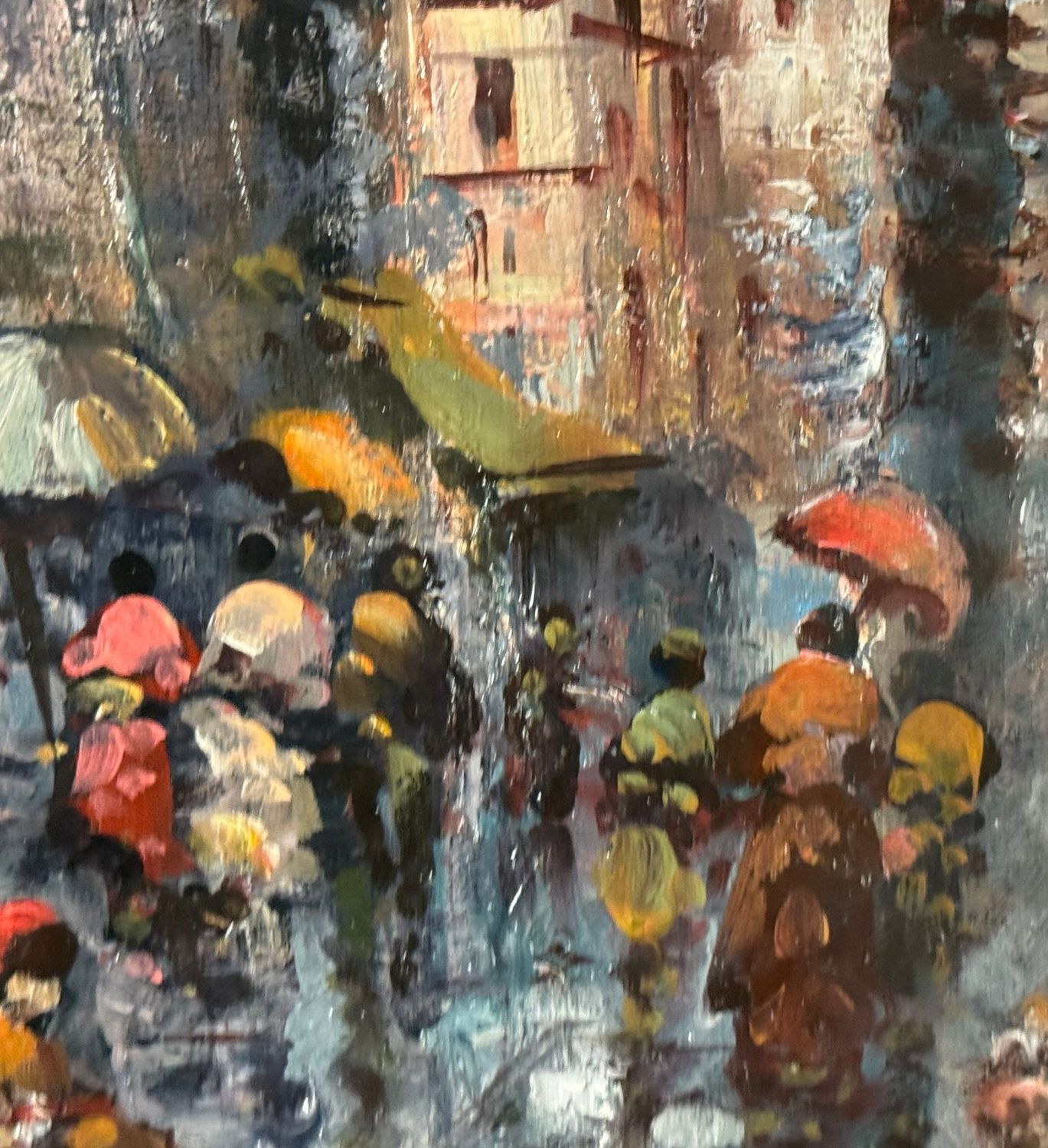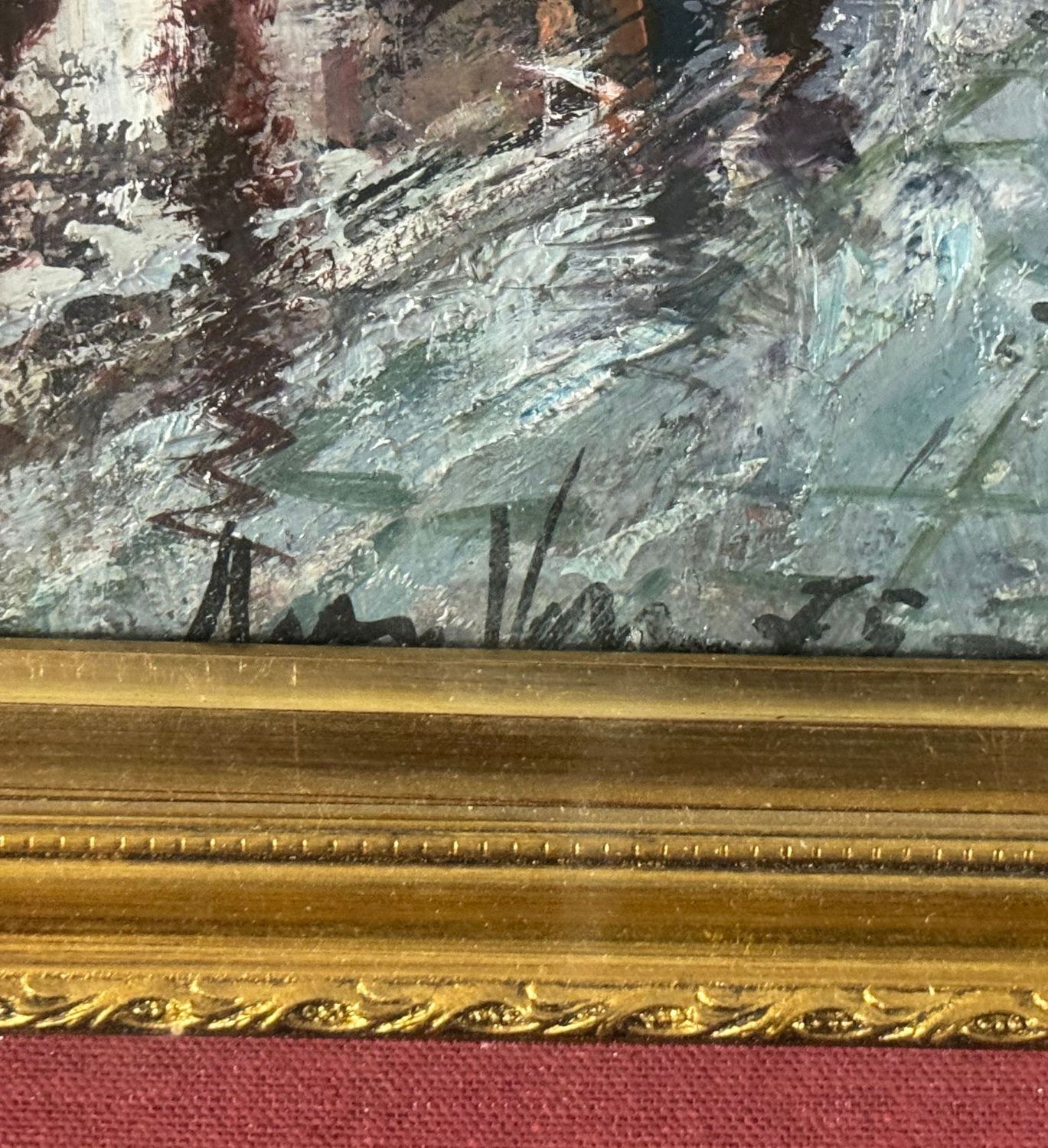 Oil on canvas painting, 20th century, Italian school, depicting a Street in San Gregorio Armeno. Dimensions including frame: 61 × 71 cm. Dimensions inside the frame: 38 × 48 cm. Signed and dated (1975) lower left by an unidentified artist. Authenticity label on the reverse. Work in good condition.