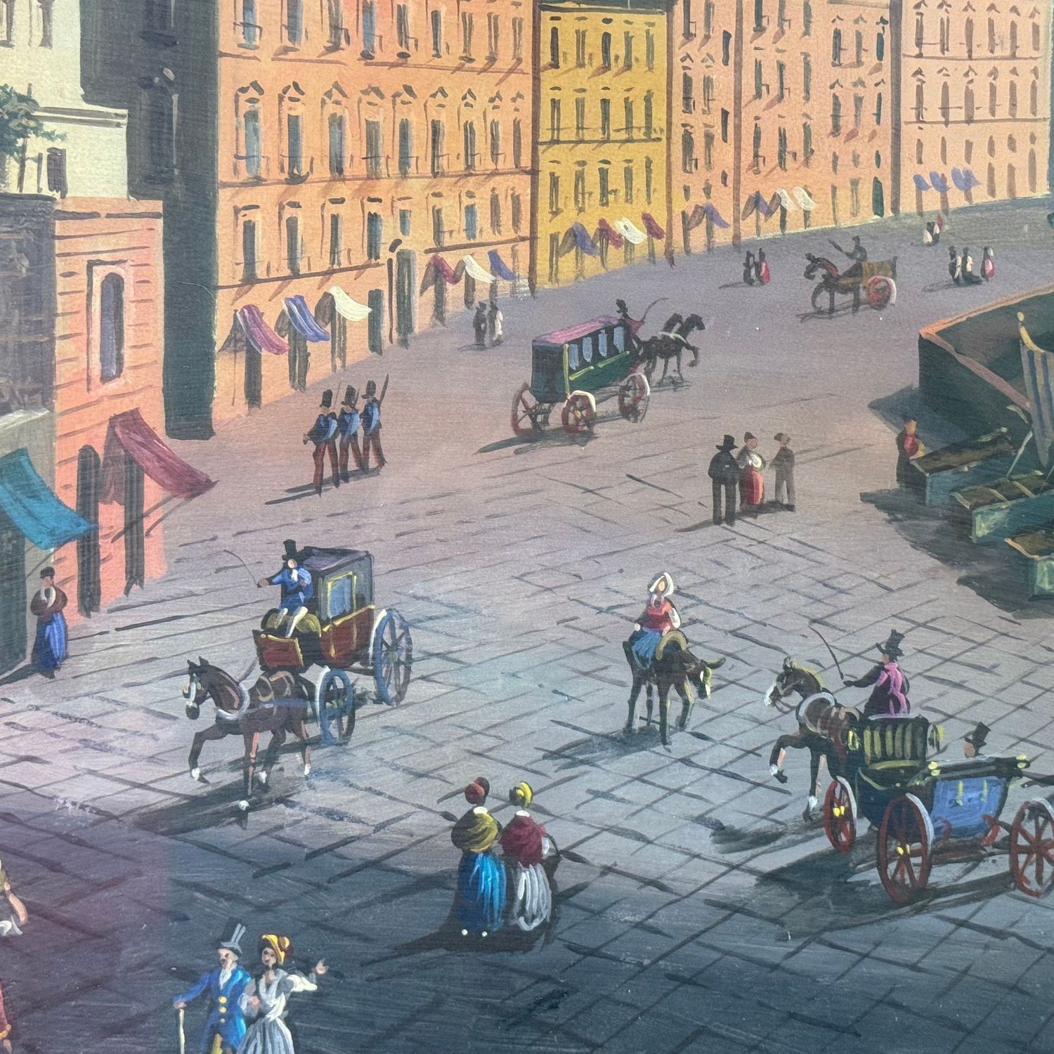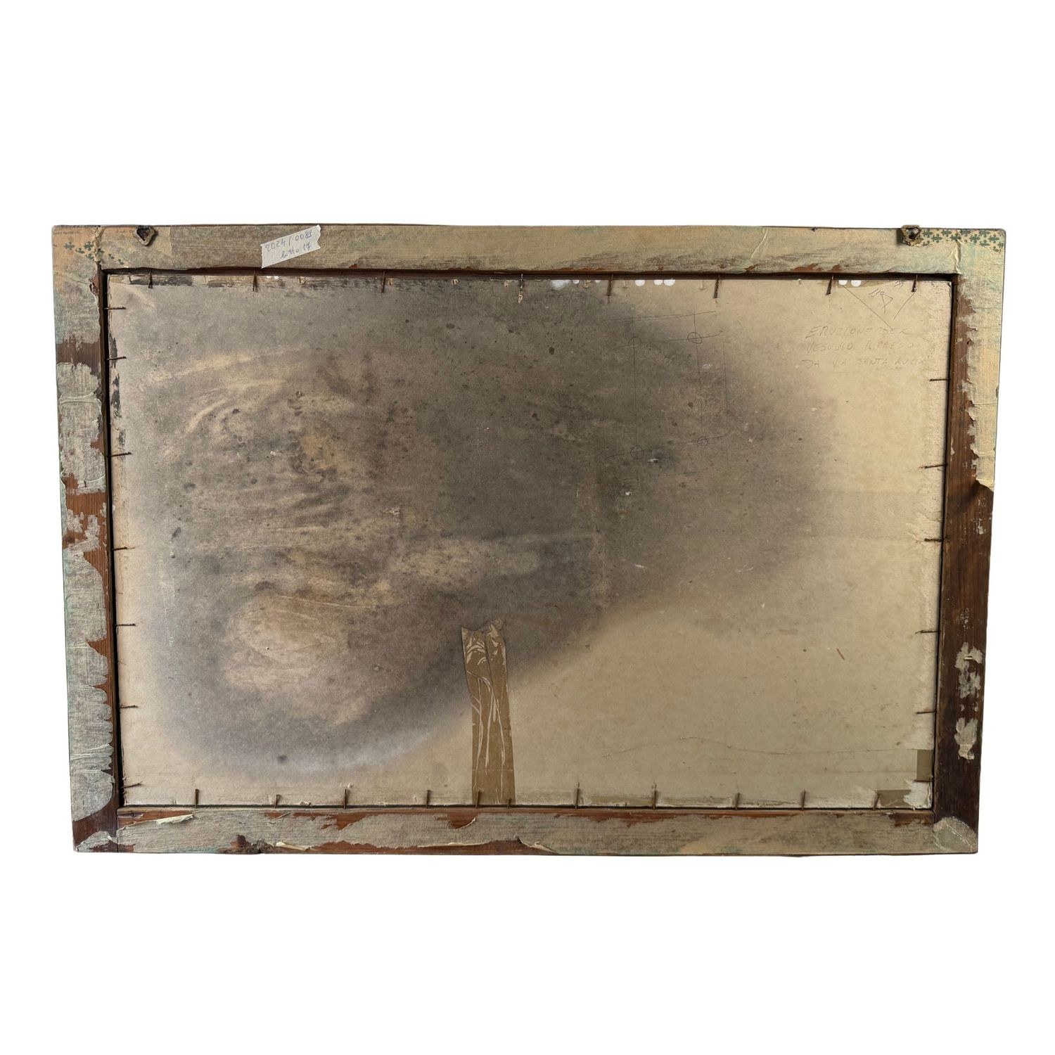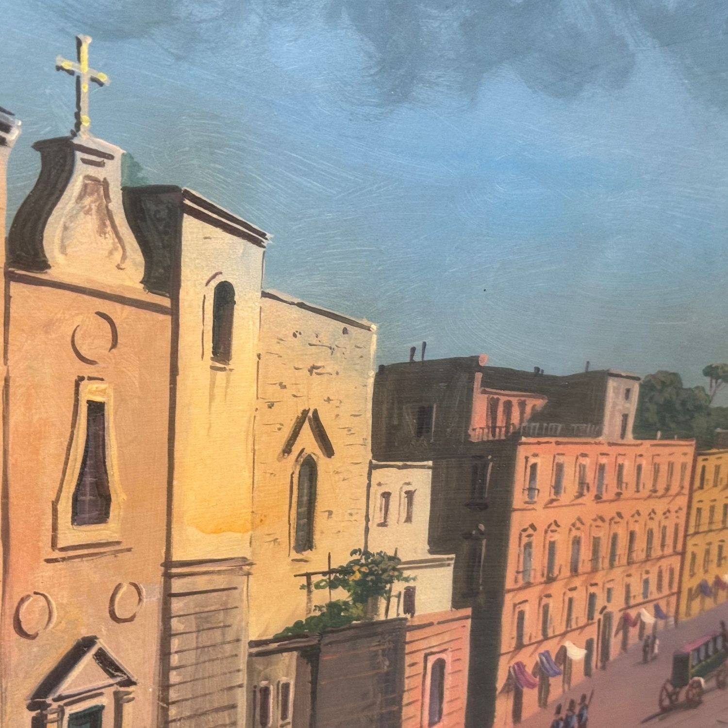 Gouache painting (tempera on cardboard), early 20th century, Italian school, depicting the eruption of Mount Vesuvius as seen from Santa Lucia.