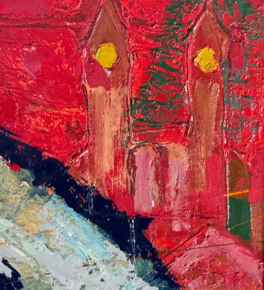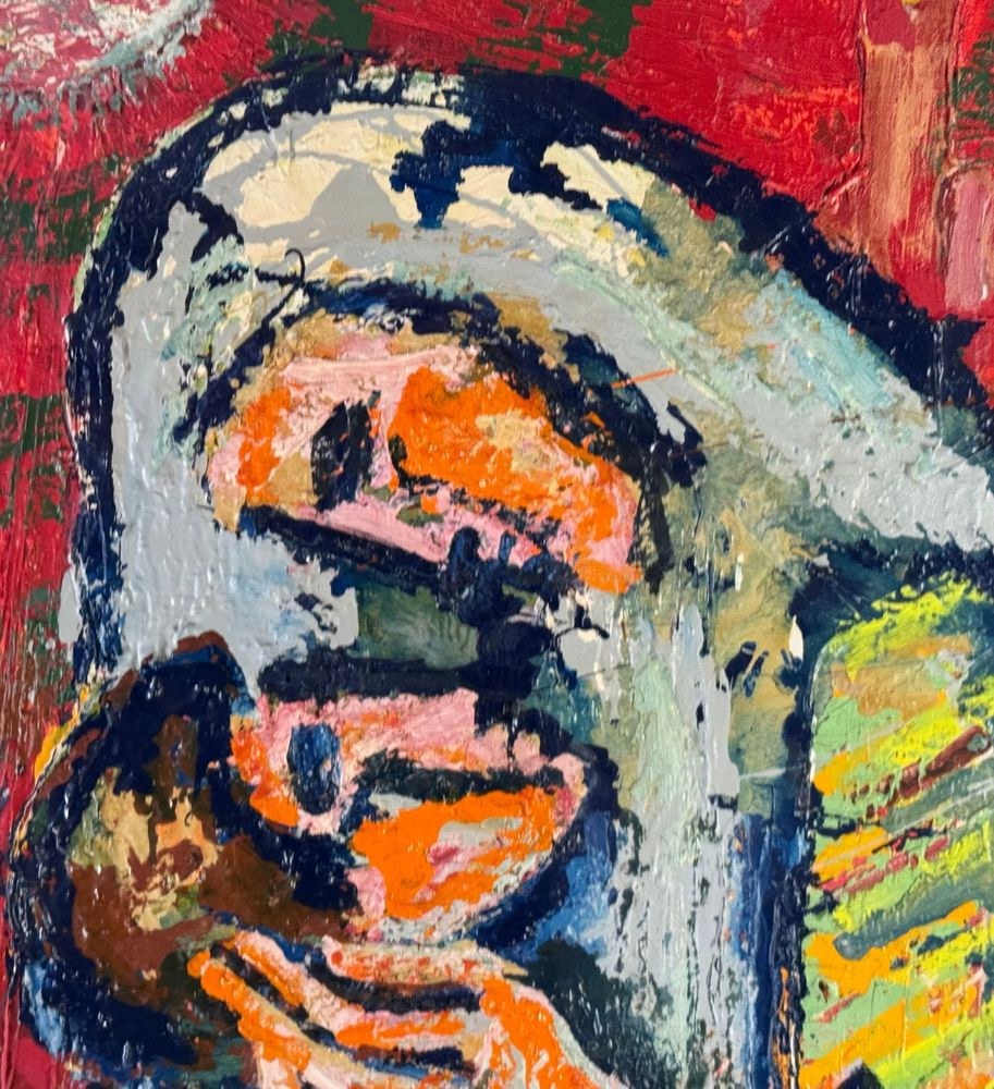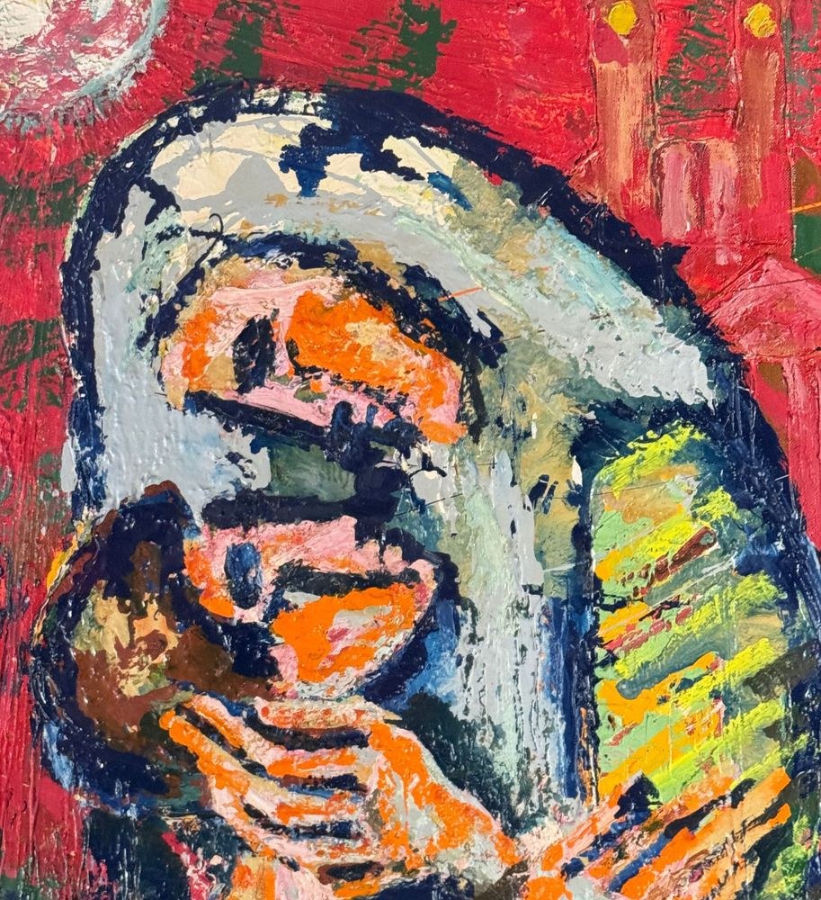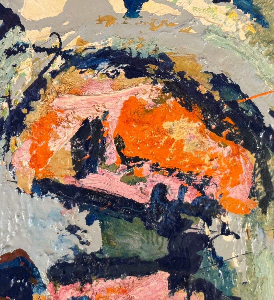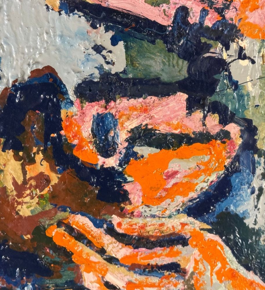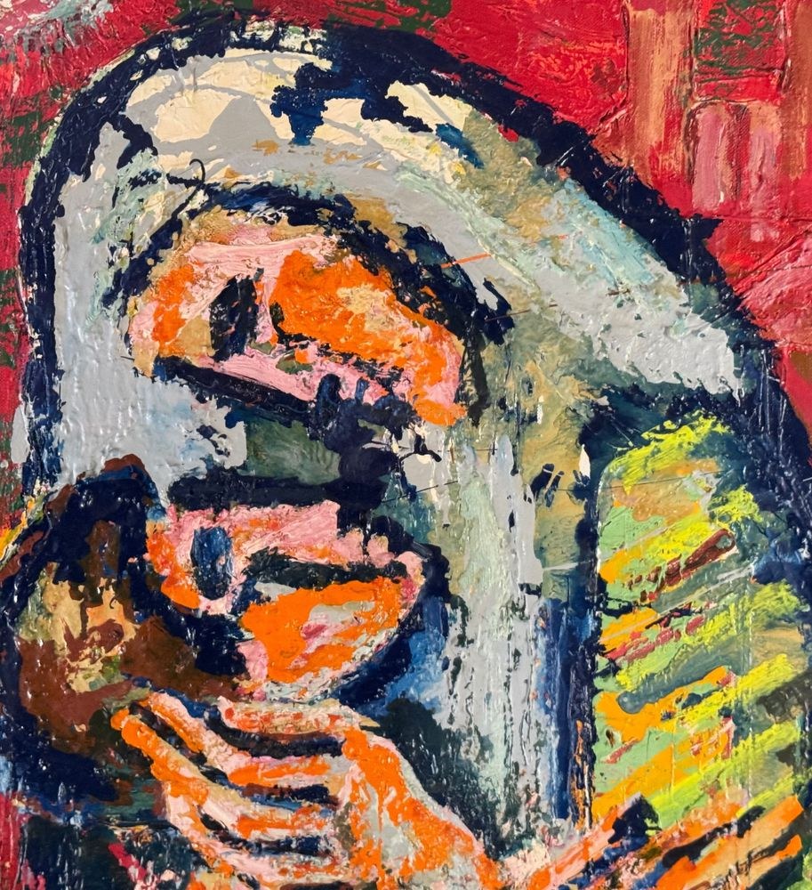 Oil painting on canvas, 20th century period, Italian school depicting Two figures. Dimensions including frame: 97x78 cm. Internal frame dimensions: 70x50 cm. Signed on the back by an unidentified artist. Work in good condition. Frame needs restoration.