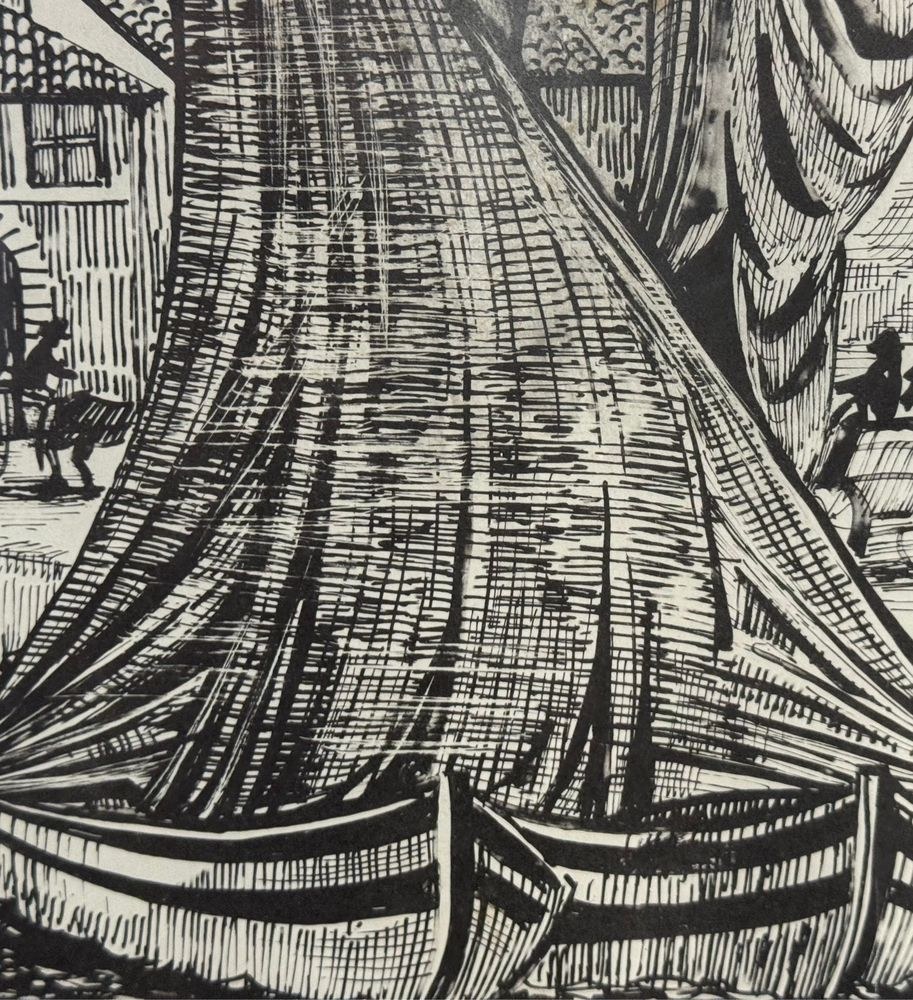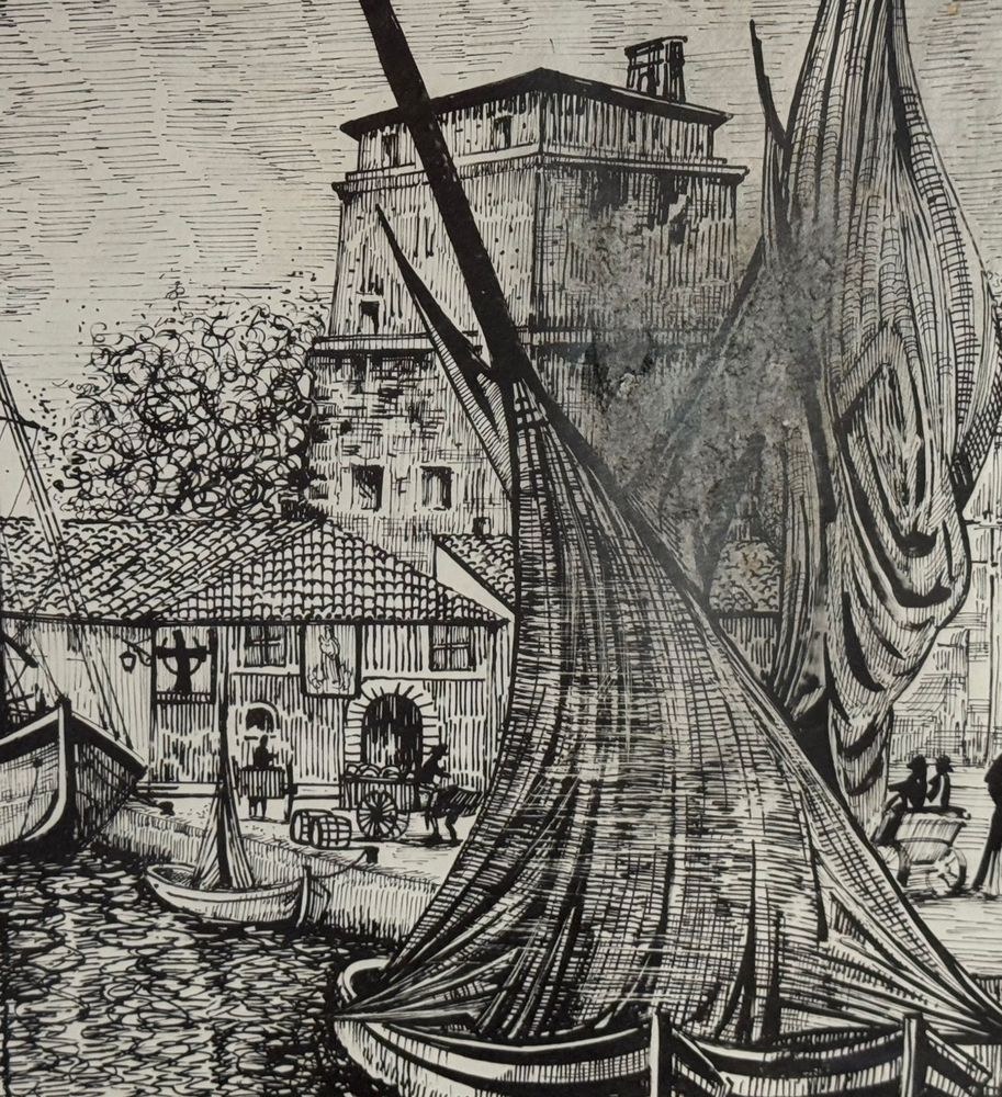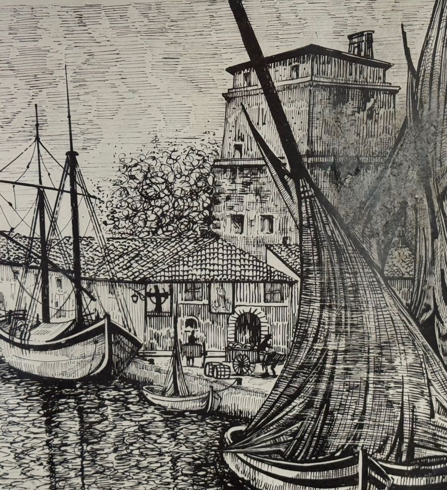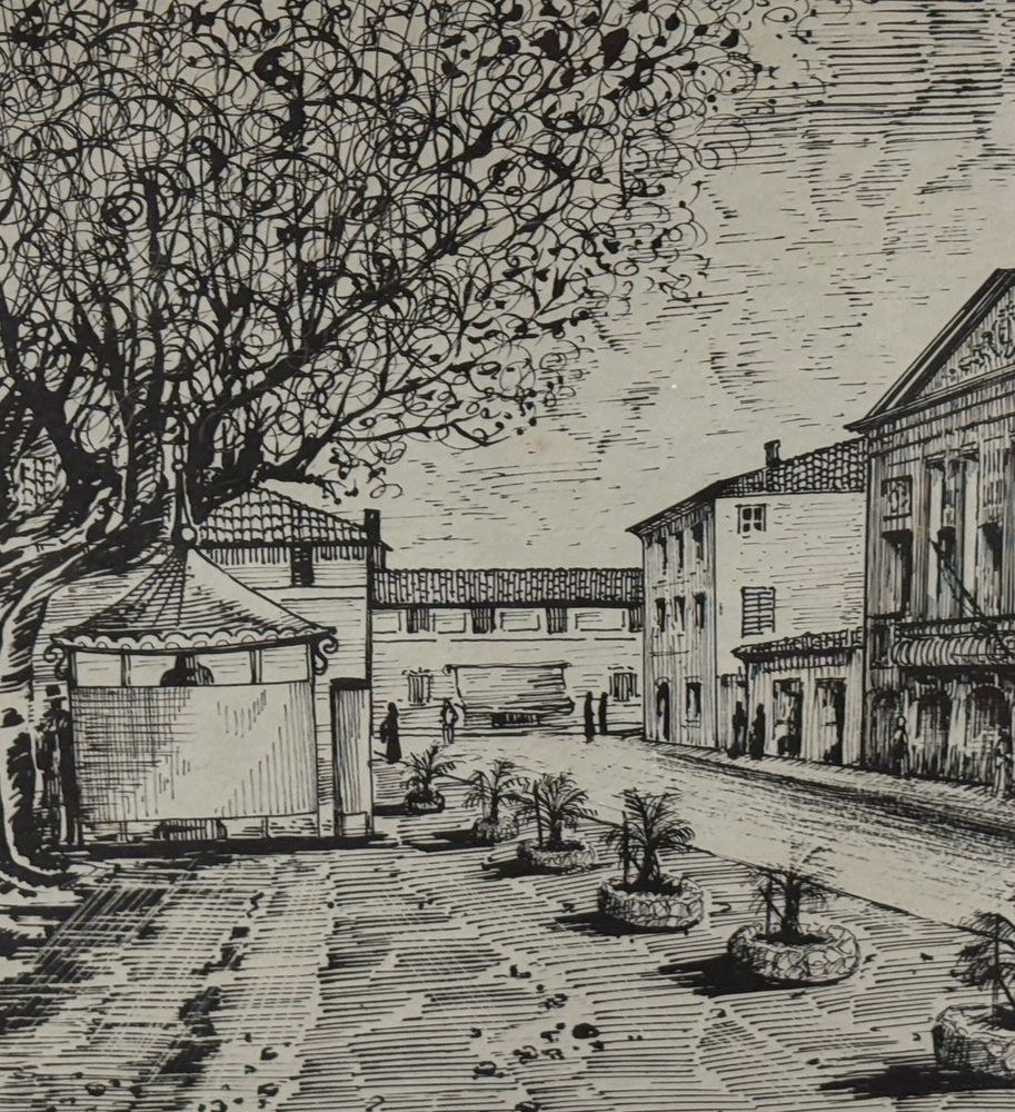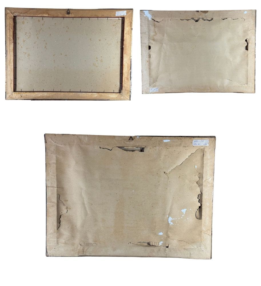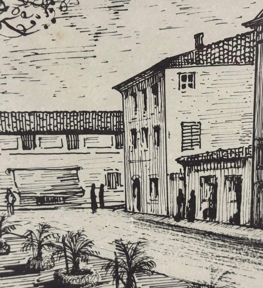 Lot of three engravings on paper, 20th century, Italian school, depicting Viareggio. Each measures including frame: 73x54 cm. Dimensions inside each frame: 42x62 cm. Signed at the lower left by an unidentified artist. Works in good condition with slight signs of wear as shown in the attached photos.