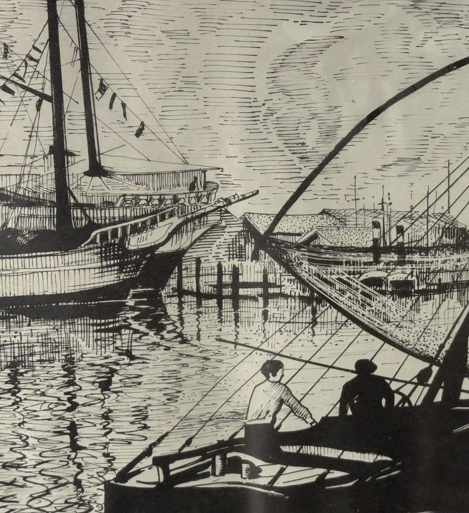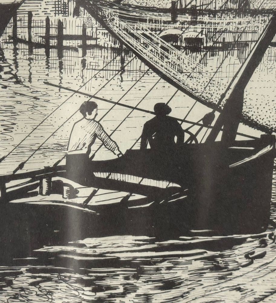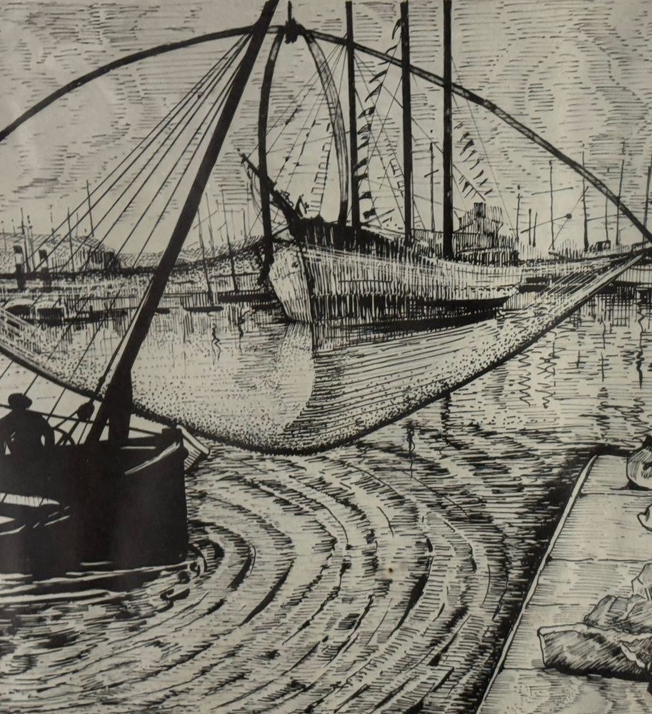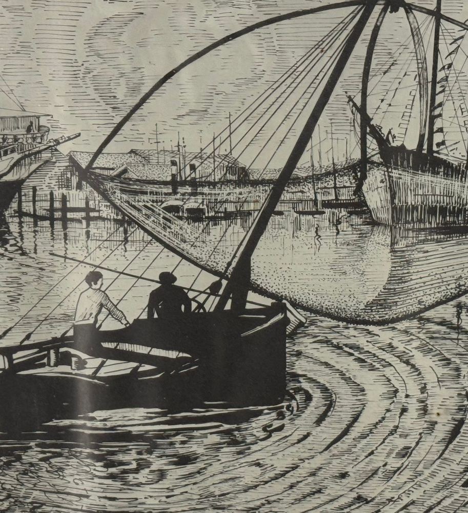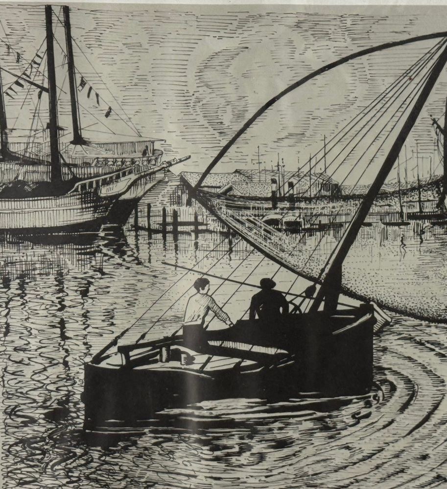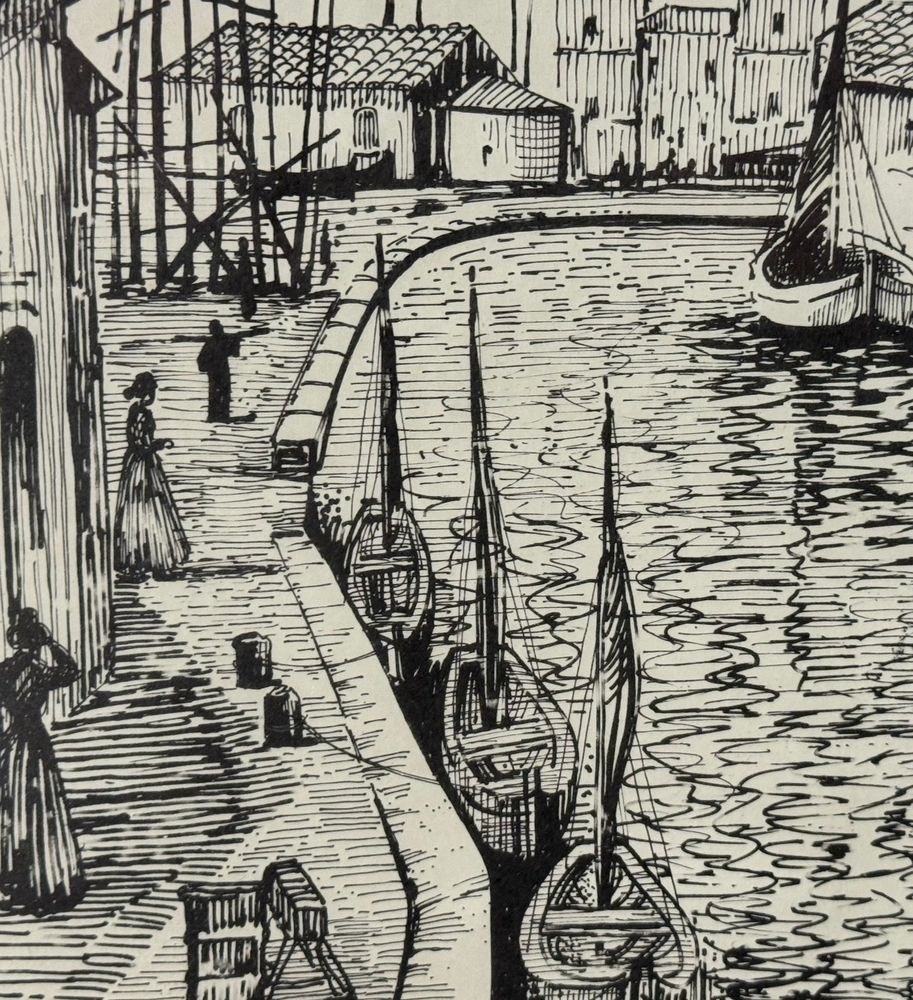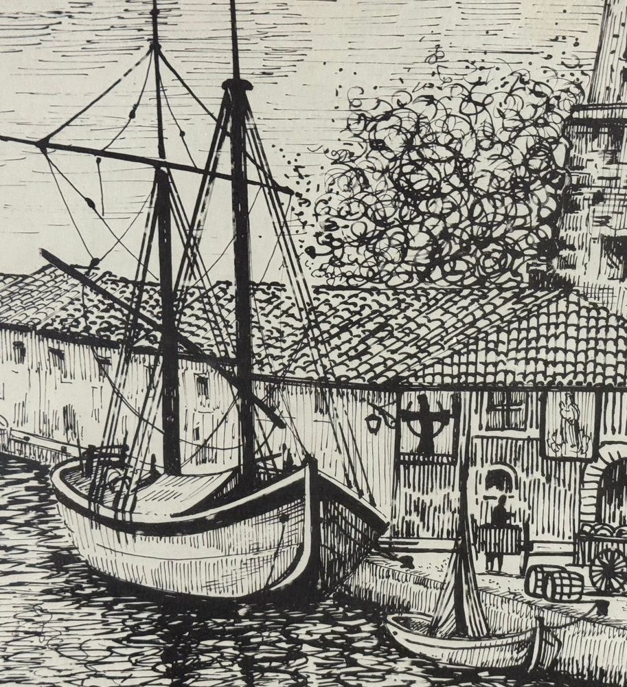 Lot of three engravings on paper, 20th century, Italian school, depicting Viareggio. Each measures including frame: 73x54 cm. Dimensions inside each frame: 42x62 cm. Signed at the lower left by an unidentified artist. Works in good condition with slight signs of wear as shown in the attached photos.