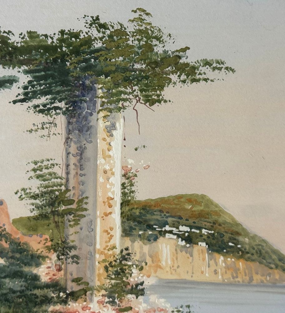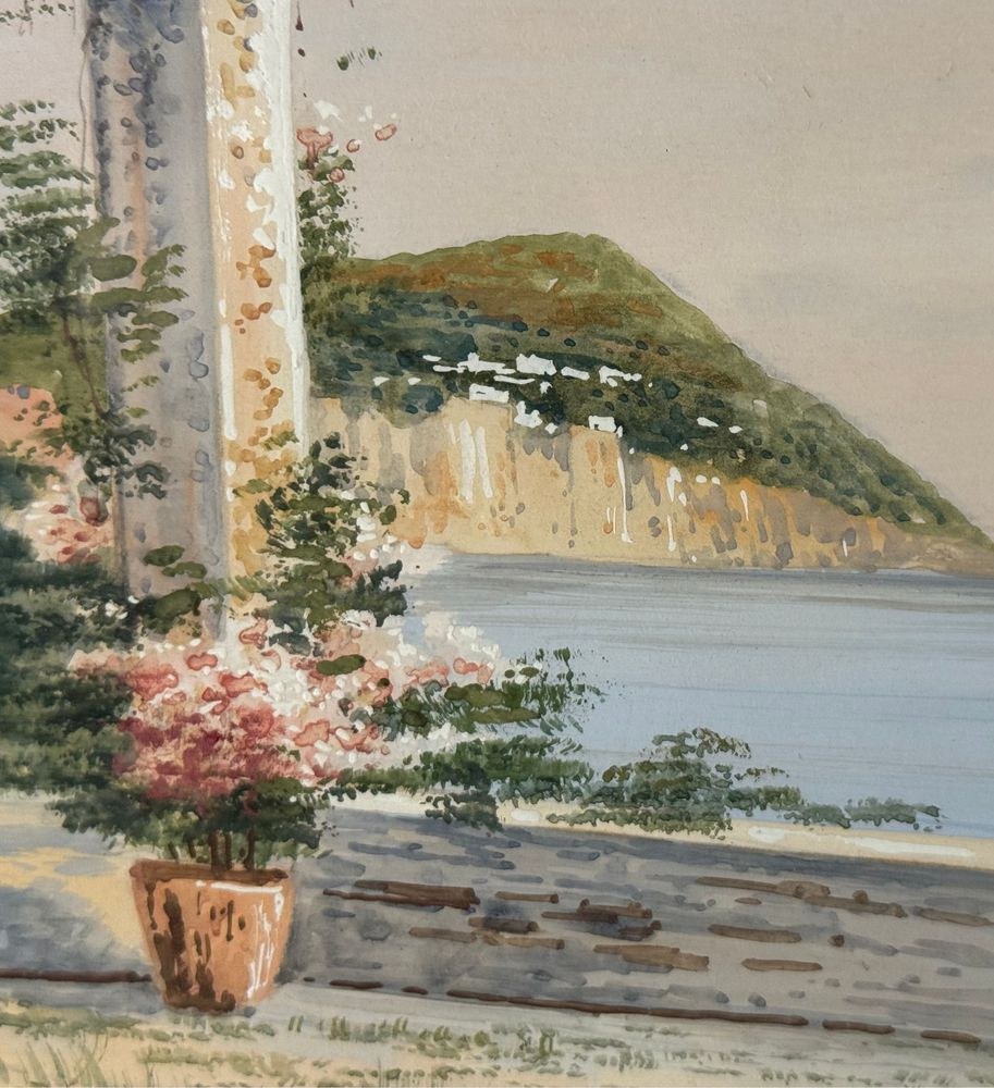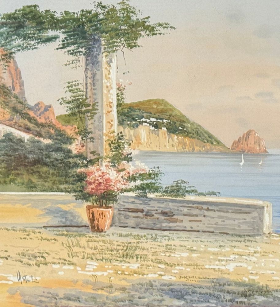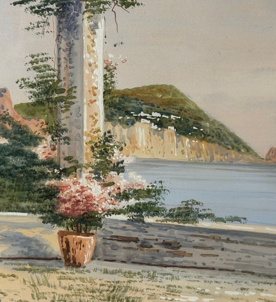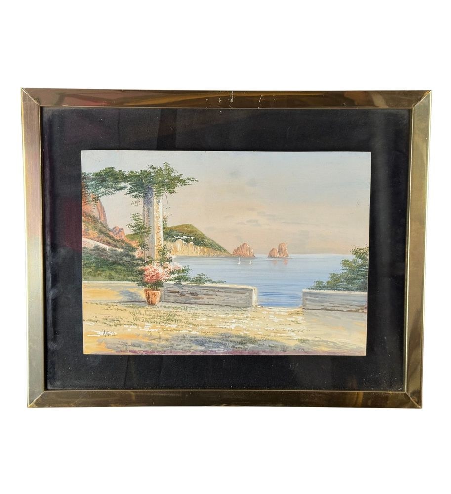 Watercolor on paper, 20th century, Italian school, depicting a view of Capri. Dimensions including frame: 47 x 38 cm. Inner frame dimensions: 34 x 24 cm. Signed lower left by an unidentified artist. Work in good condition and of excellent artistic quality. Finely framed.