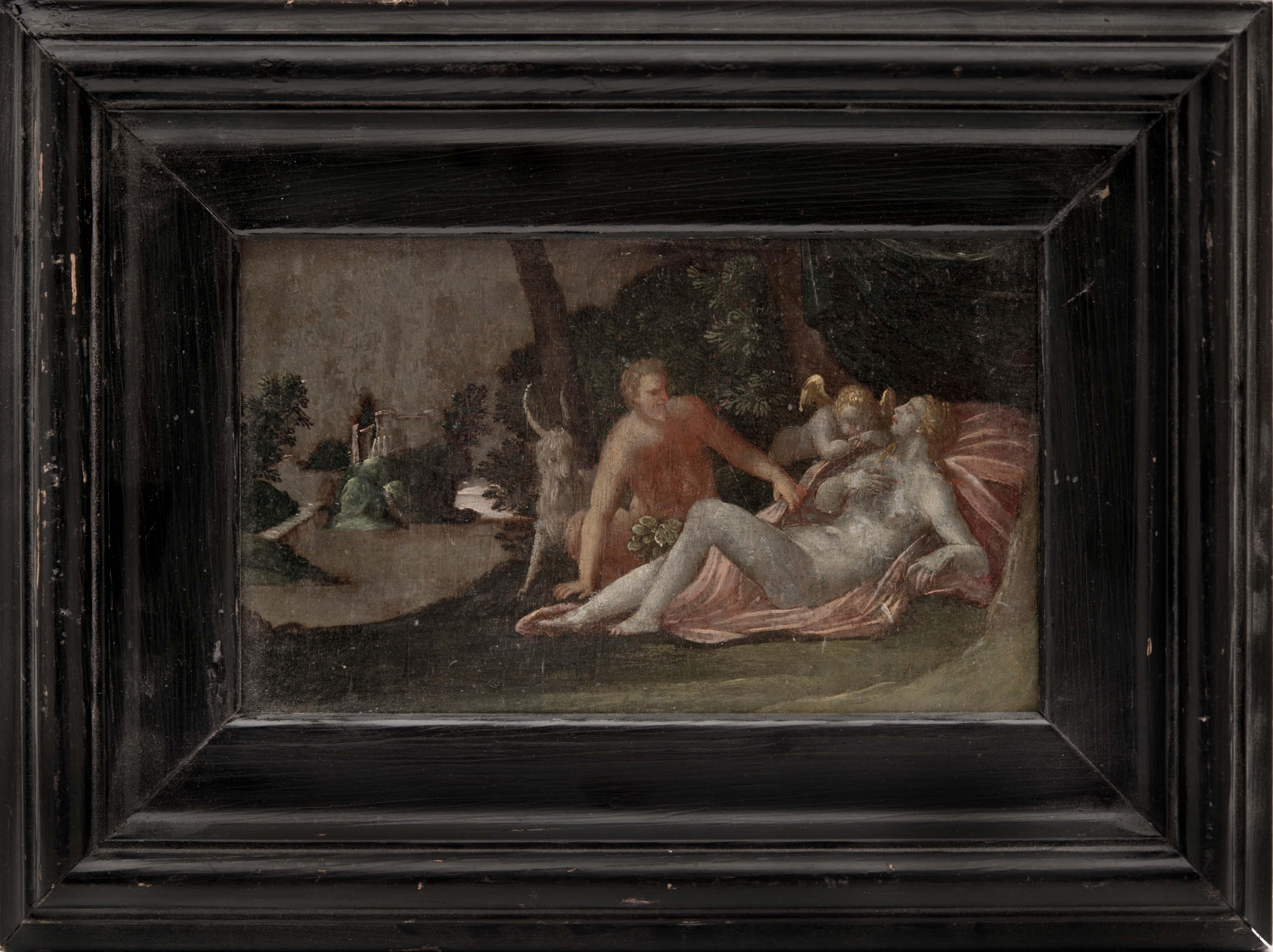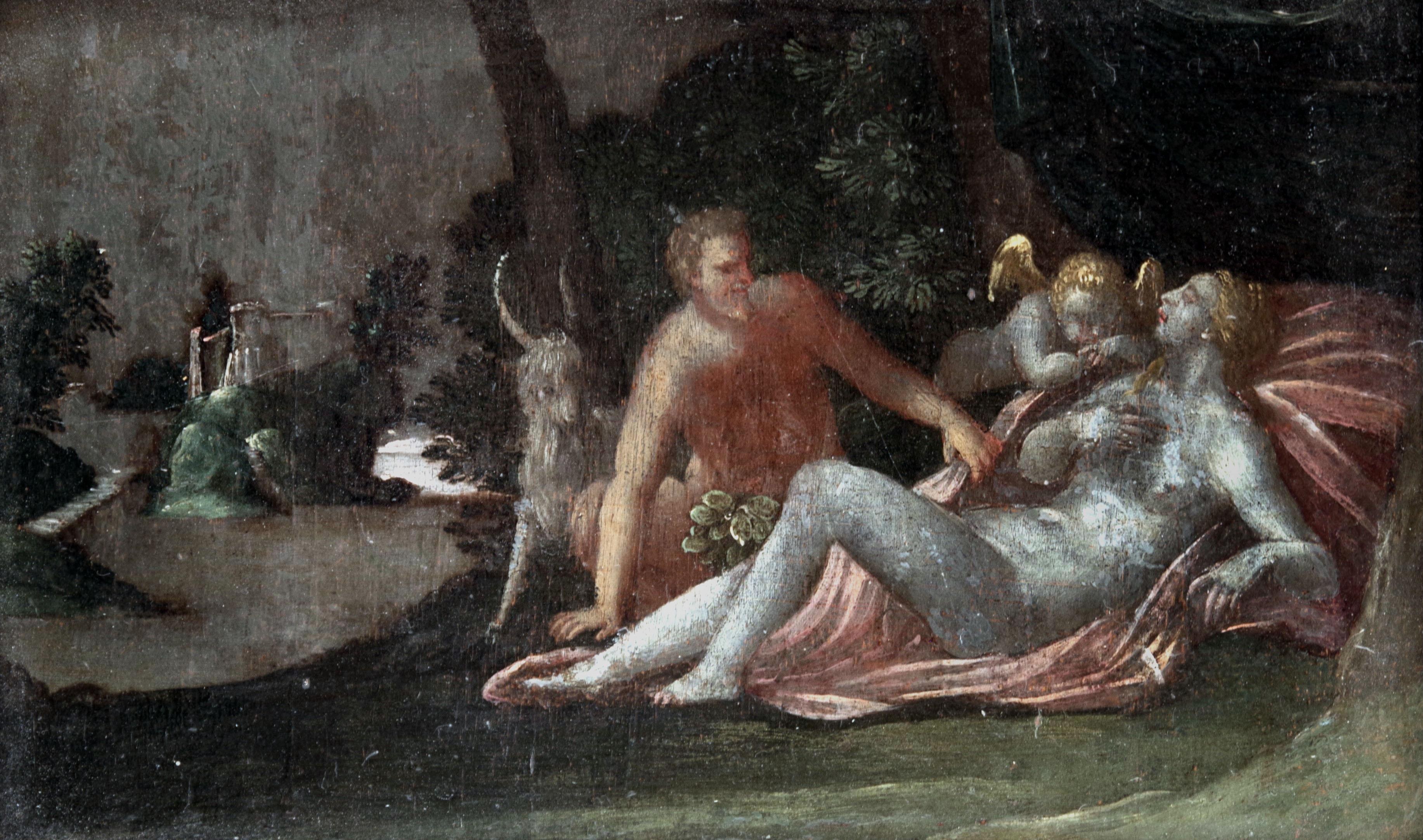Olej na dřevě, nedatováno nesignováno. Patrně Itálie, 17. století, rozměry 23 x 14 cm. Rámováno. Stav 2, Oil on wood, not signed, not dated. Probably Italy, 17th century, size 23 x 14 cm. Framed.Condition 2