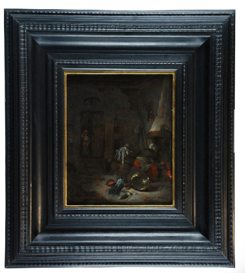 „ (…) Dzieło posiada czerwoną, lakową pieczęć Galerii van Diemen & Co., założonej w Berlinie w 1918 roku, która specjalizowała się w sztuce holenderskiej. Zgodnie z analizą autorki opinii ww. dzieło zostało sprzedane po 1923 r. w Hadze, gdzie została otwarta filia ww. galerii. Pani Aleksandra Janiszewska, zauważa, że w 1924 r., w tej samej galerii został sprzedany obraz W. Kalfa pt.: „Wiejskie wnętrze z kobietą przy kominku” o prawie identycznym układzie pod względem zakomponowania sceny z opiniowanym dziełem, bowiem różnica przedstawień polega na stroju postaci kobiety ukazanej w otwartych drzwiach. (…) Zgodnie z analizą Pani Aleksandry Janiszewskiej „trudno stwierdzić, czy mamy do czynienia z tym samym obrazem, przemalowanym w partii jednej z postaci, czy też z niezwykle dokładnym powtórzeniem kompozycji namalowanej przez Willema Kalfa, co jest wysoce prawdopodobne”.