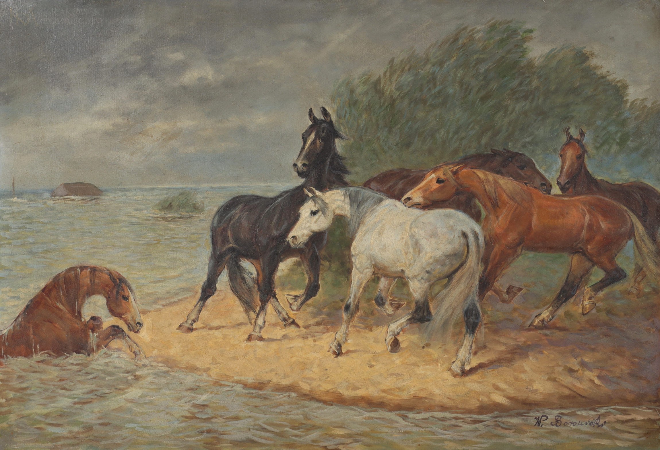 Władysław BOROWICKI (1909-1997), "Konie przy brzegu"