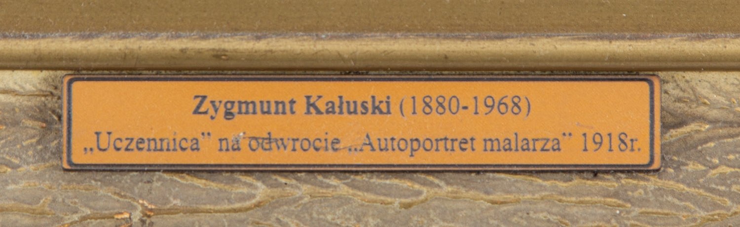 na odwrociu papierowa nalepka Towarzystwa Przyjaciół Sztuk Pięknych z opisem pracy oraz nalepka antykwaryczna