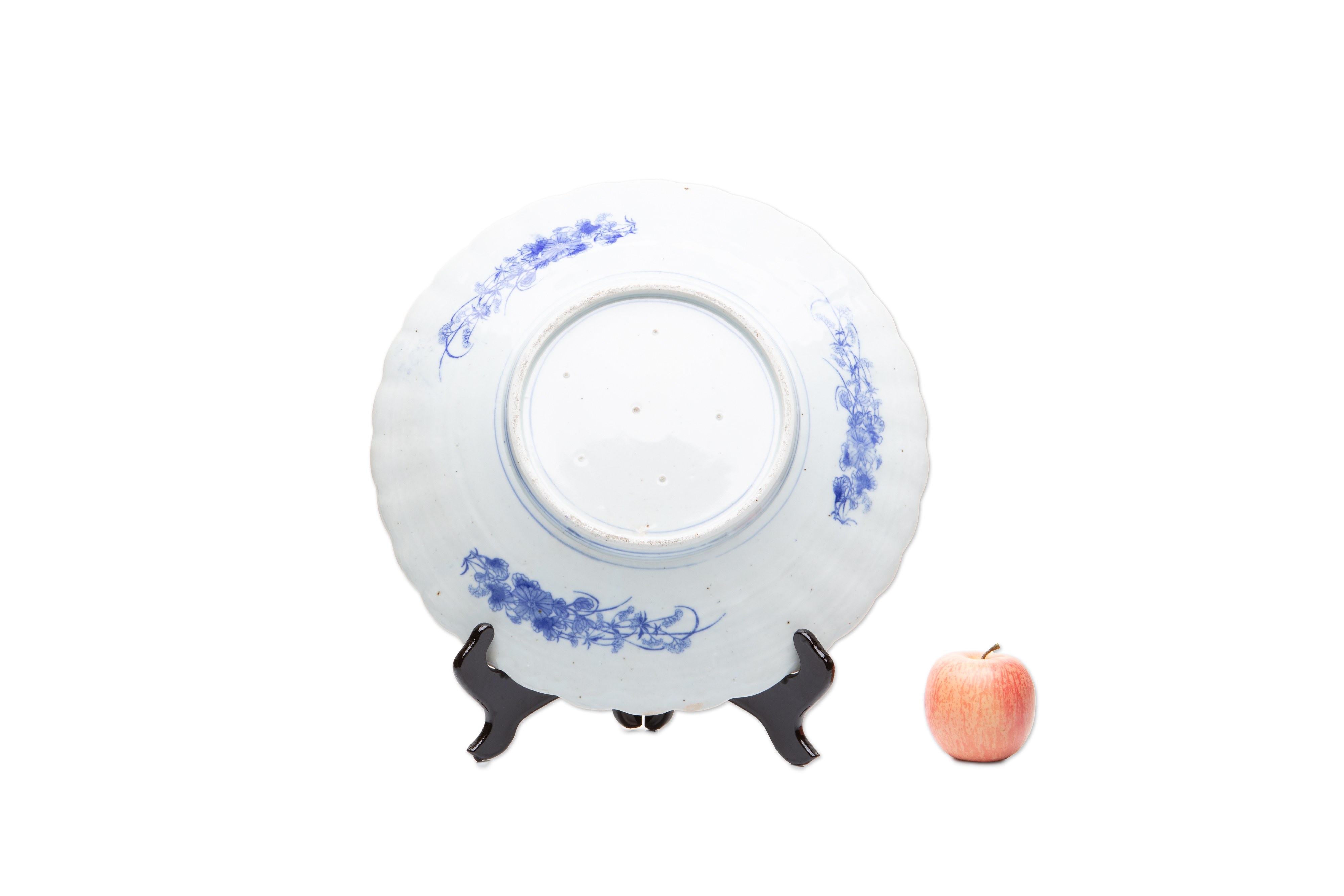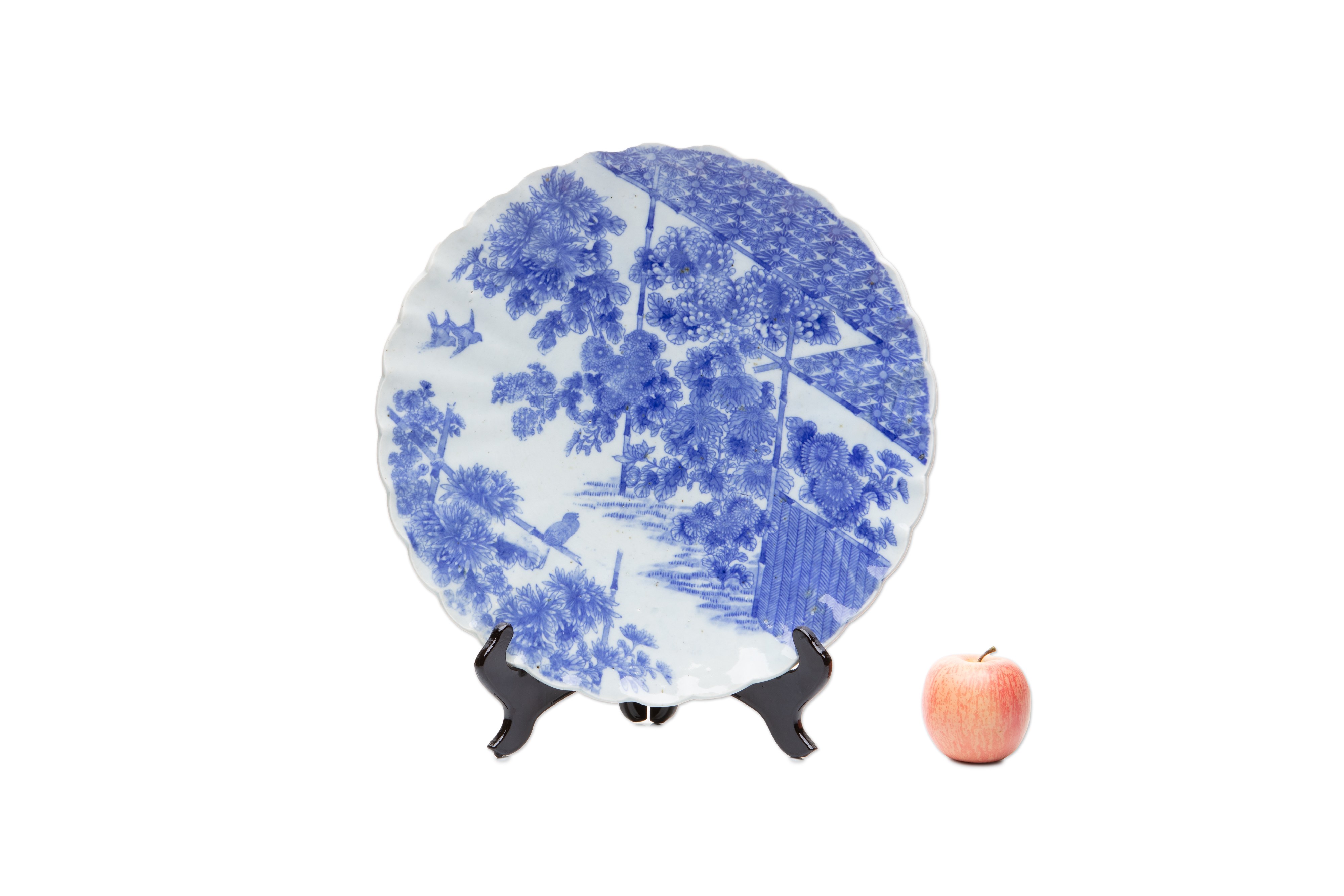Decorative porcelain plate with a wavy edge, decorated with delicate underglaze cobalt painting in shades of blue.more photos