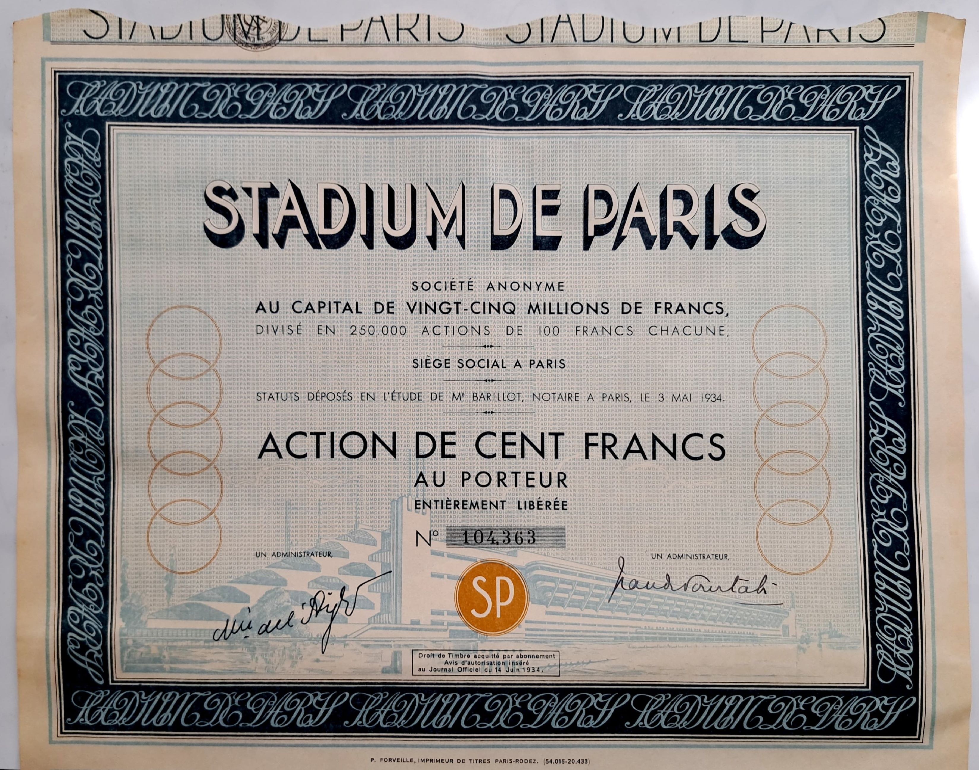 236. 1923. [STADION W PARYŻU] STADIUM DE PARIS. 100 FRANKÓW.