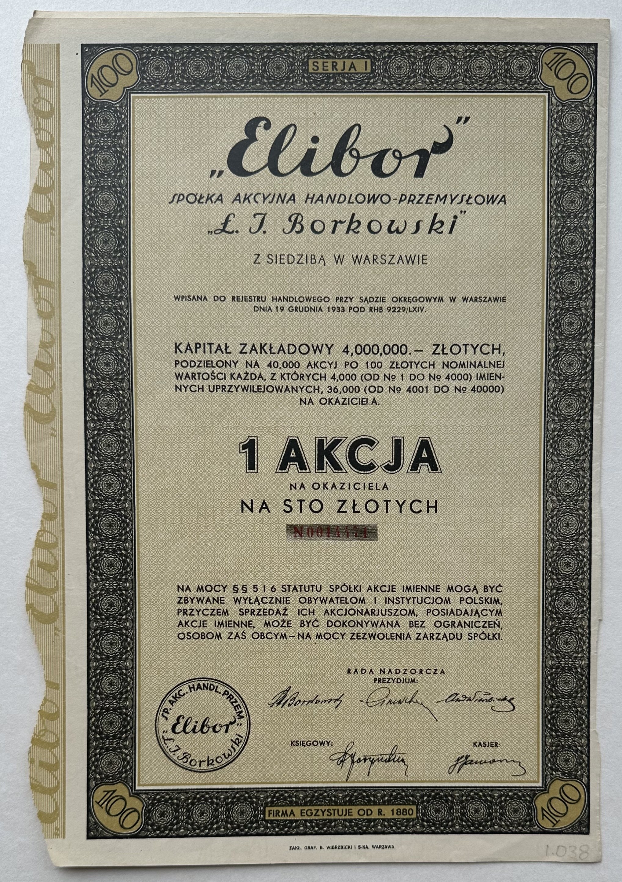 ELIBOR S.A. Handlowo-Przemysłowa Ł. J. BORKOWSKI, 100 złotych