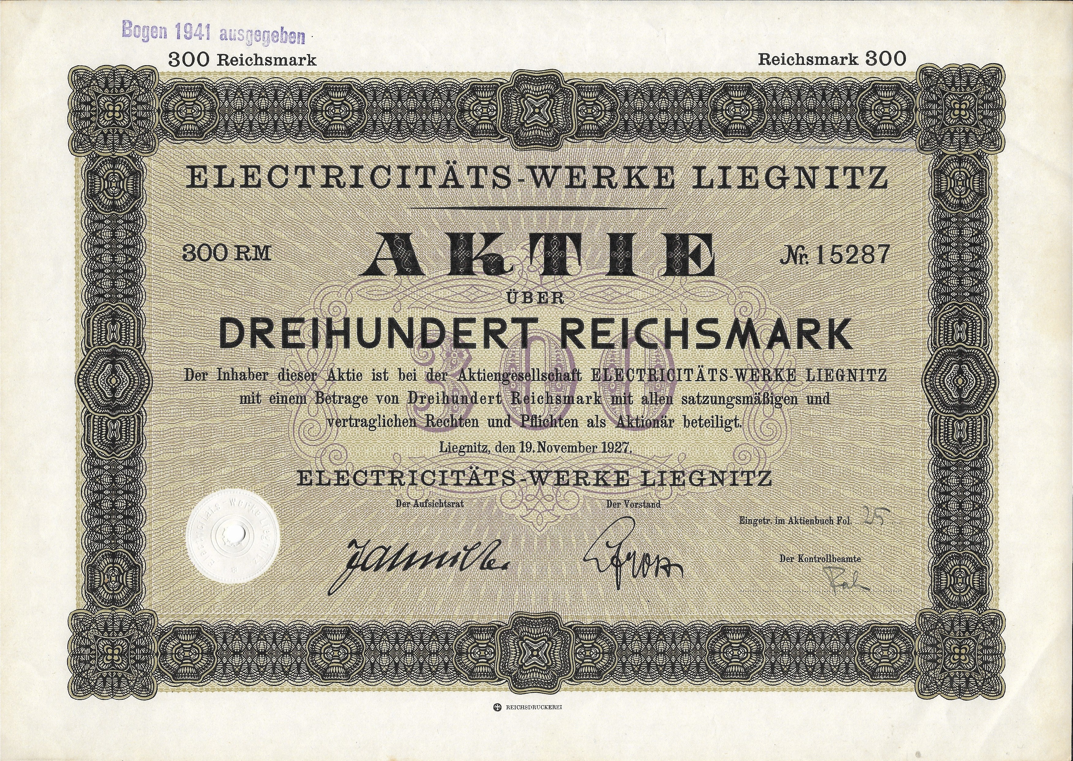 Legnica, Akcja Elektrowni, 300 Reichsmak, 1927