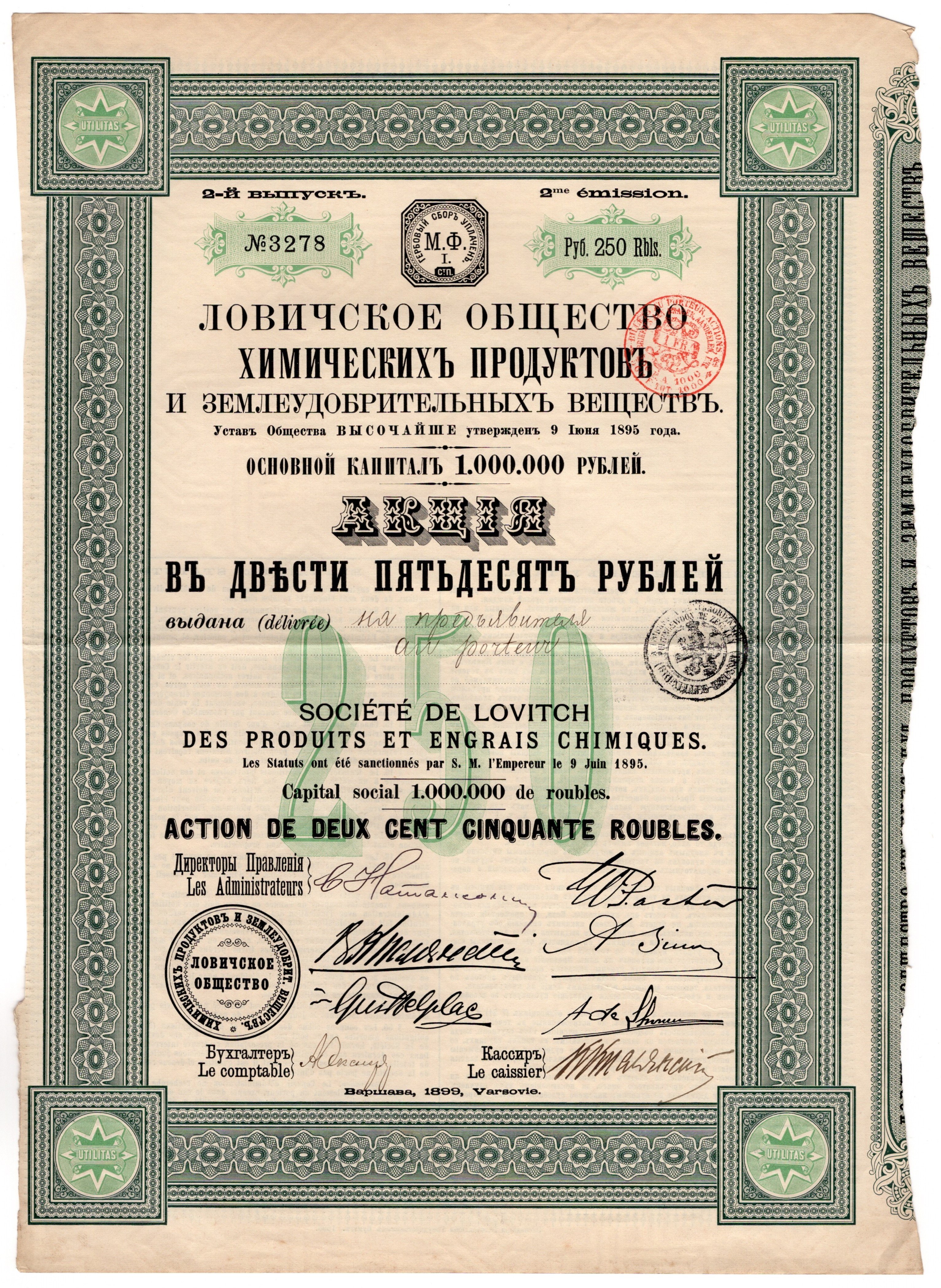 Pierwsza emisja akcji to 2400 sztuk po 250 rubli.