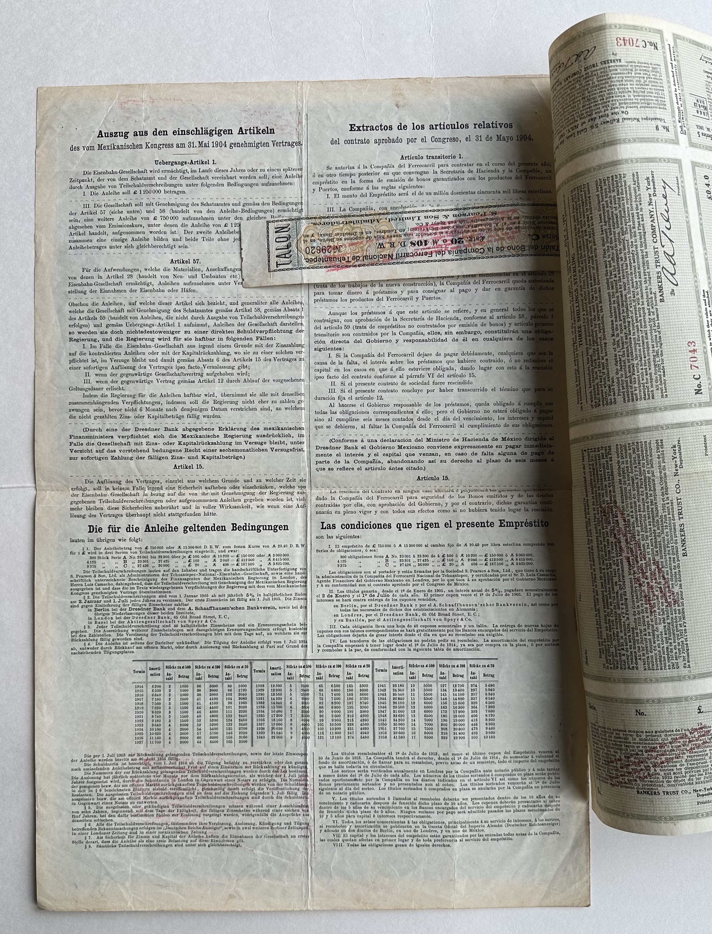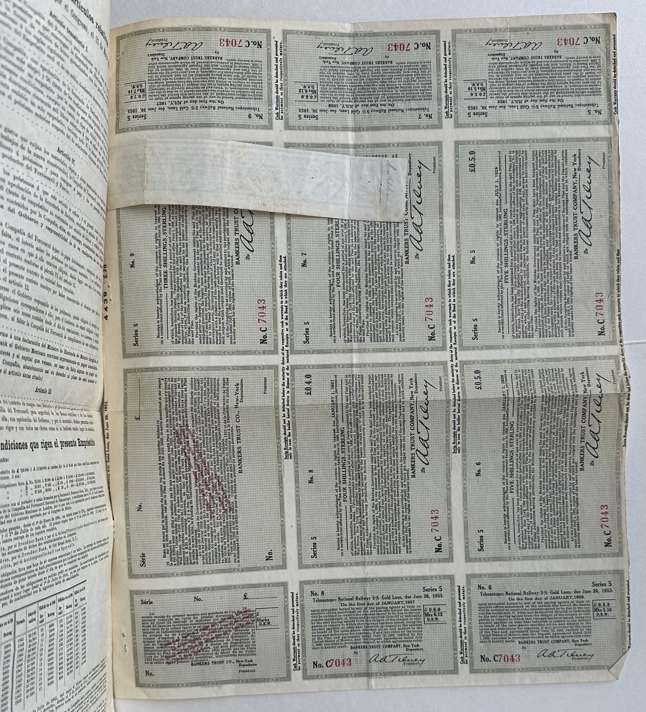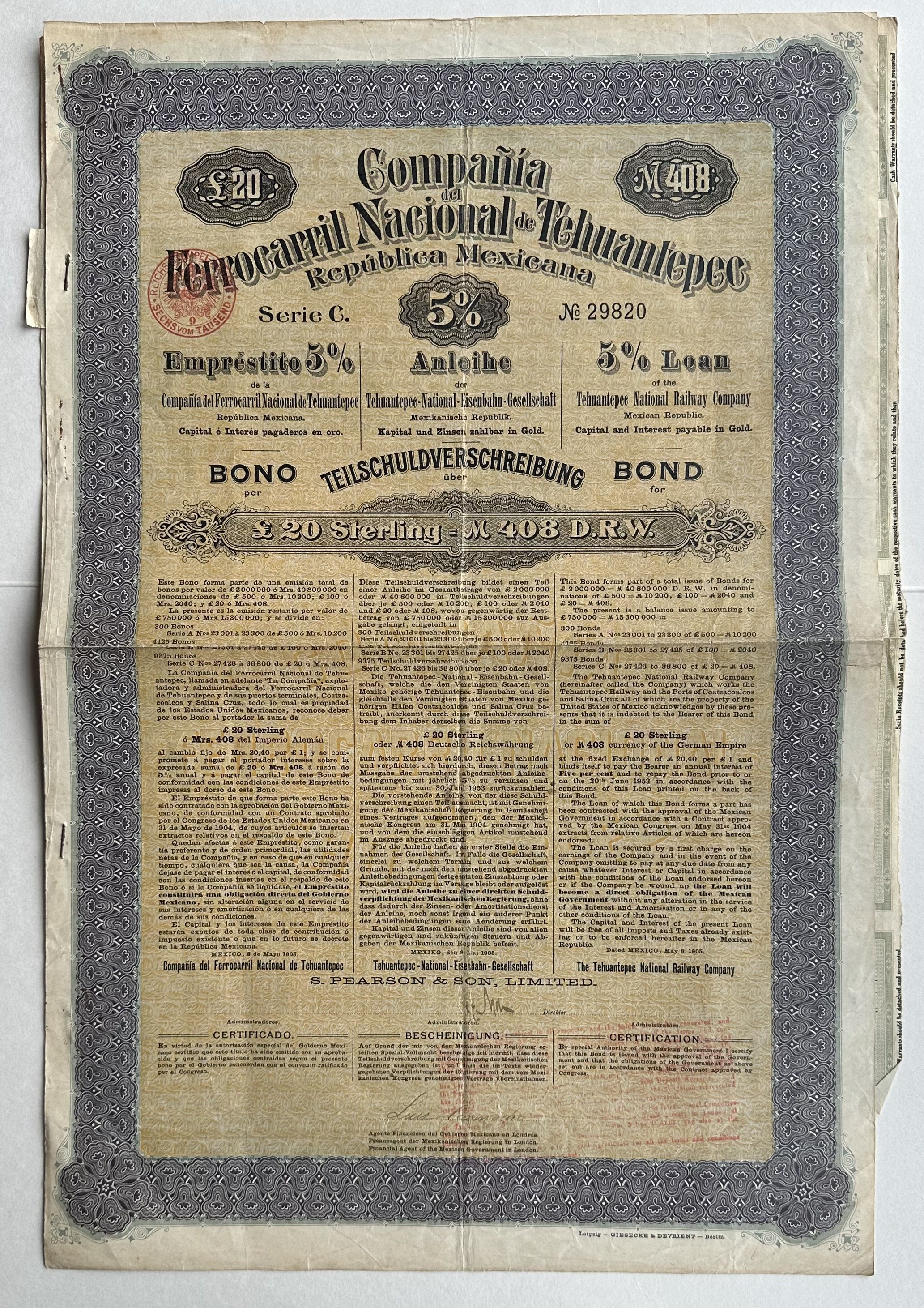 Meksyk, Compania del Ferrocarril Nacional de Tehuanlepee, 5% Bond of £20 C Series - Mexico 1904