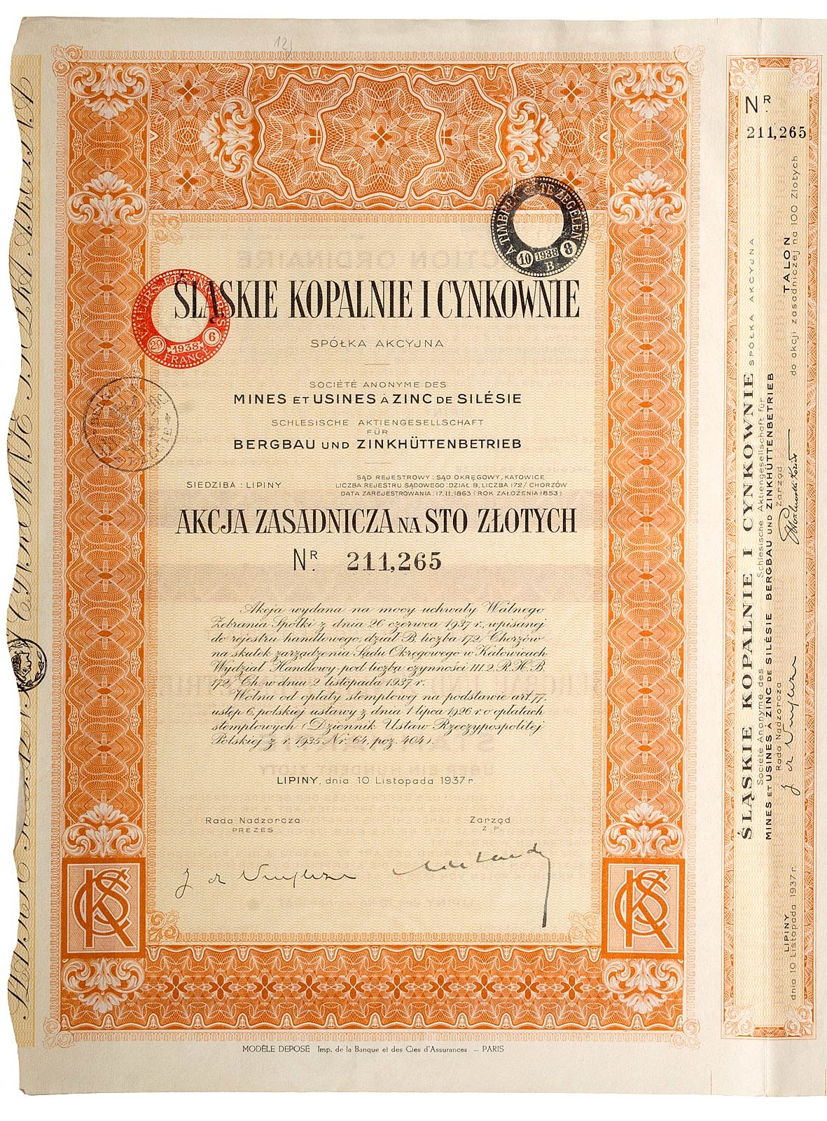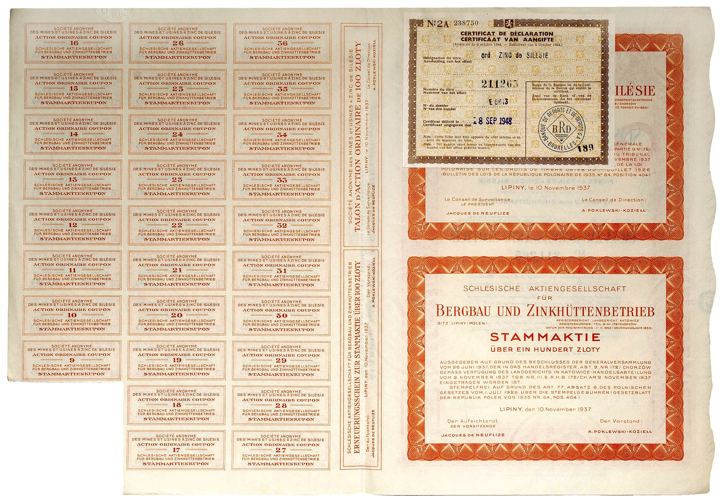 Certyfikat rejestracyjny z Brukseli z 1948 roku.