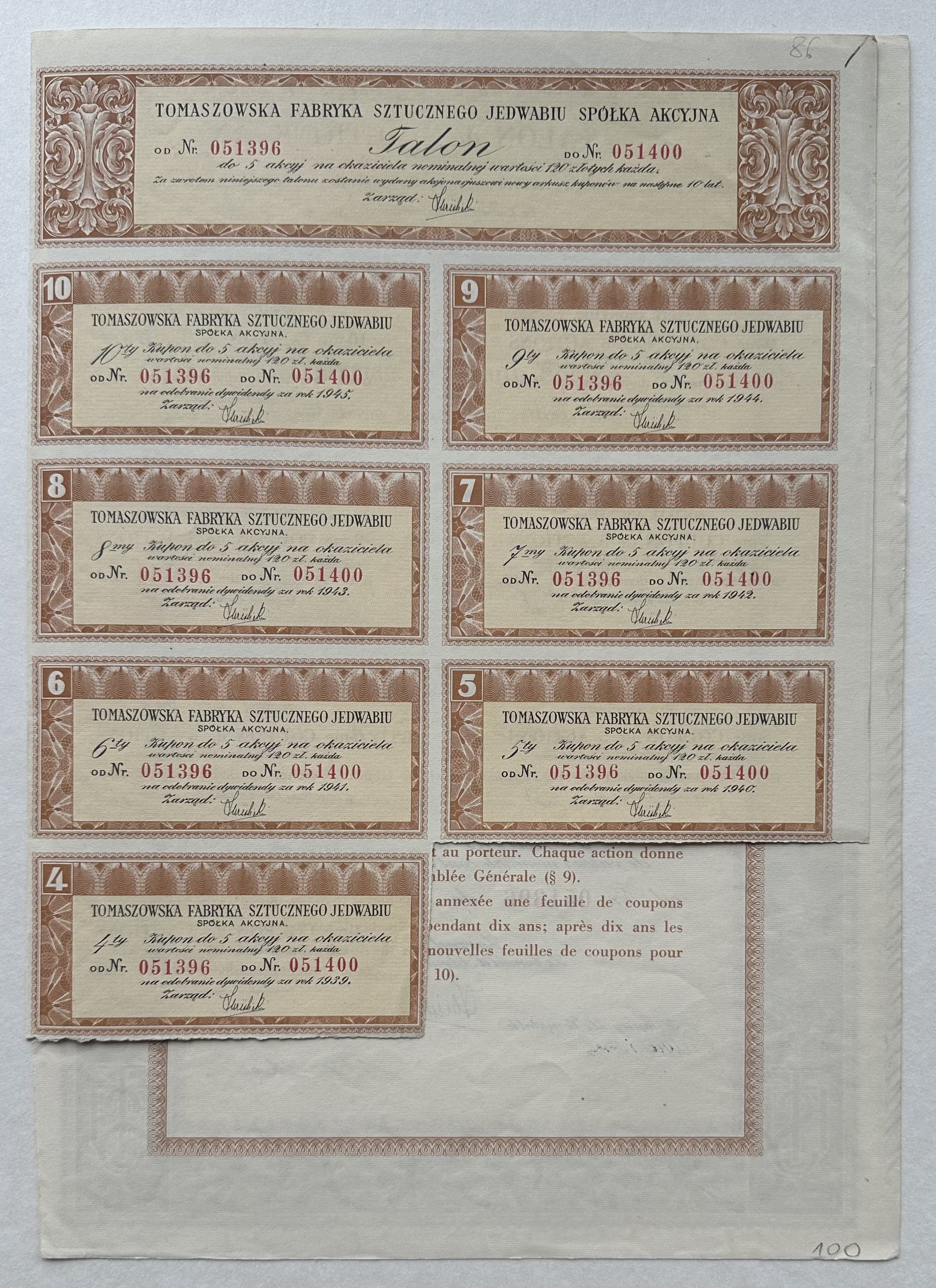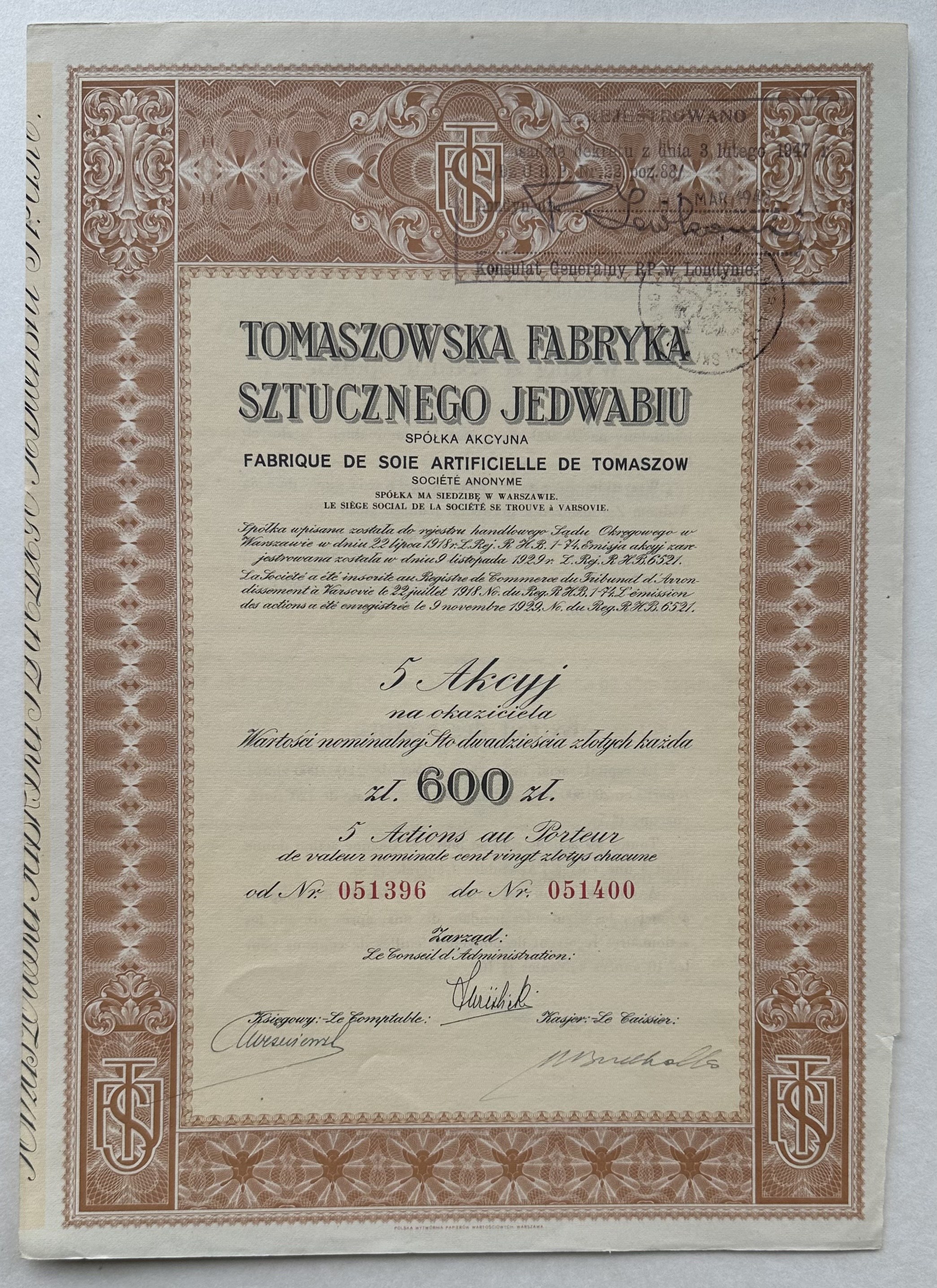 Tomaszowska Fabryka Sztucznego Jedwabiu, 5 x 600 złotych