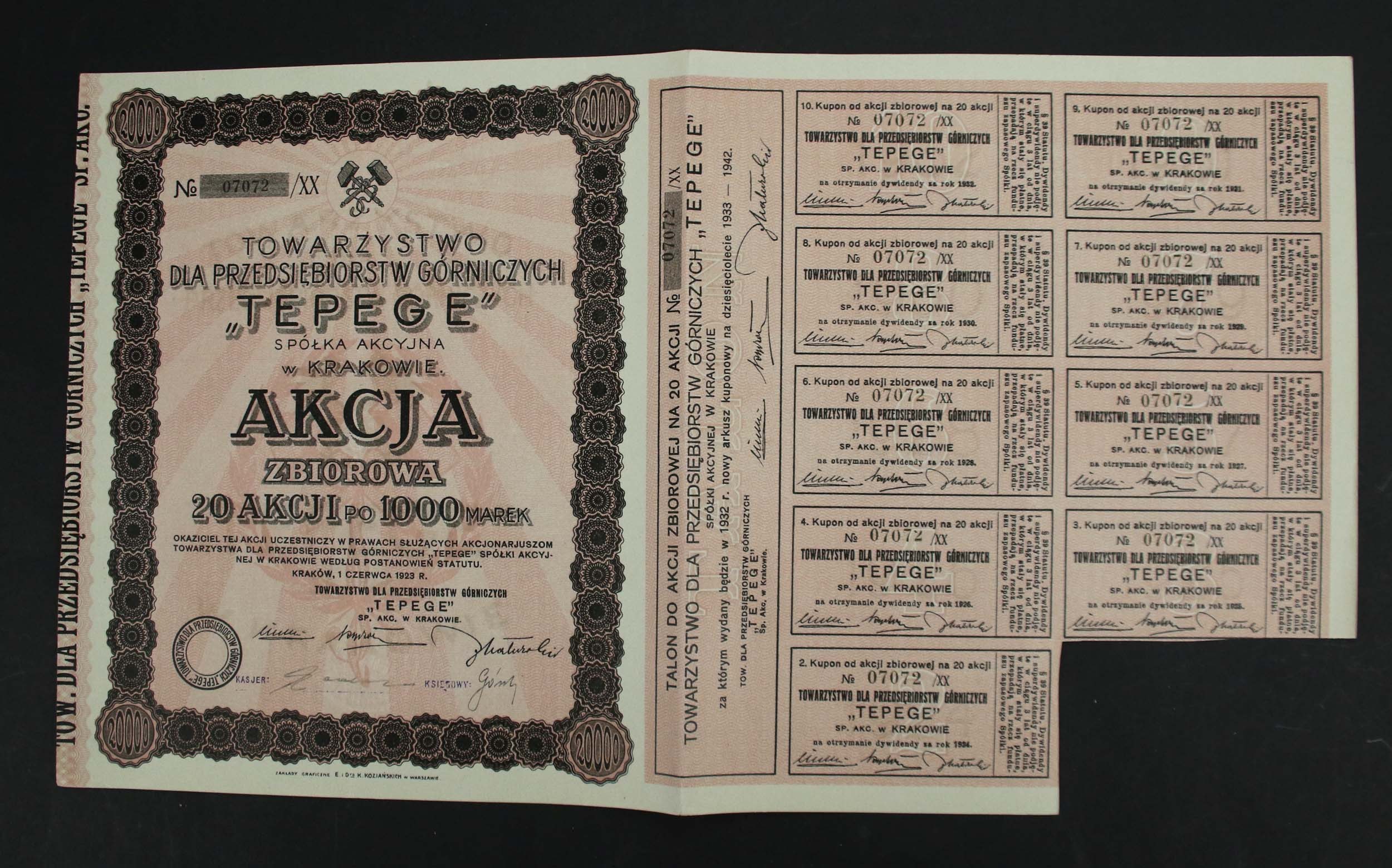 Towarzystwo dla Przedsiębiorstw Górniczych TEPEGE S.A. w Krakowie, 20 x 1.000 mkp 1923