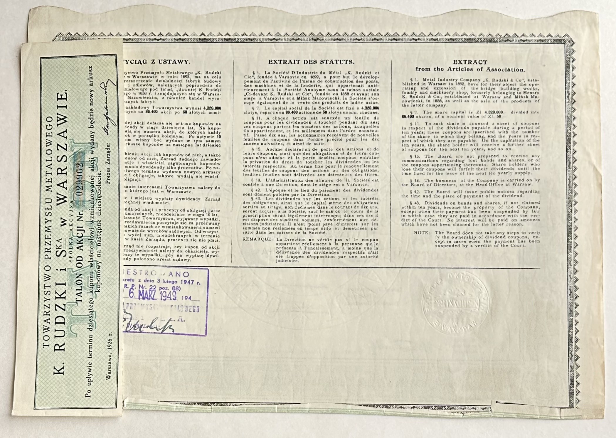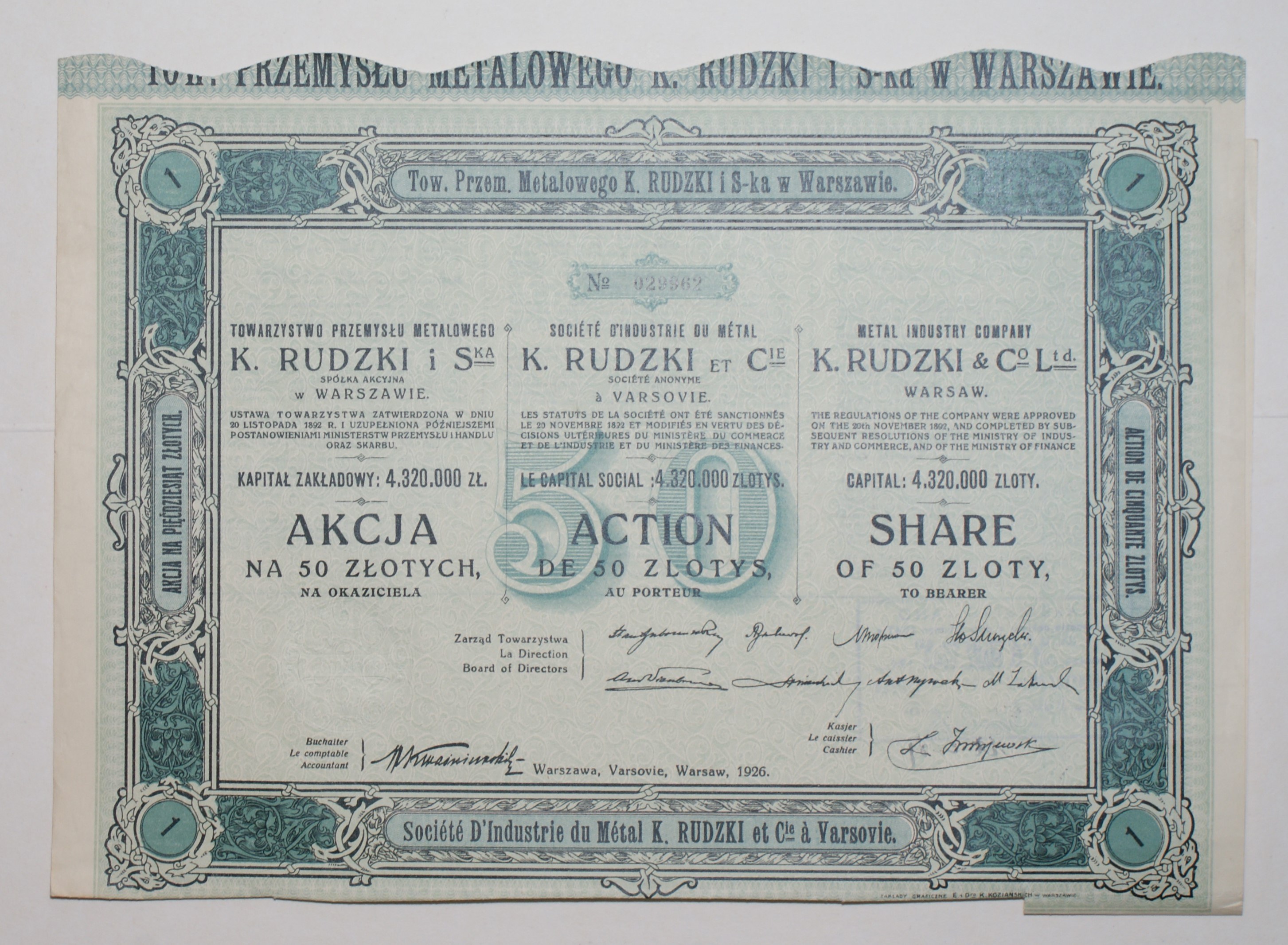 Towarzystwo Przemysłu Meatolwego K. RUDZKI, 50 złotych 1926