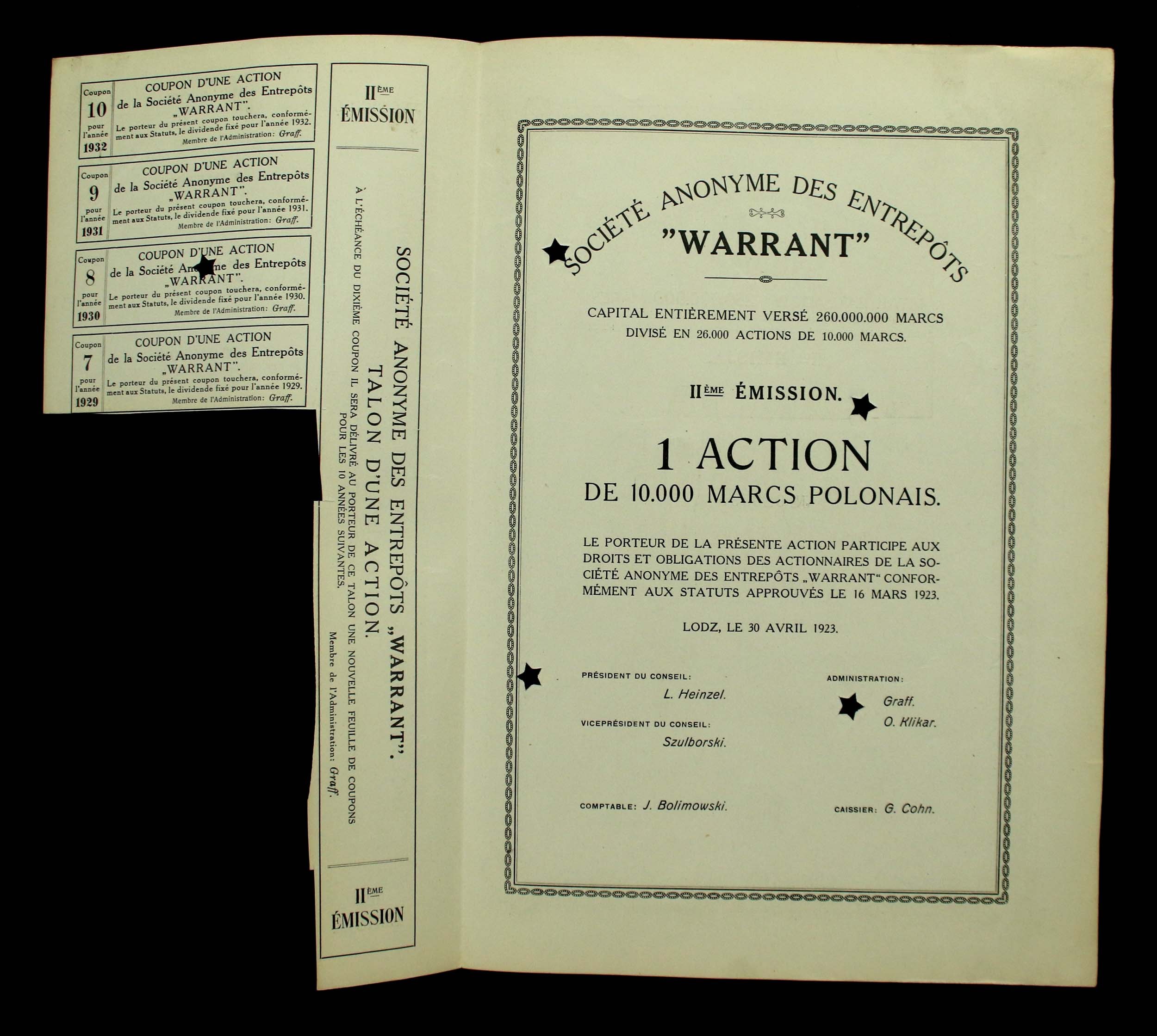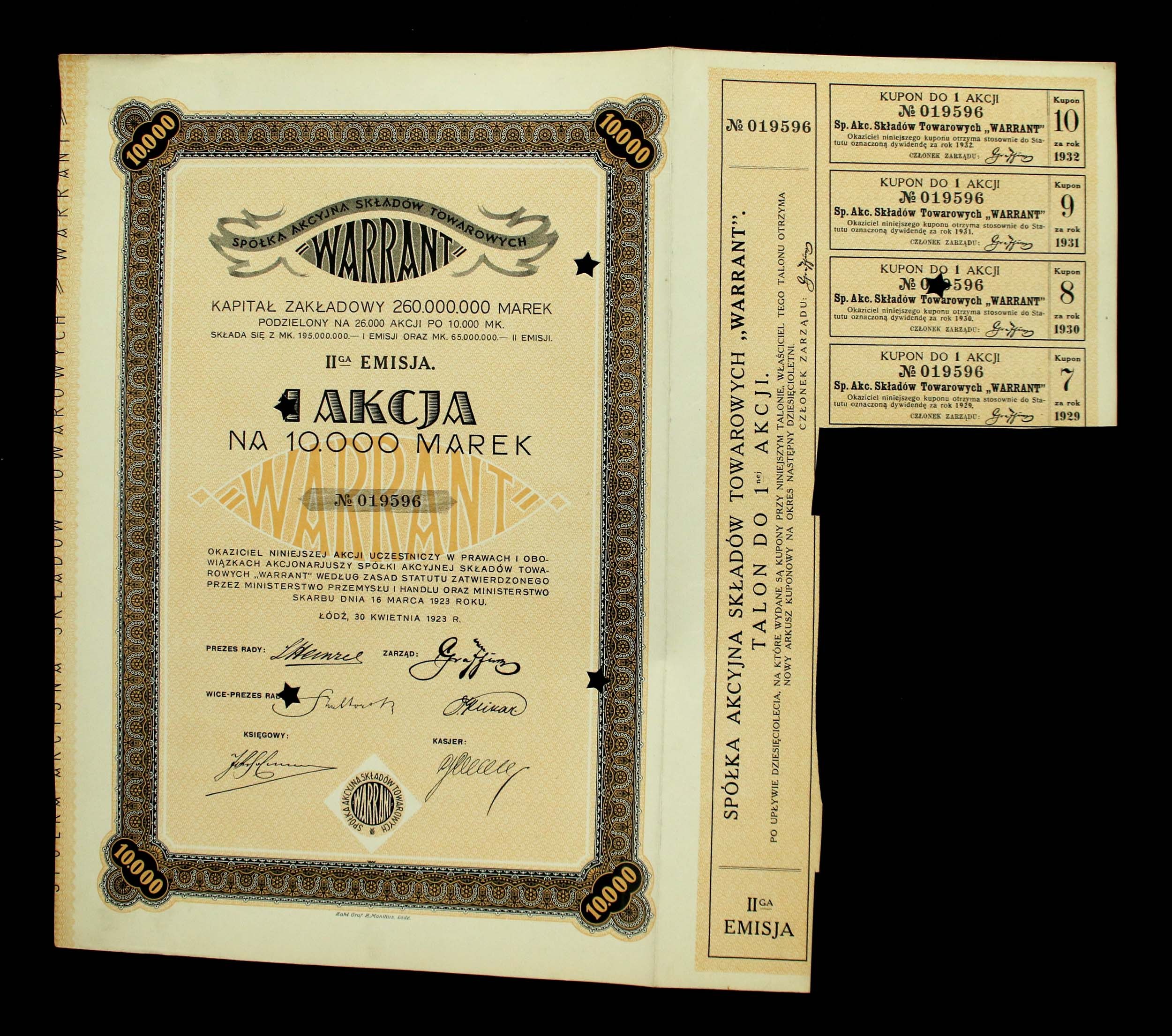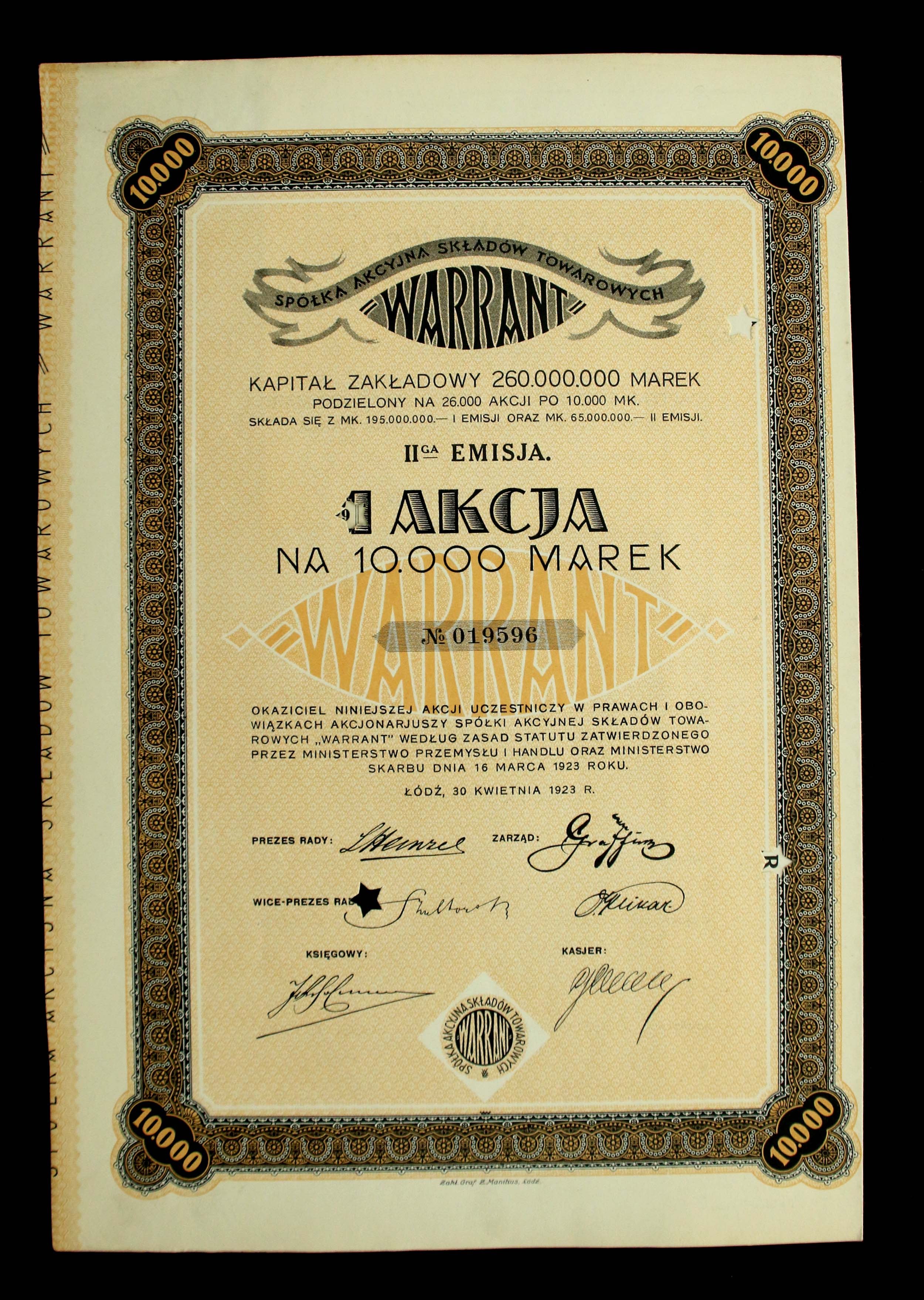 WARRANT Sp. Akc. Składów Towarowych, Em.2, 10.000 mkp 1923