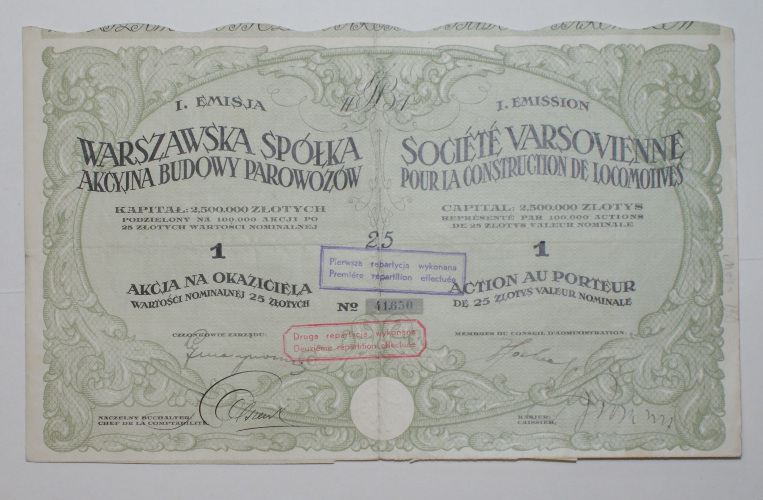 Warszawska Spółka Akcyjna Budowy Parowozów - Em.I, 25 złotych