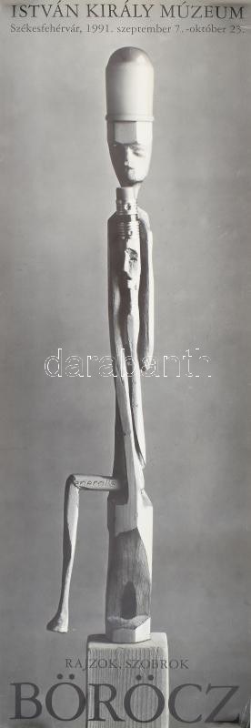 1991 Böröcz: Rajzok, szobrok kiállítási plakát, István Király Múzeum, 1991. szeptember 7 - október 23, kis szakadással, feltekerve, 82x30 cm
