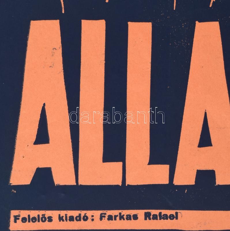Allah kertje. Moziplakát (filmplakát, rácsplakát), 1940 körül. Marlene Dietrich és Charles Boyer szereplésével. Litográfia, papír. Jelzés nélkül. Schultz Nyomda, Bp. Kissé sérült. Hajtásnyomokkal. 93×30,5 cm/ Vintage rare Hungarian poster of the Hollywood movie The Garden of Allah, starring Marlene Dietrich, lithograph on paper, slightly damaged.